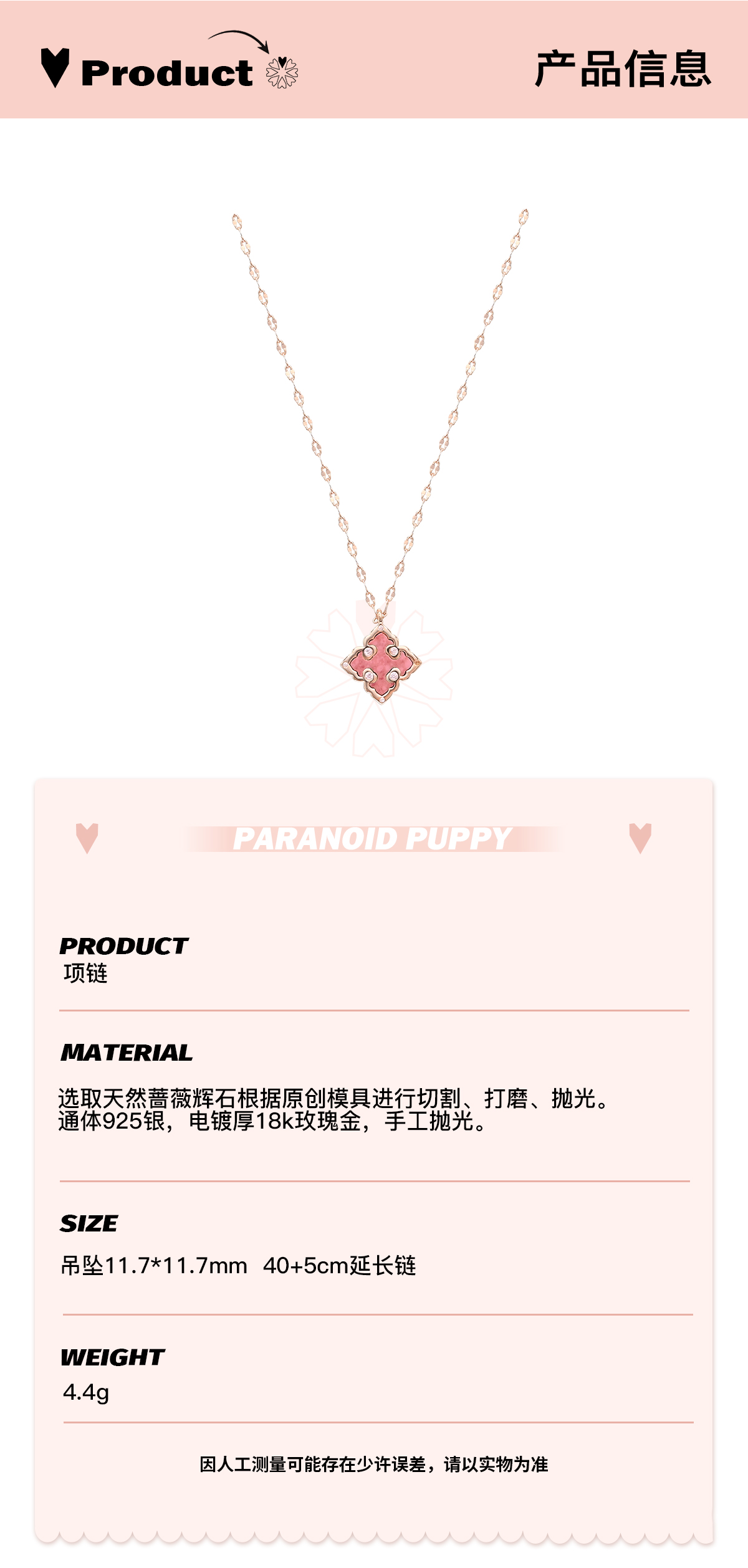 【宫里项链】芙蓉意 天然蔷薇辉石纯银项链