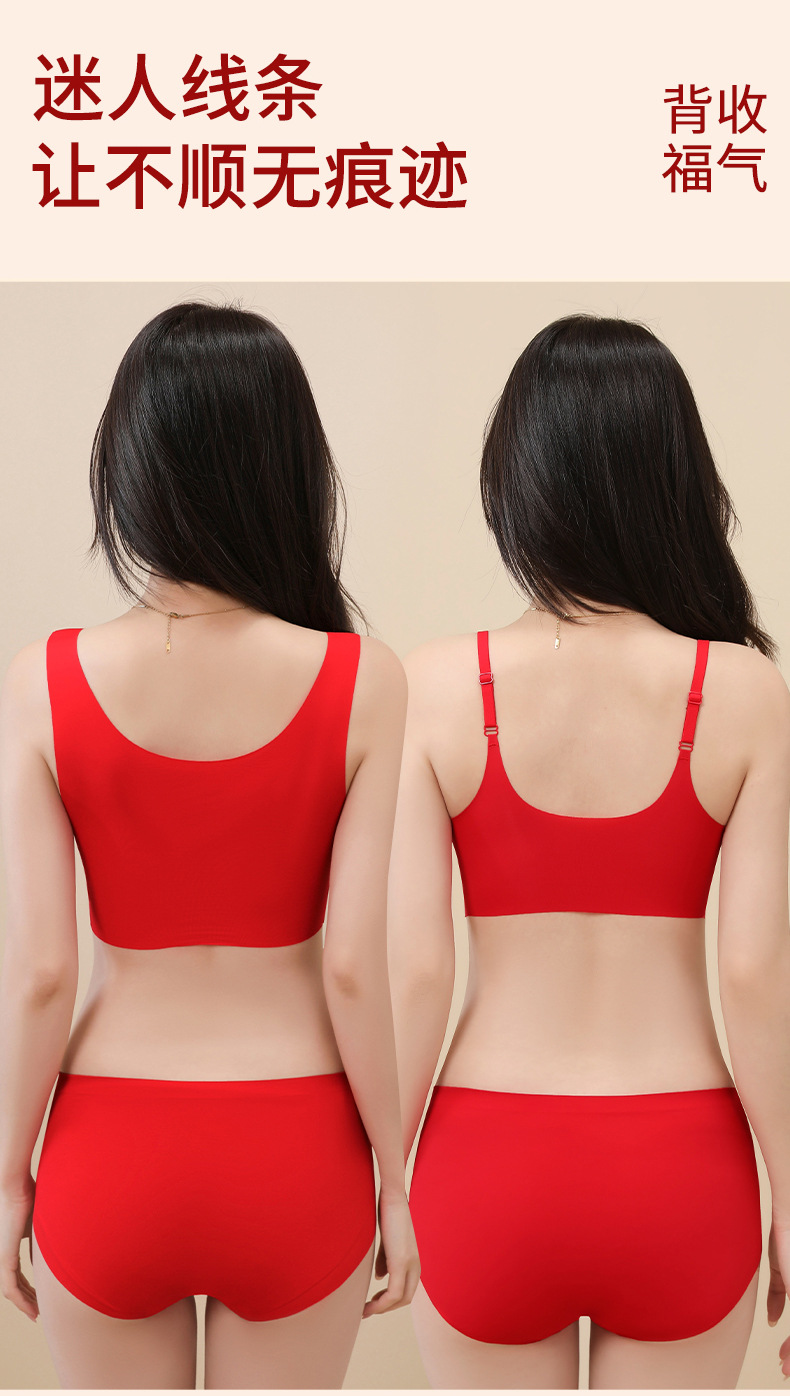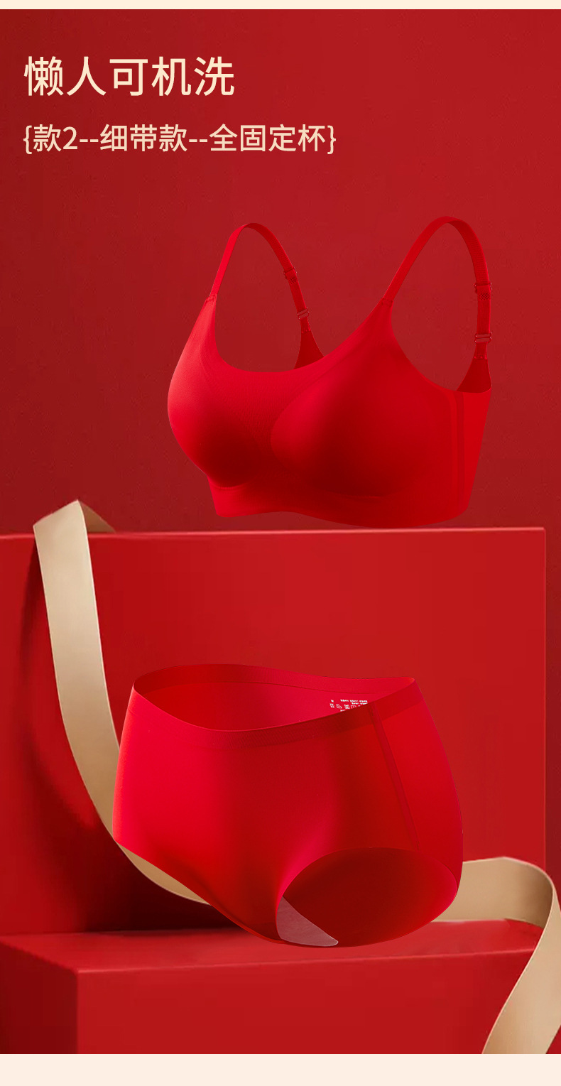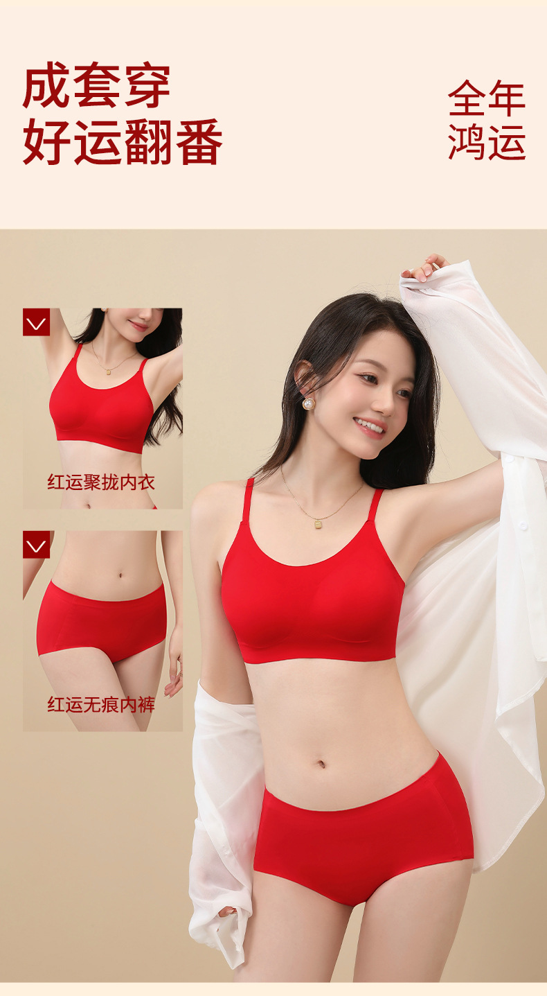 【过年穿红❗️纳福行运内衣套装】越穿越顺,好运相伴!马年本命年新年结婚大红女固定杯无痕文胸无钢圈聚拢舒适美背