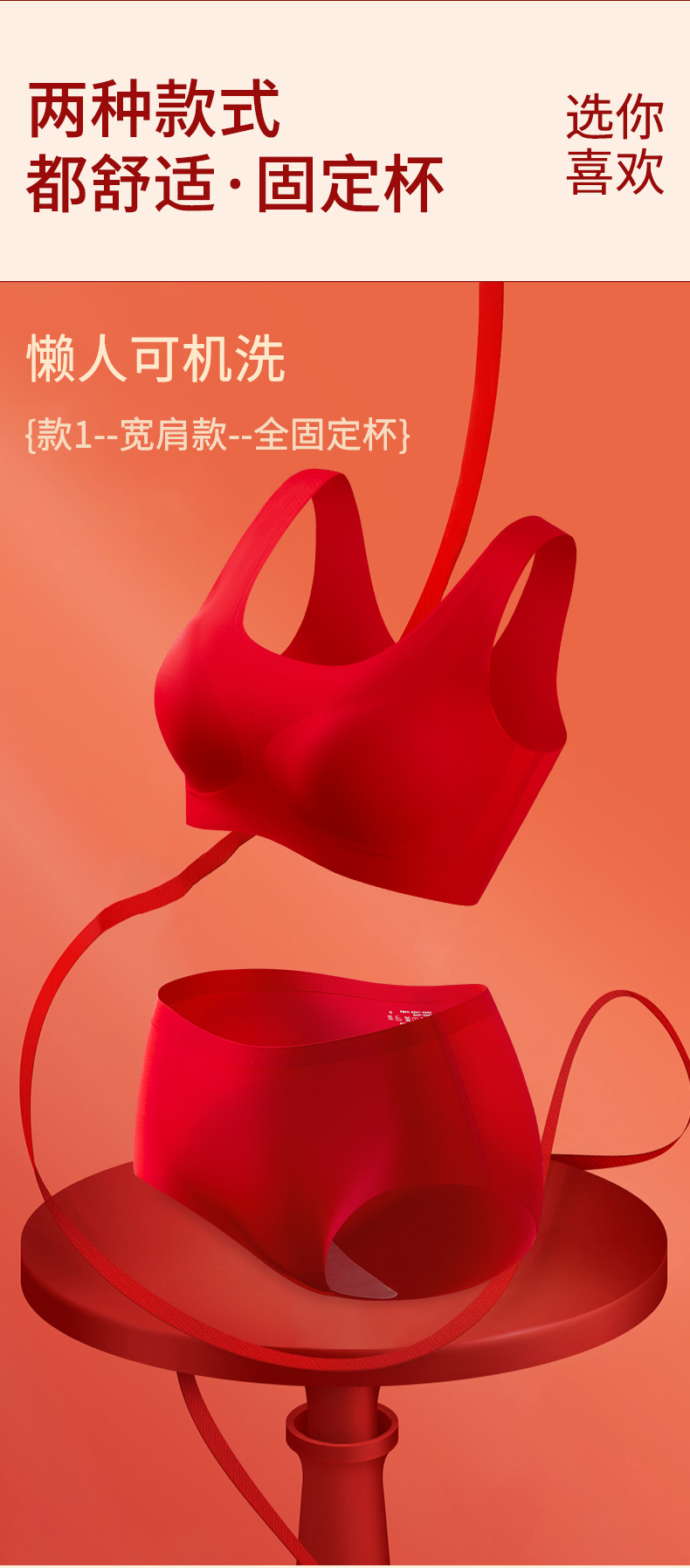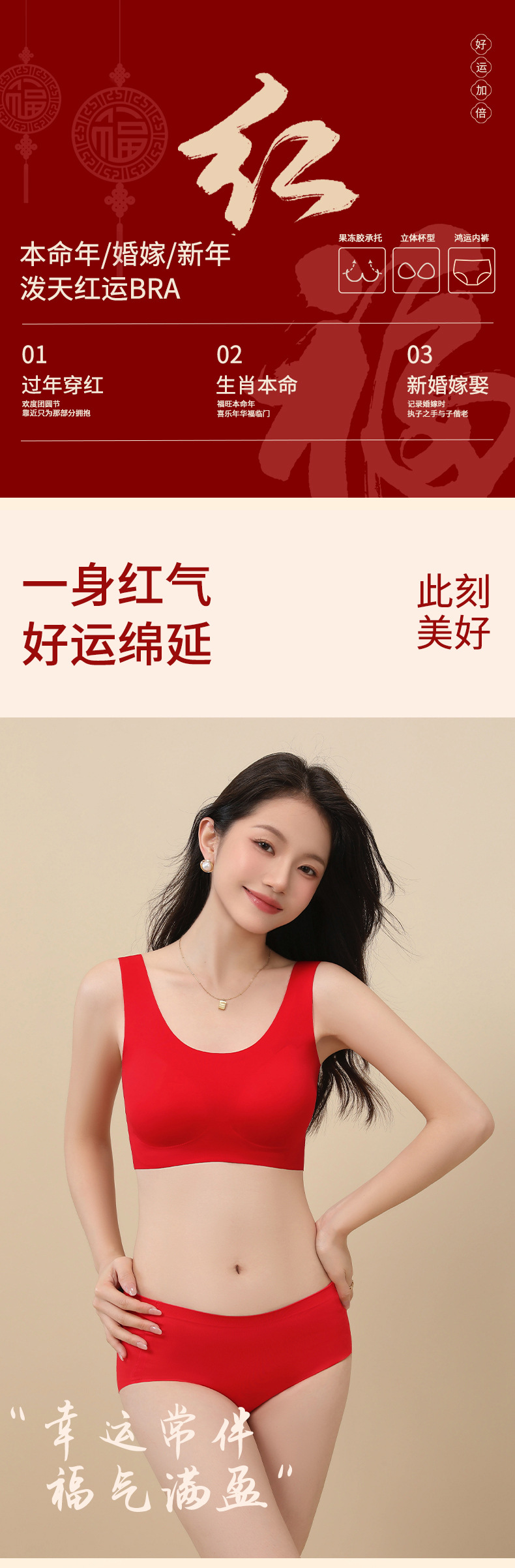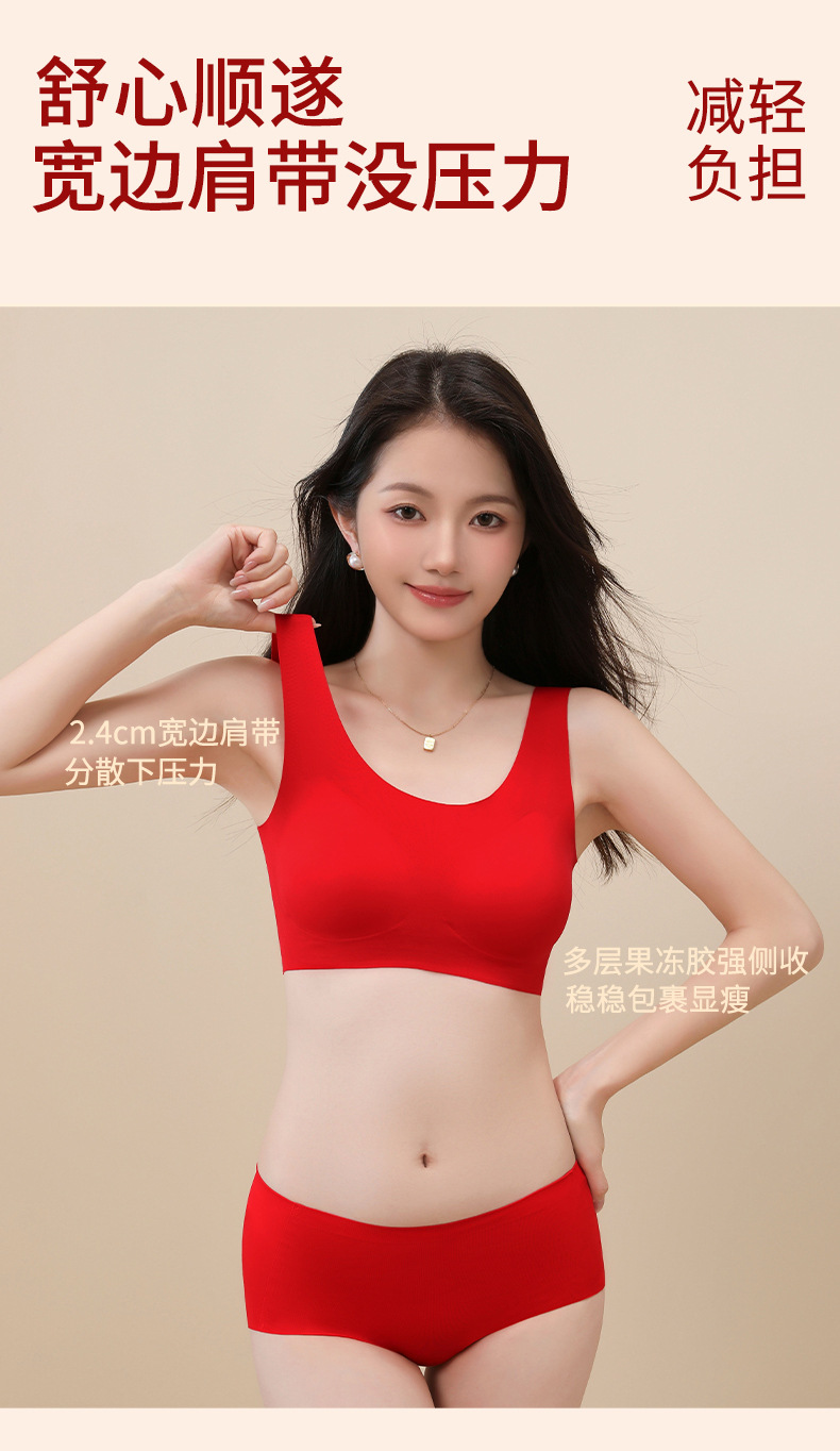 【过年穿红❗️纳福行运内衣套装】越穿越顺,好运相伴!马年本命年新年结婚大红女固定杯无痕文胸无钢圈聚拢舒适美背