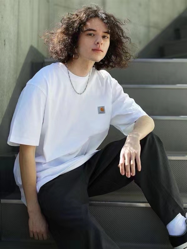 美式工装简约纯棉短袖T恤。纯色款,面料采用230g纯棉双纱纯棉材质,柔软亲肤,缝刻有品牌logo,低调自然,螺纹领口,jing典美式宽松板型。