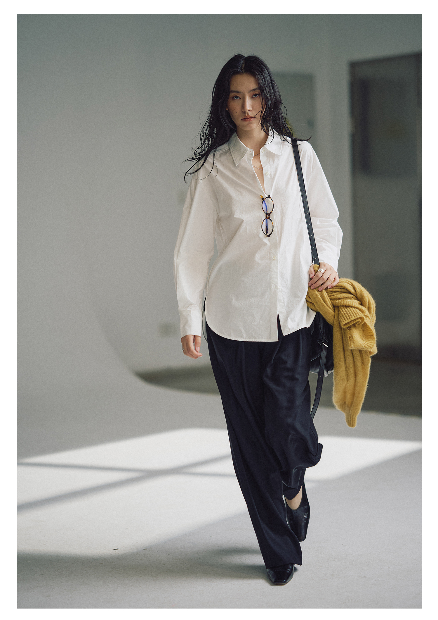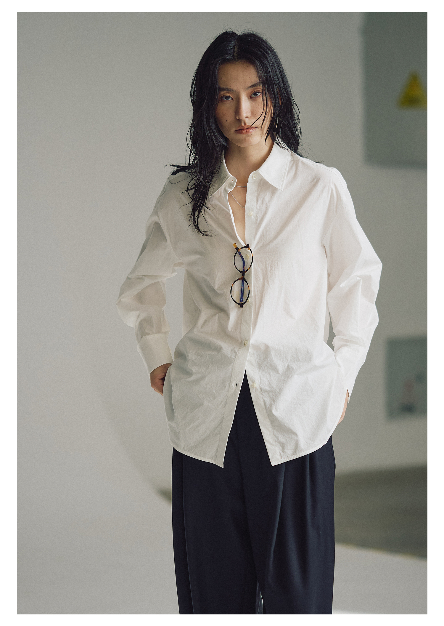 棉仓3631504006-近江晒 长袖衬衫女 25秋80S全棉肌理感衬衣晒布显白叠穿