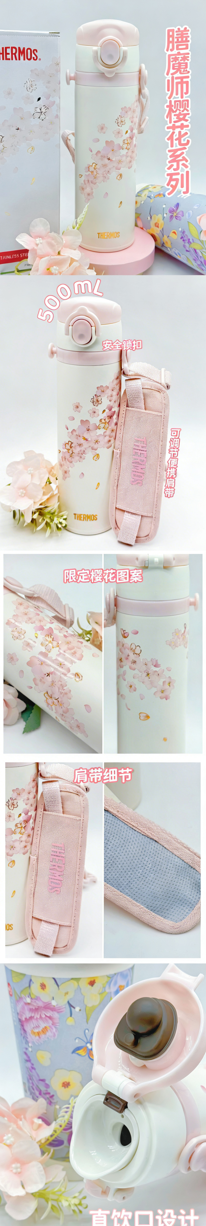 【春上新】9楼母婴生活馆 膳魔师 樱花系列高真空不锈钢保温杯500mL【带肩带】 零售价:320元 活动价:288元