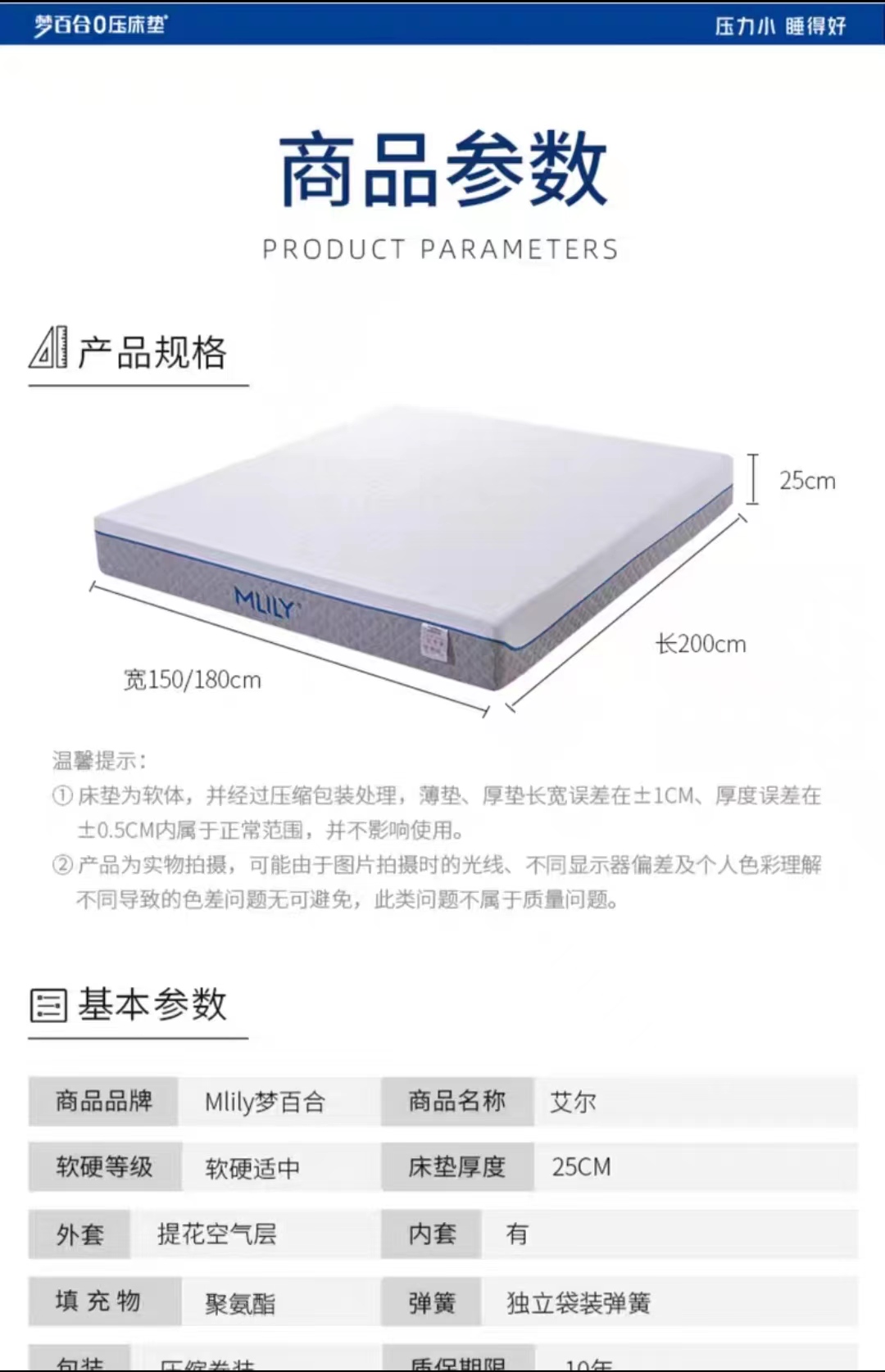 10楼 梦百合 艾尔0压厚垫25公分(1.5/1.8) 吊牌价8999/9999元 活动价7199/7999元