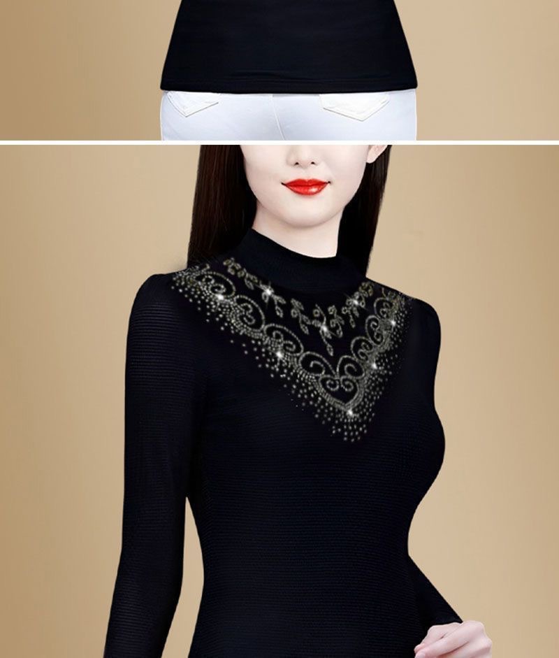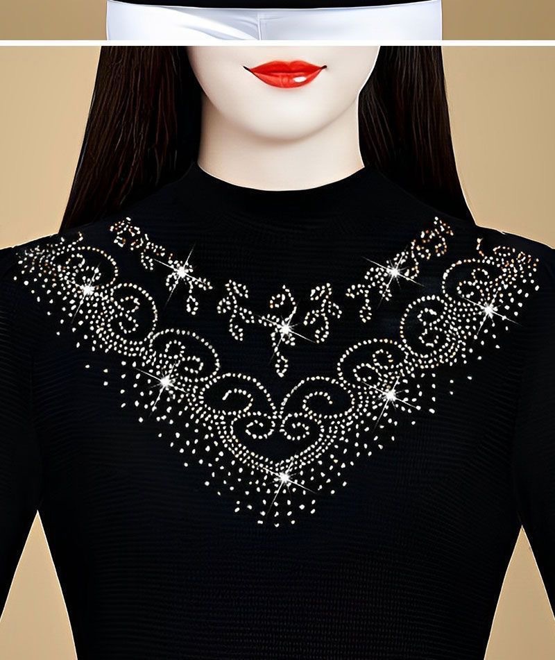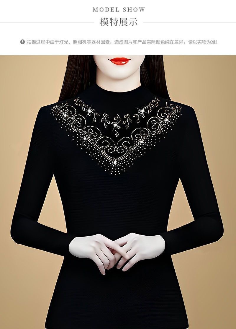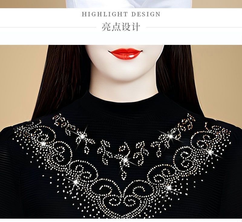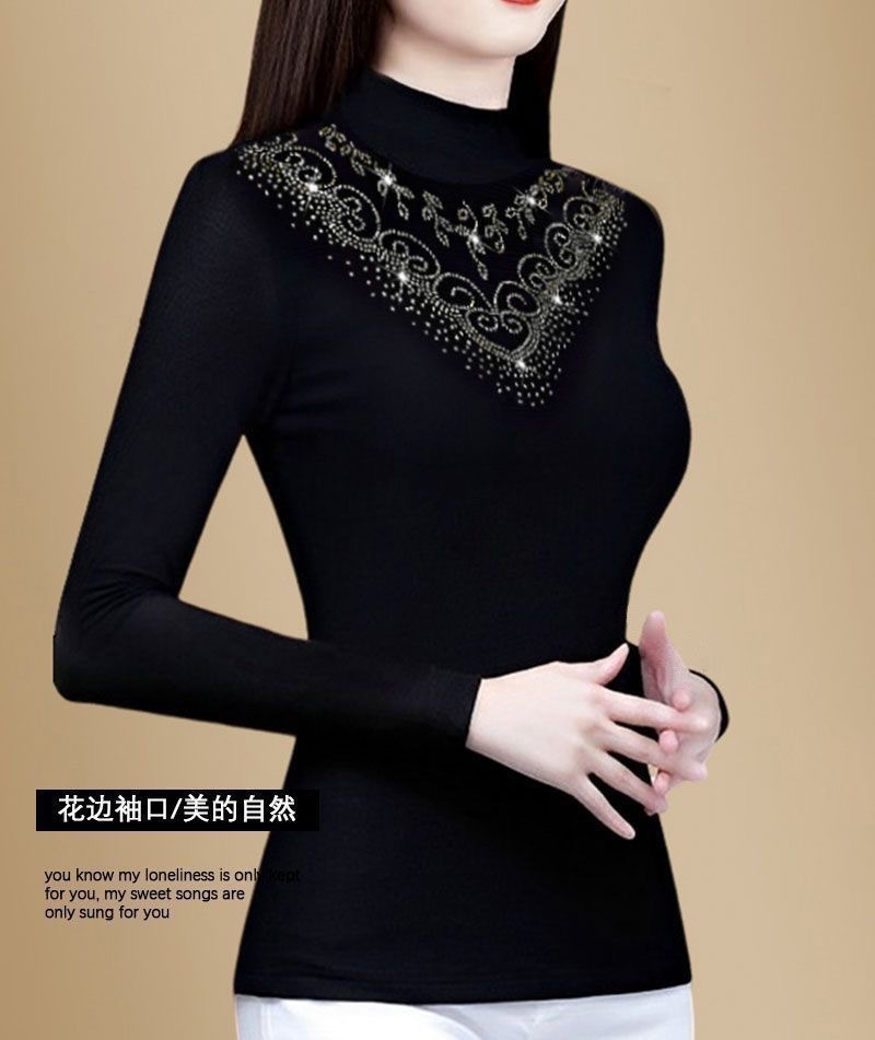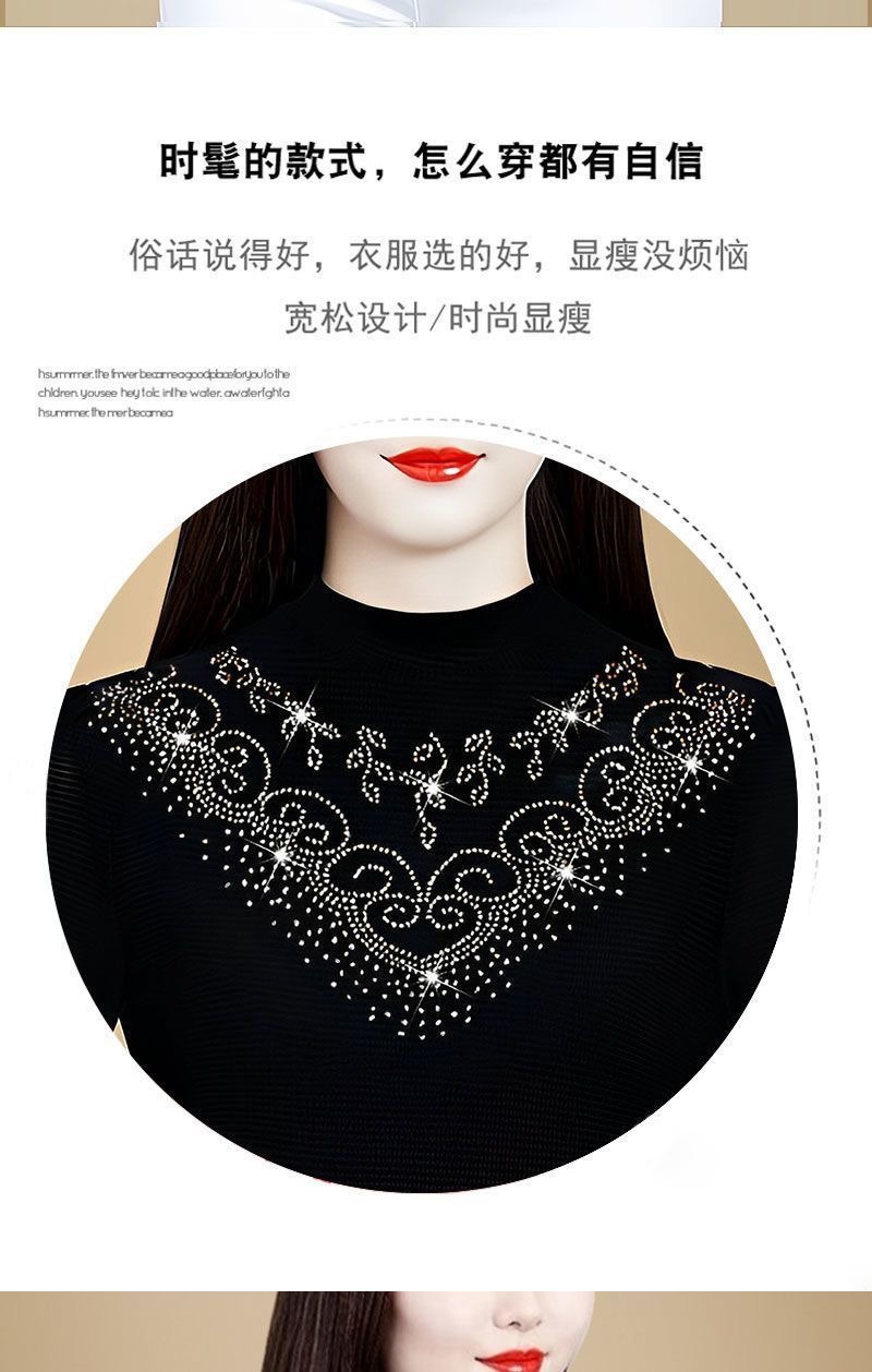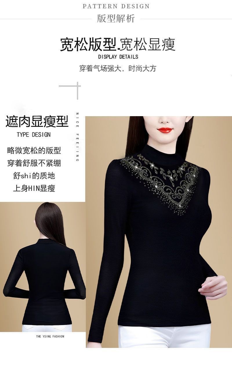 KQL A39N5505洋气百搭蕾丝衫镶钻减龄妈妈打底衫