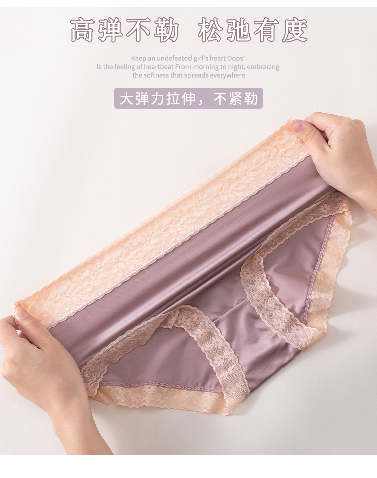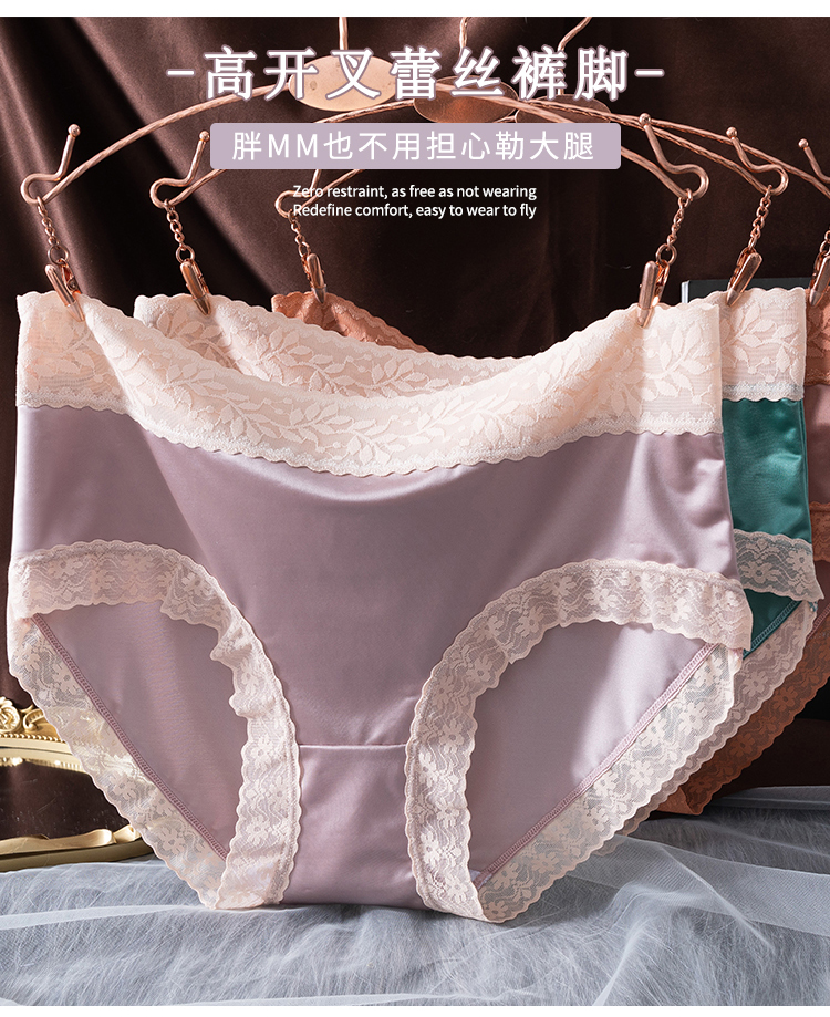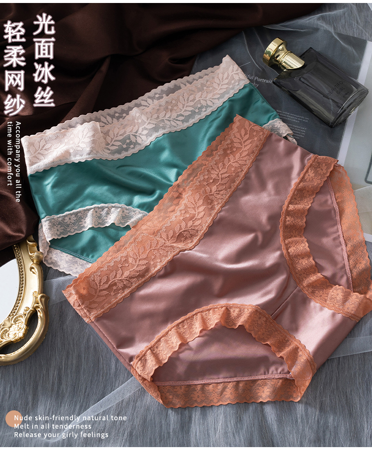 【绸缎贵妇中高腰内裤】轻柔网纱光面冰丝高回弹力告别勒痕天生软糯吸湿透气柔软亲肤持久舒适天然环保