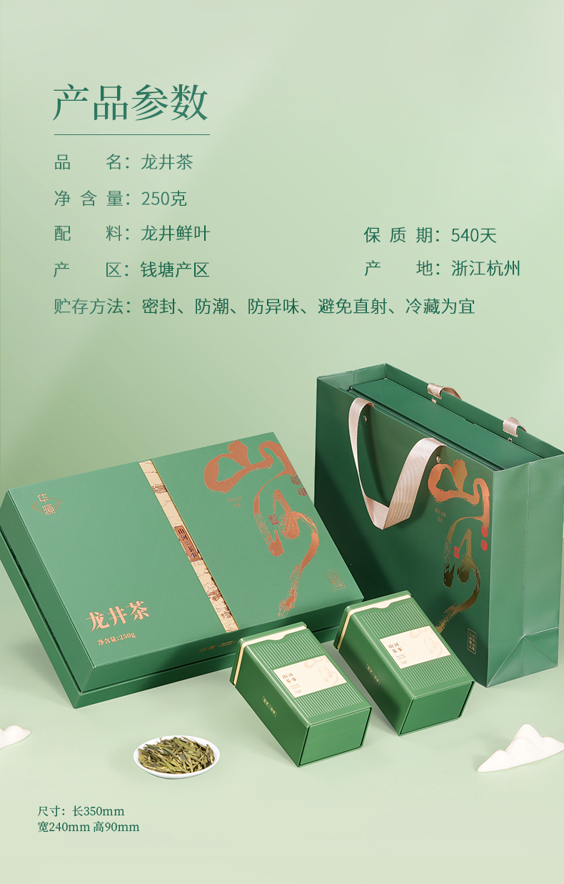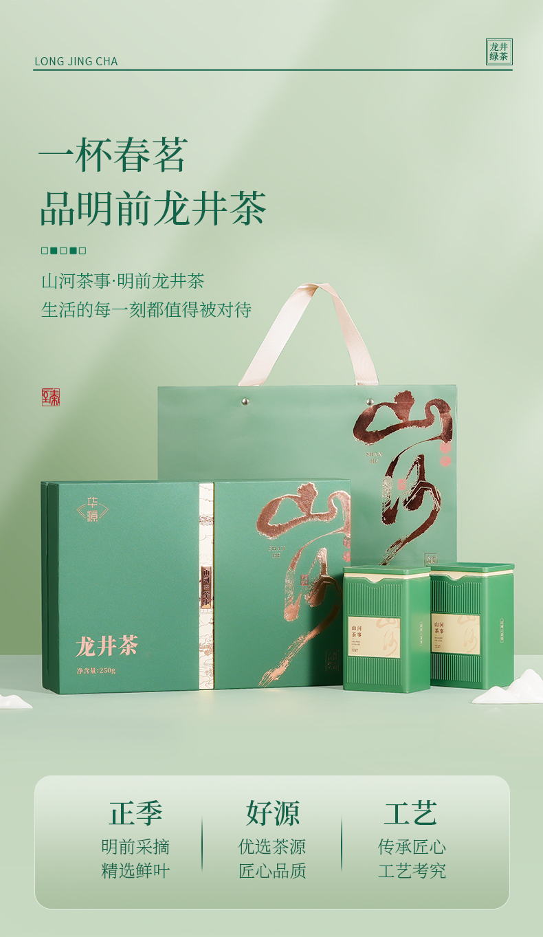 【年货茶礼】茶叶 龙井 明前 2025新茶 龙井 茶叶礼盒 茶饮 华源 250g【山河茶事礼盒】