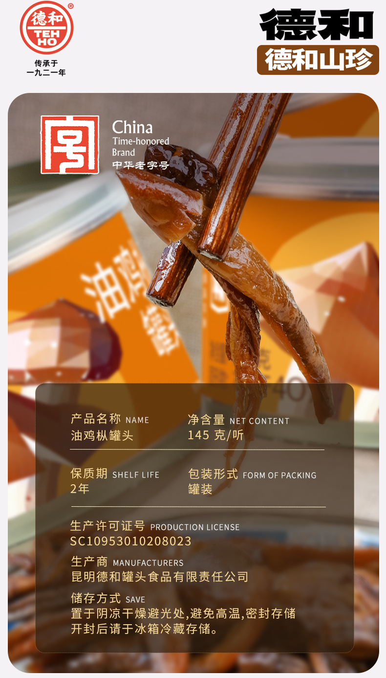 德和 鸡枞菌 油鸡枞145g/罐 云南特产野生菌鸡枞菌#云南菌子
