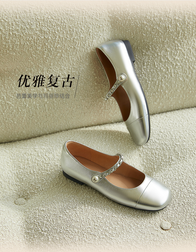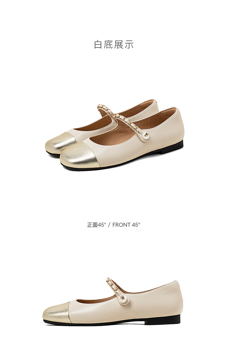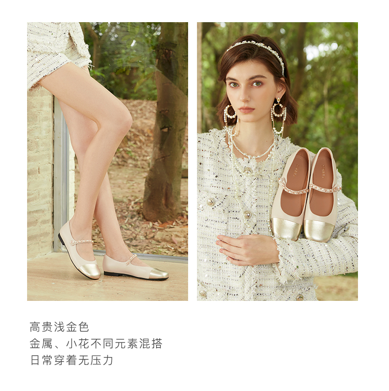 康莉KYQ2K051小香玛丽珍鞋女拼接羊皮单鞋平底芭蕾舞鞋