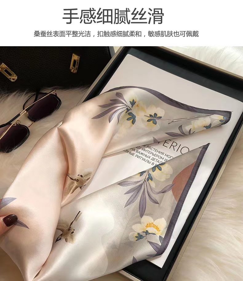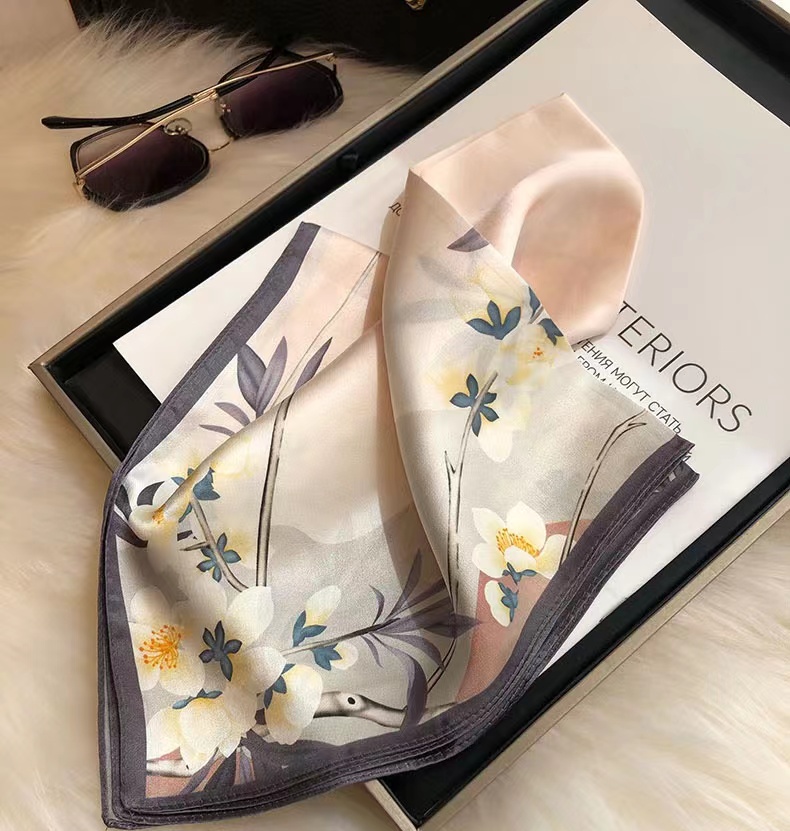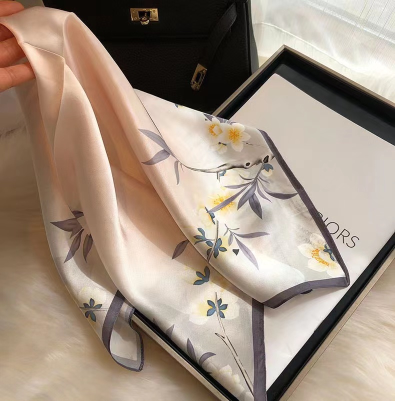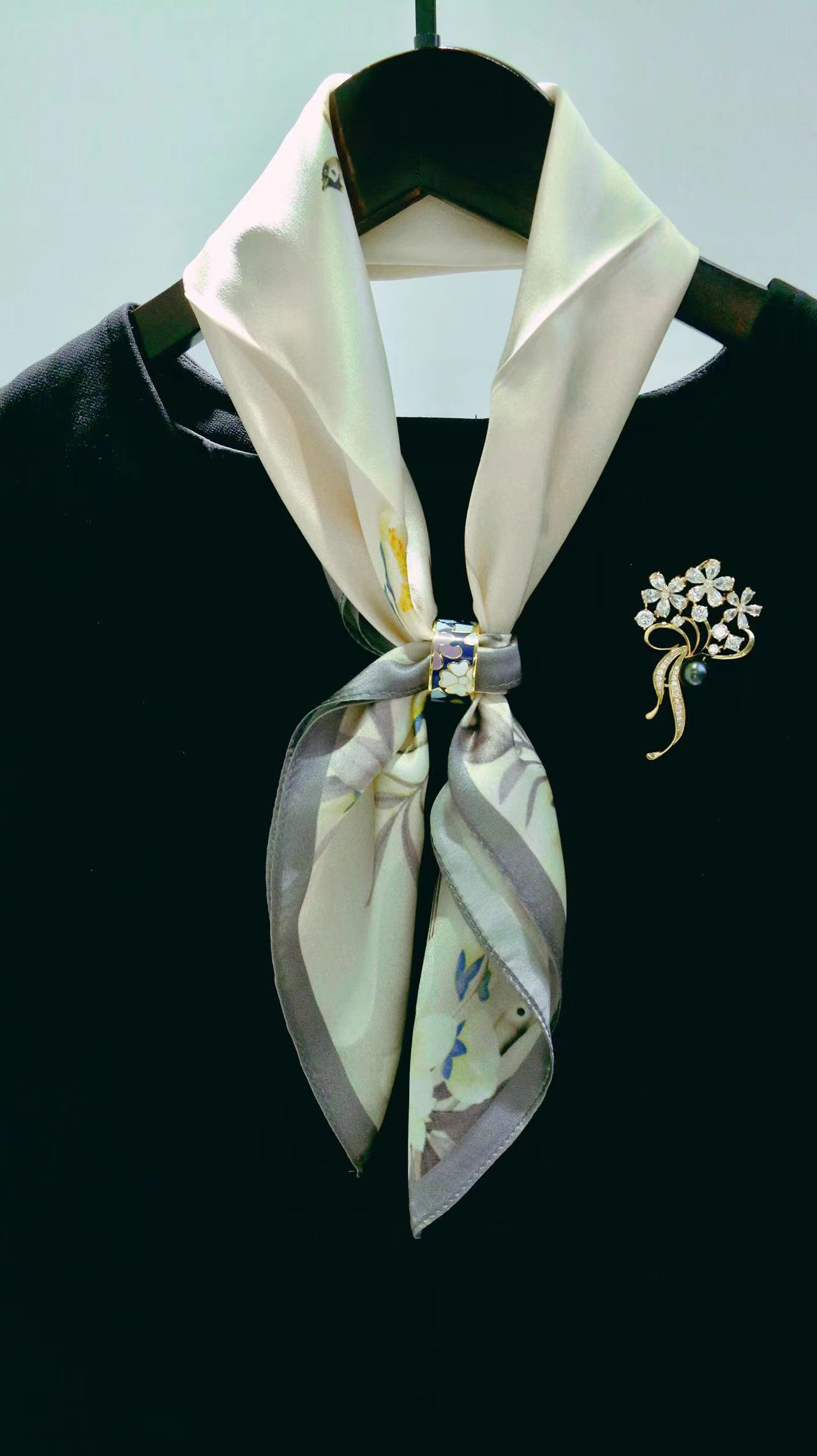 【甄珠贝·花卉系列】53*53cm桑蚕丝丝巾和珐琅丝巾扣礼盒套装