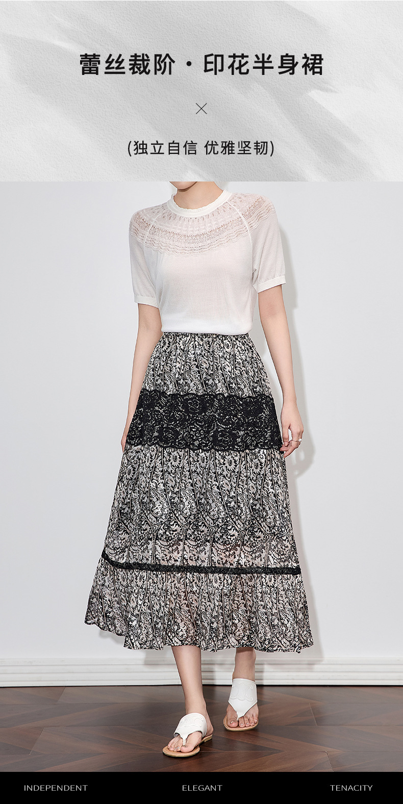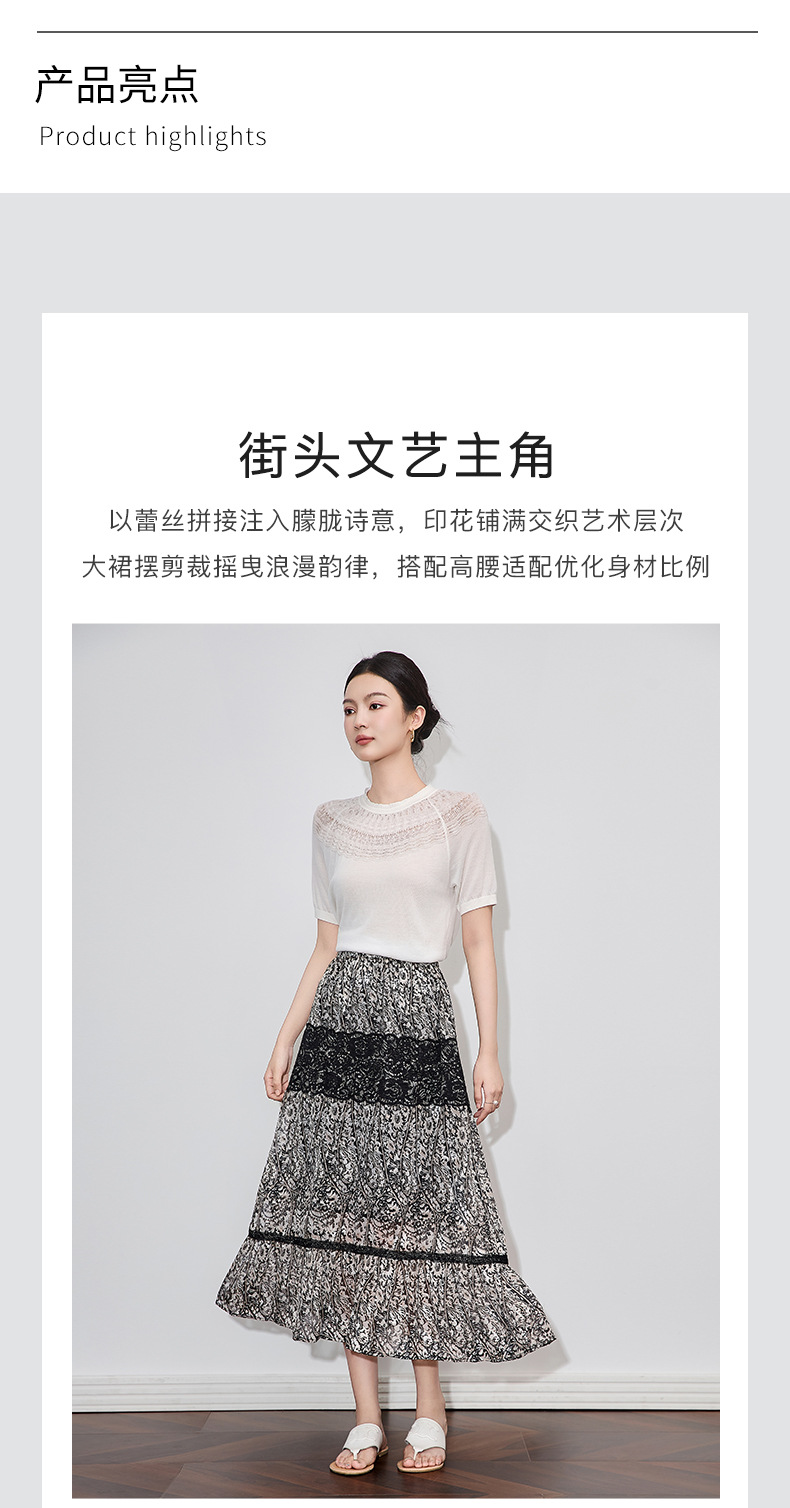 「高货wl」全新升级【铂金会员257/天猫339/差价82】(13240)洛诗琳夏季蕾丝拼烧花印花半裙2025新款小众设计通勤长裙