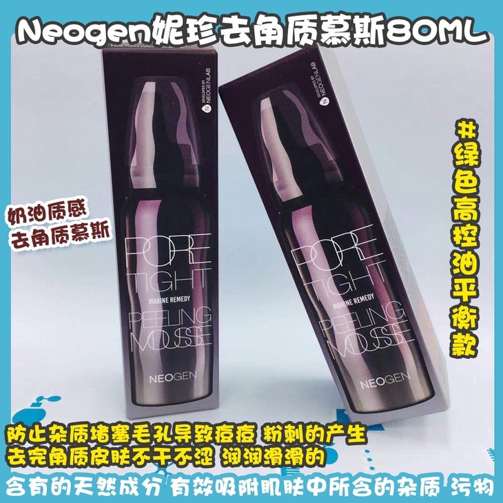 Neogen妮珍去角质慕斯80ML👍毛孔清洁大师😎,奶油质感去角质慕斯☁!含有的天然成分🌿,有效吸附肌肤中所含的杂质、污物♻,还有搜索毛孔、恢复肌肤弹性〽,打造净白肌肤的作用哦✨~👊防止杂质堵塞毛孔导致痘痘、粉刺的产生。去完角质皮肤不干不涩😊,润润滑滑的💦,后续护肤吸收也会更好!⚠建议tips:记得干手干脚使用❗油性肌肤每周1-2次,中干性肌肤每周1次,混合型T区每周1-2次,U区每周1次就好啦
