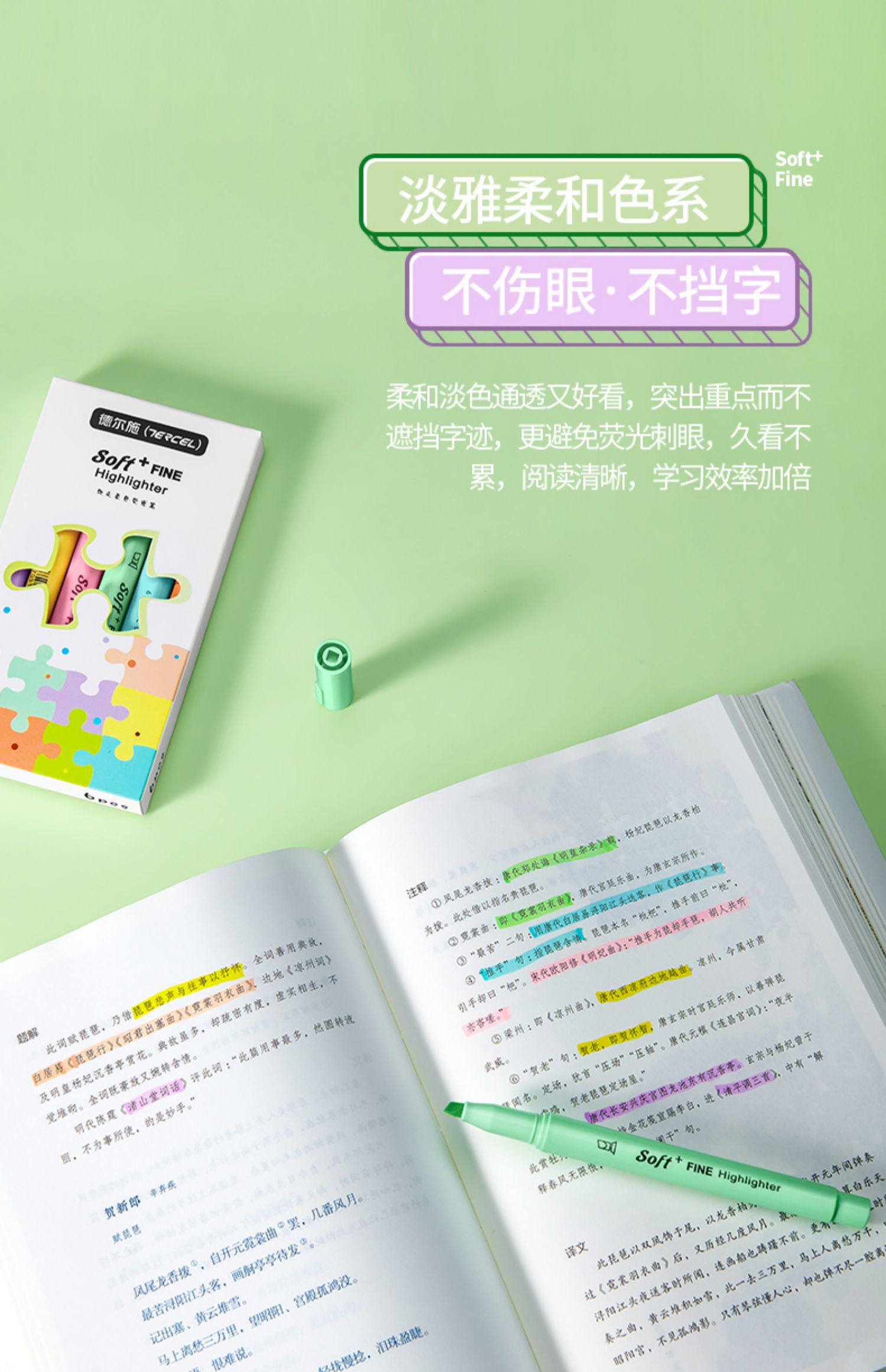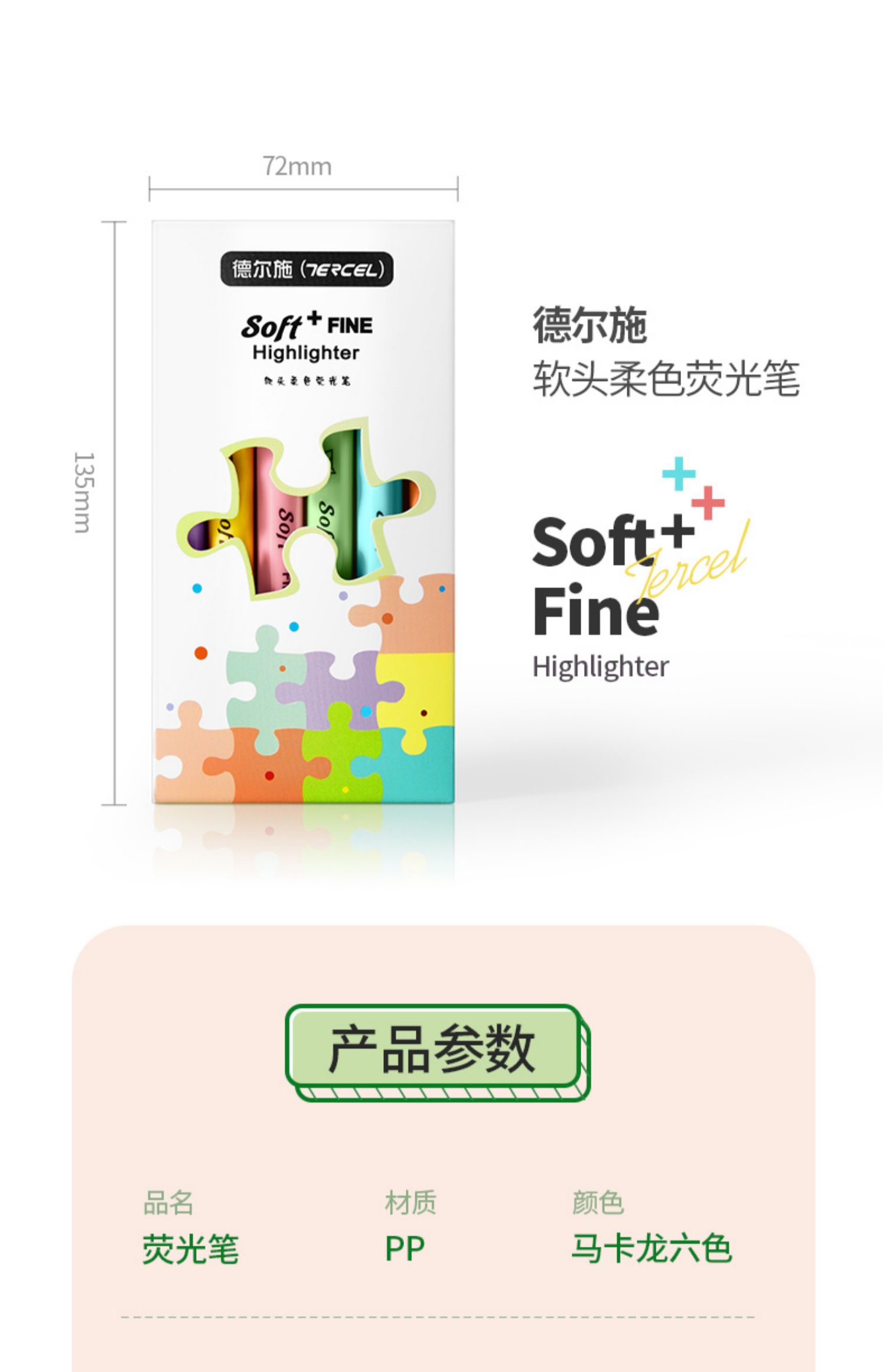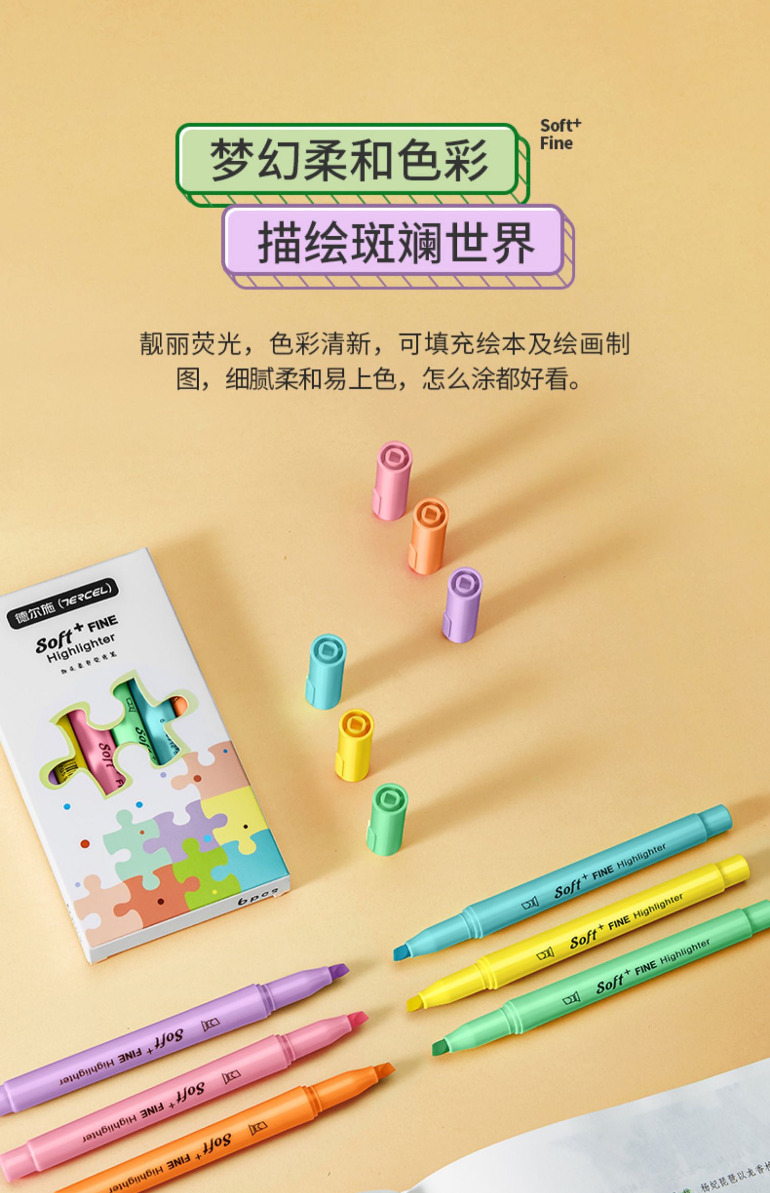德尔施 软头荧光笔马卡龙系列 粗划记重点