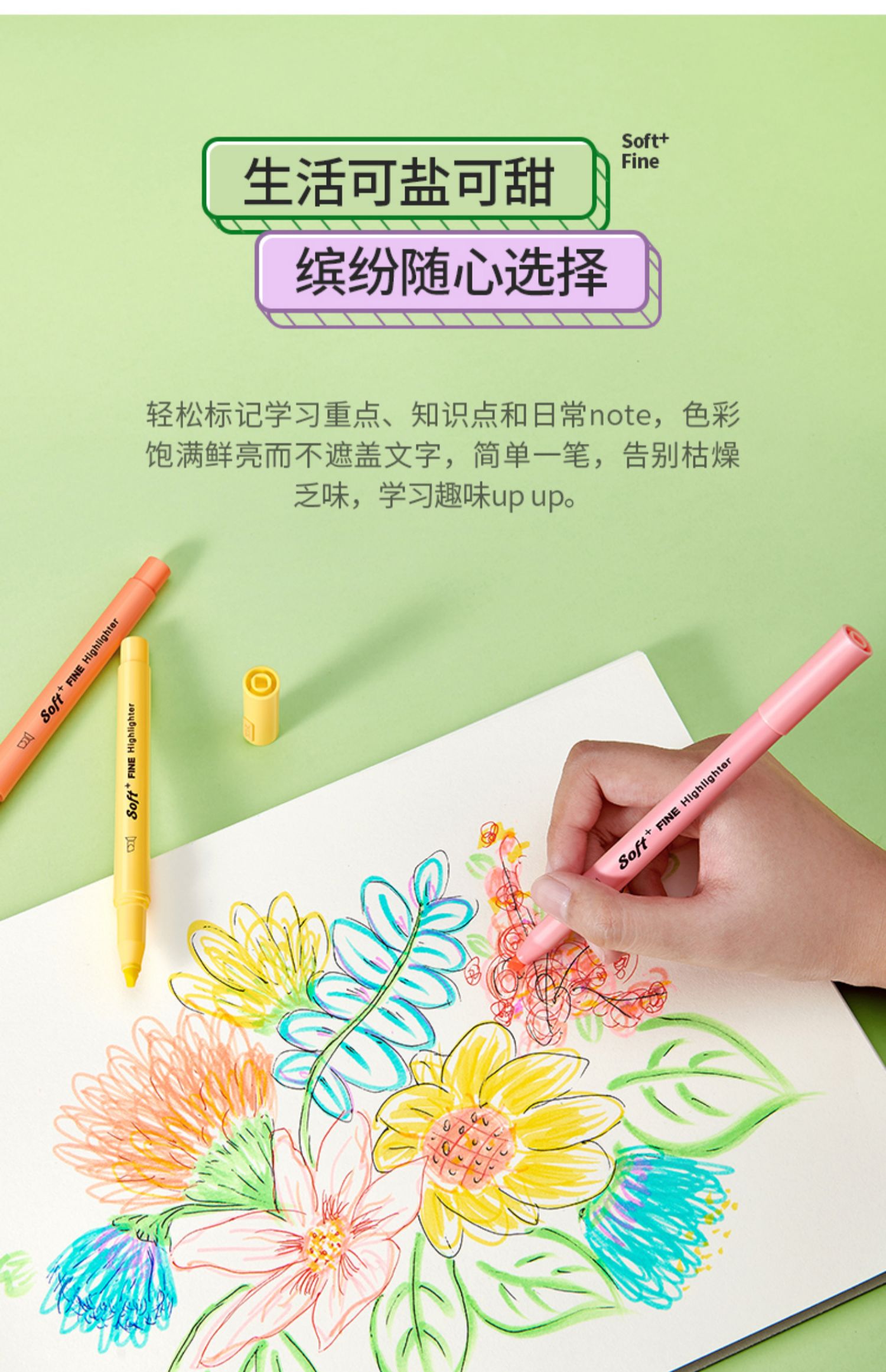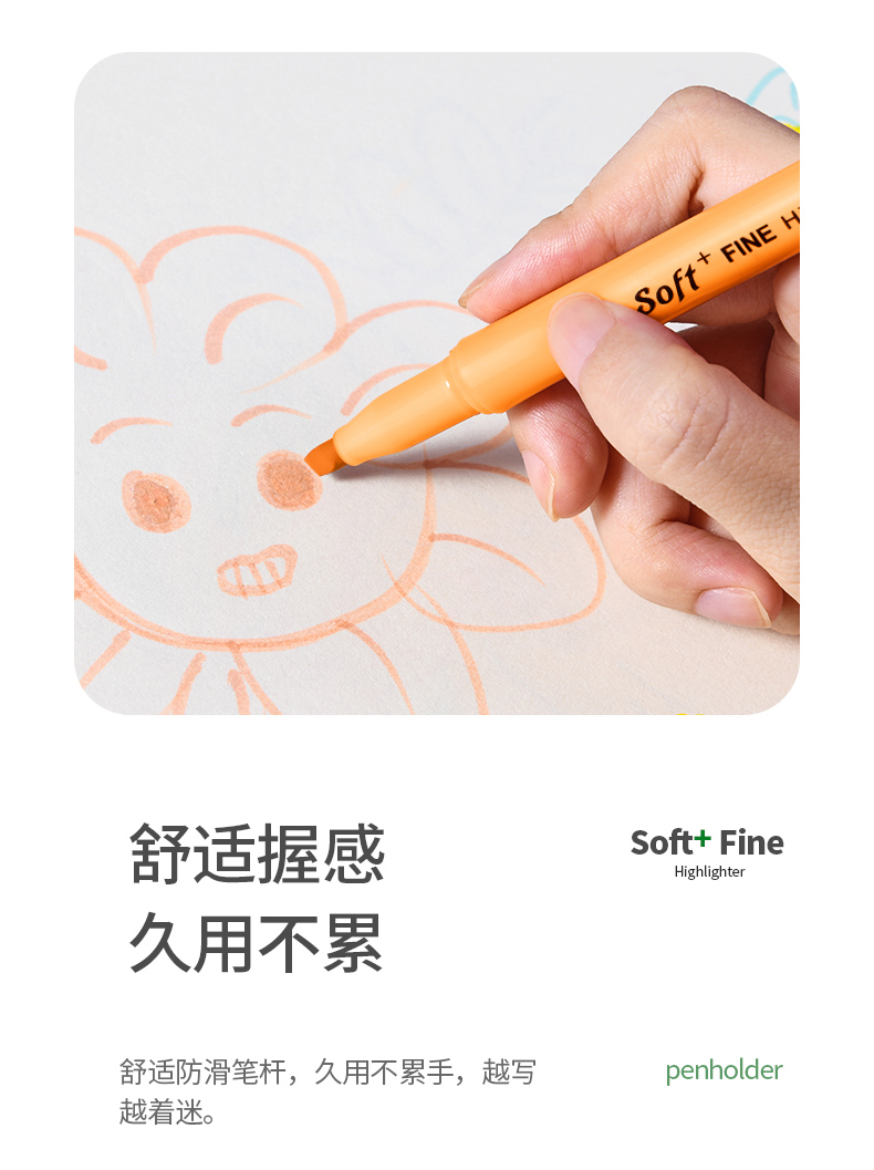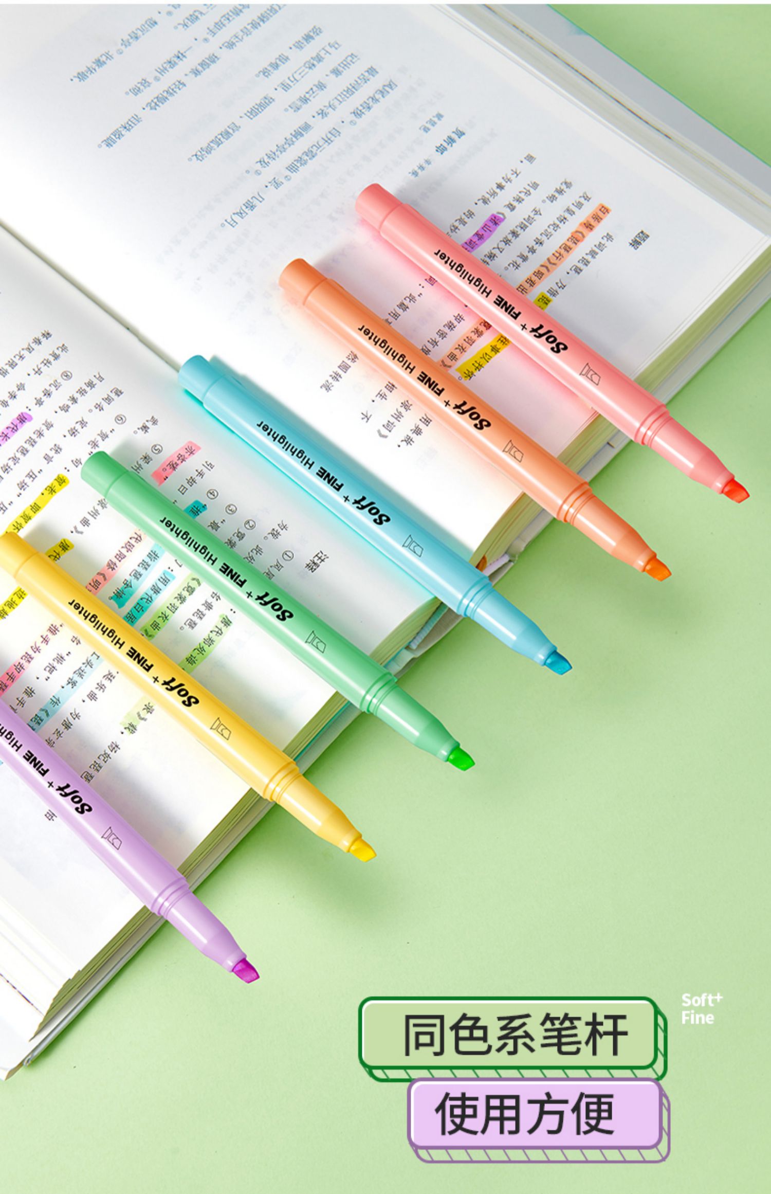 德尔施 软头荧光笔马卡龙系列 粗划记重点