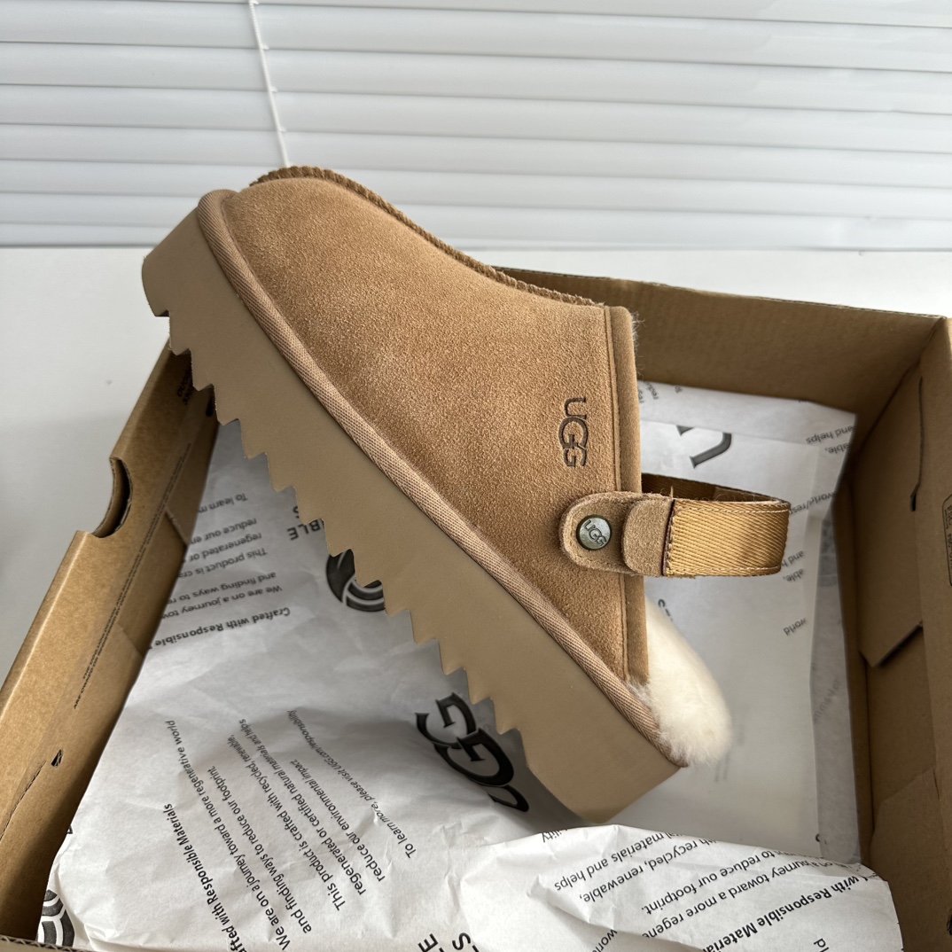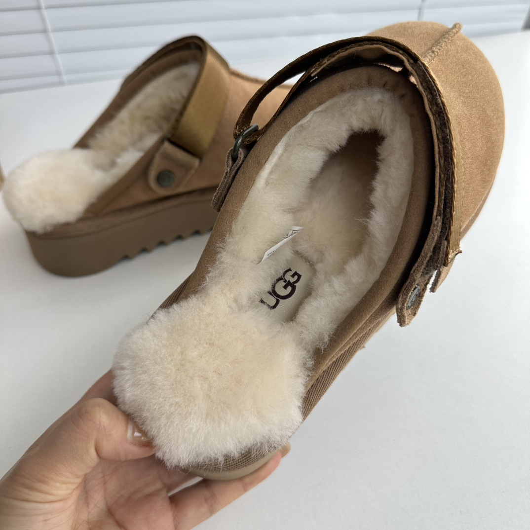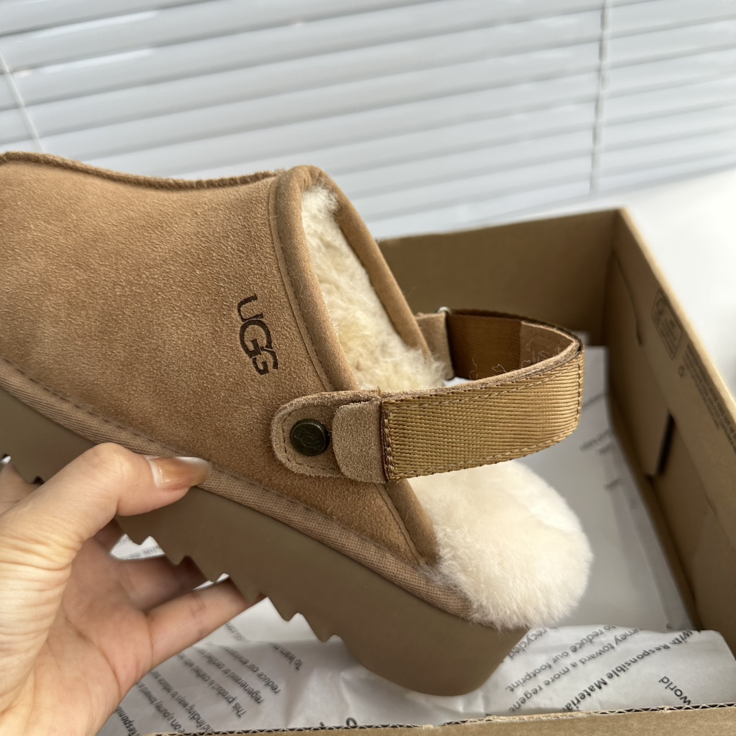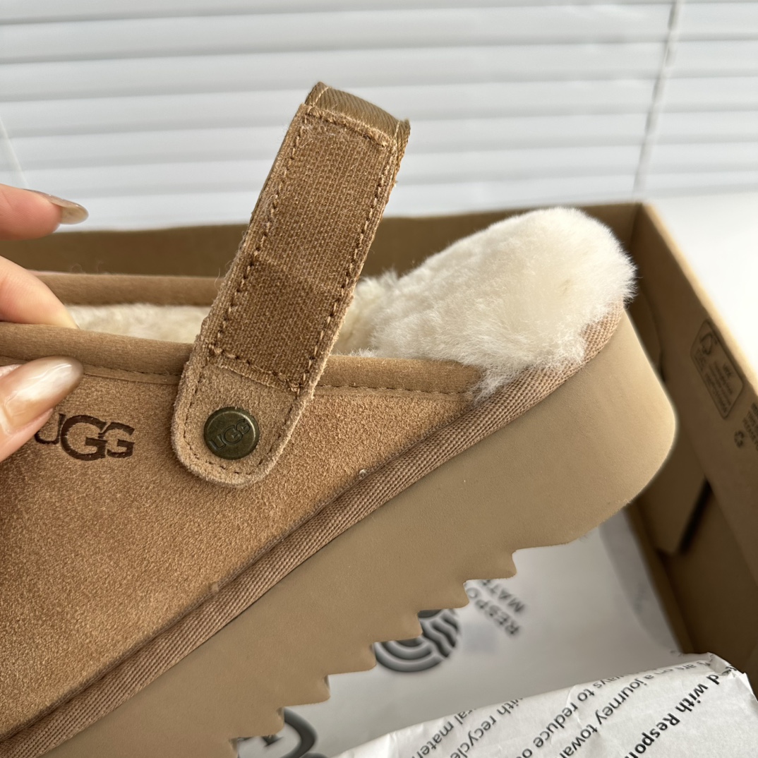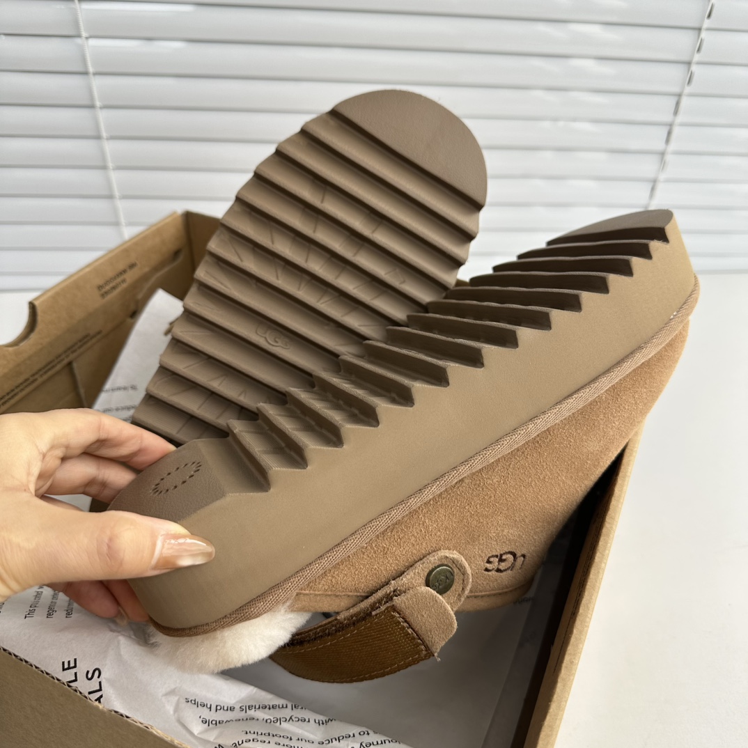 鞋底用料高密度弹力eva,这种鞋底的好处在就在于上脚柔软且不容易凹陷,UG*G的好穿是出了名的,舒适度真的不用在重复提起!!澳洲皮毛一体,纯羊毛🦙毛长足够长和均匀,保暖效果特别棒!