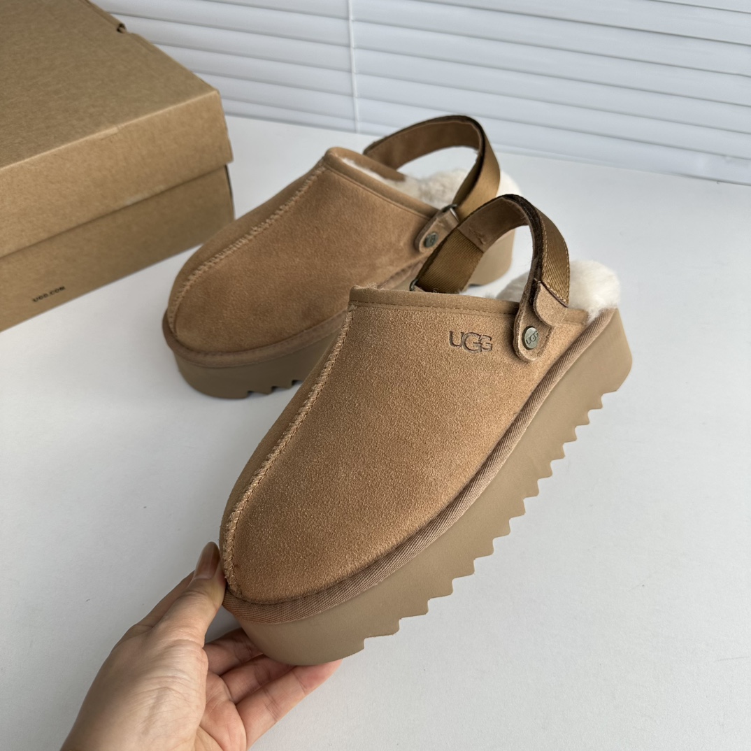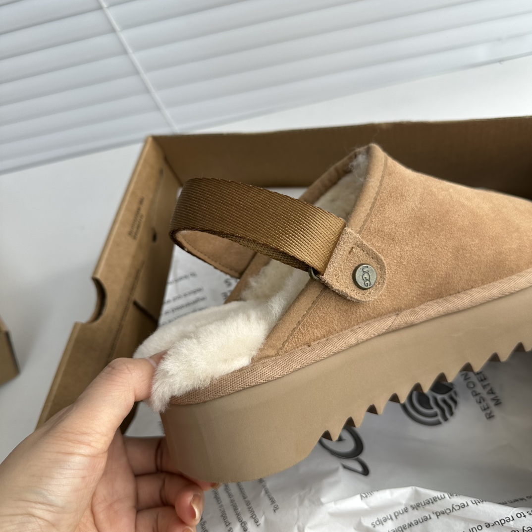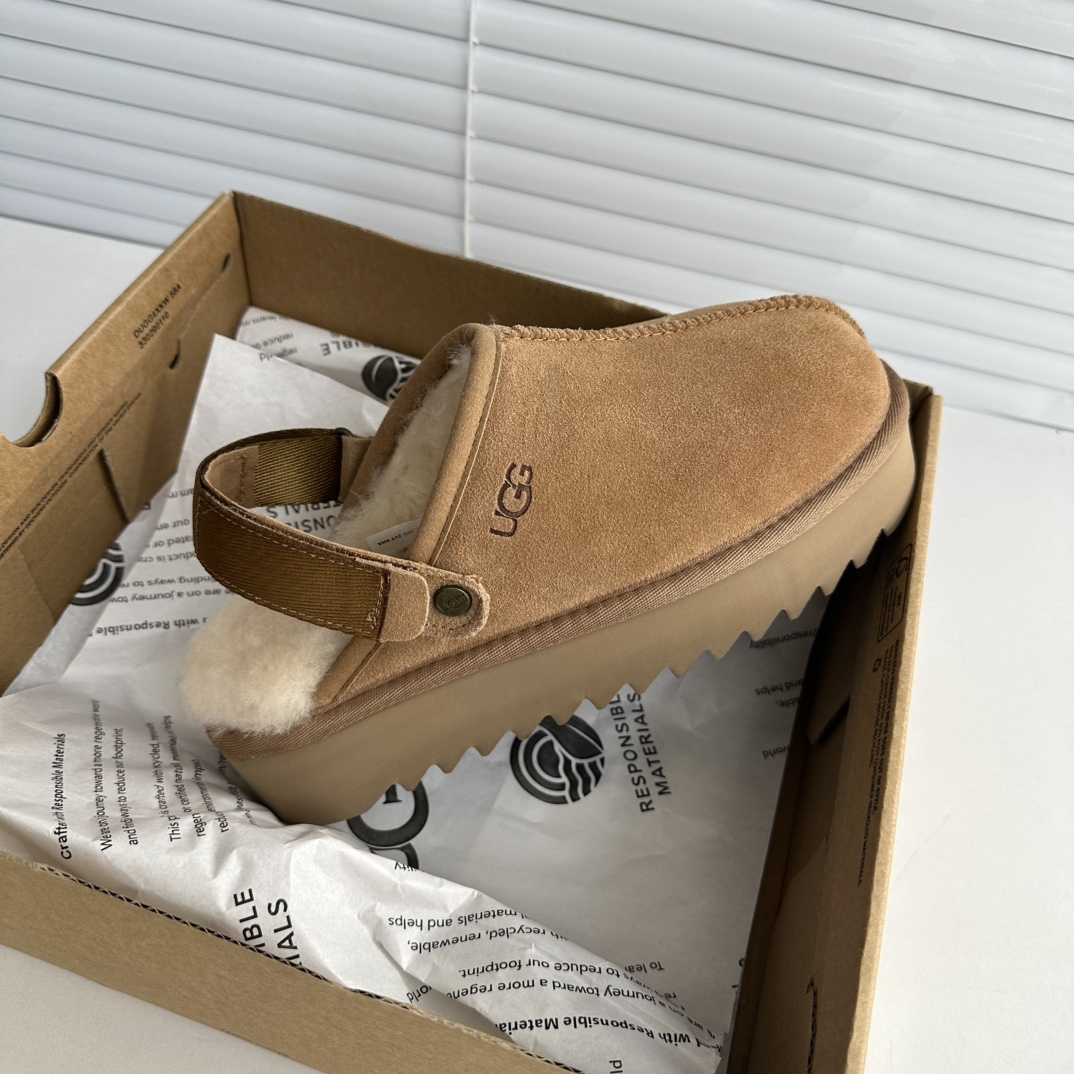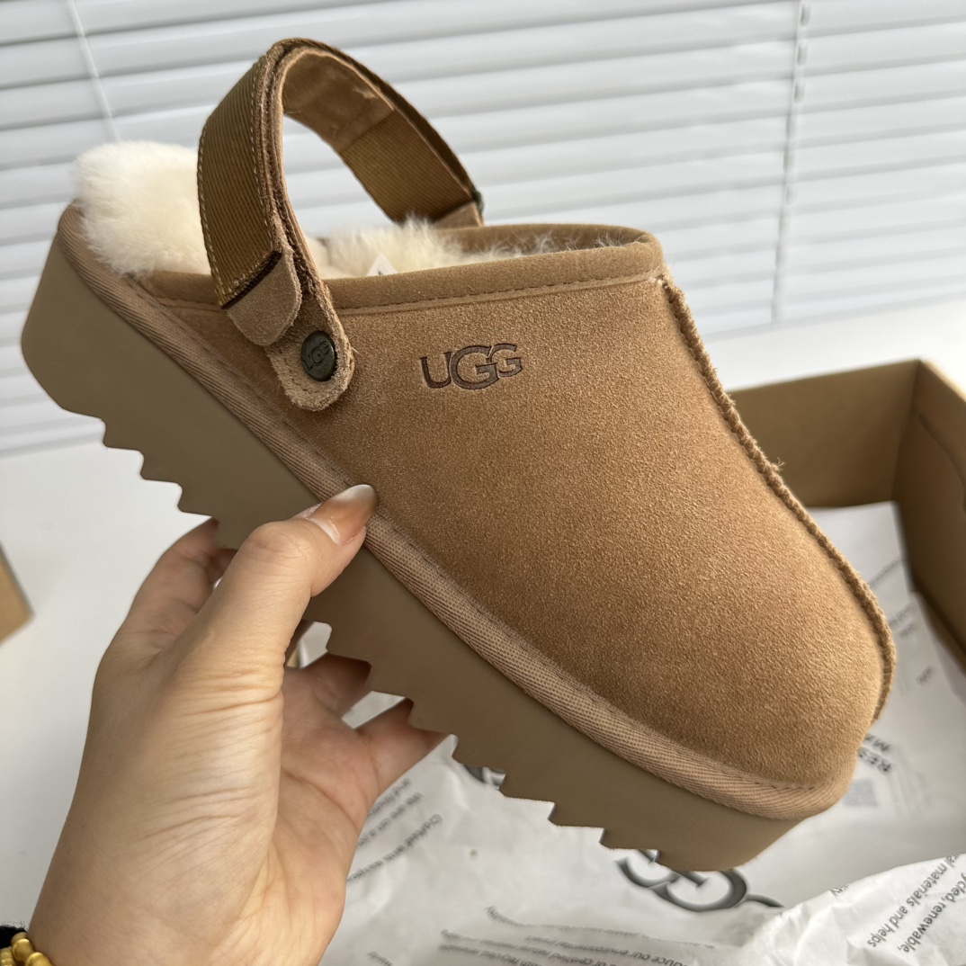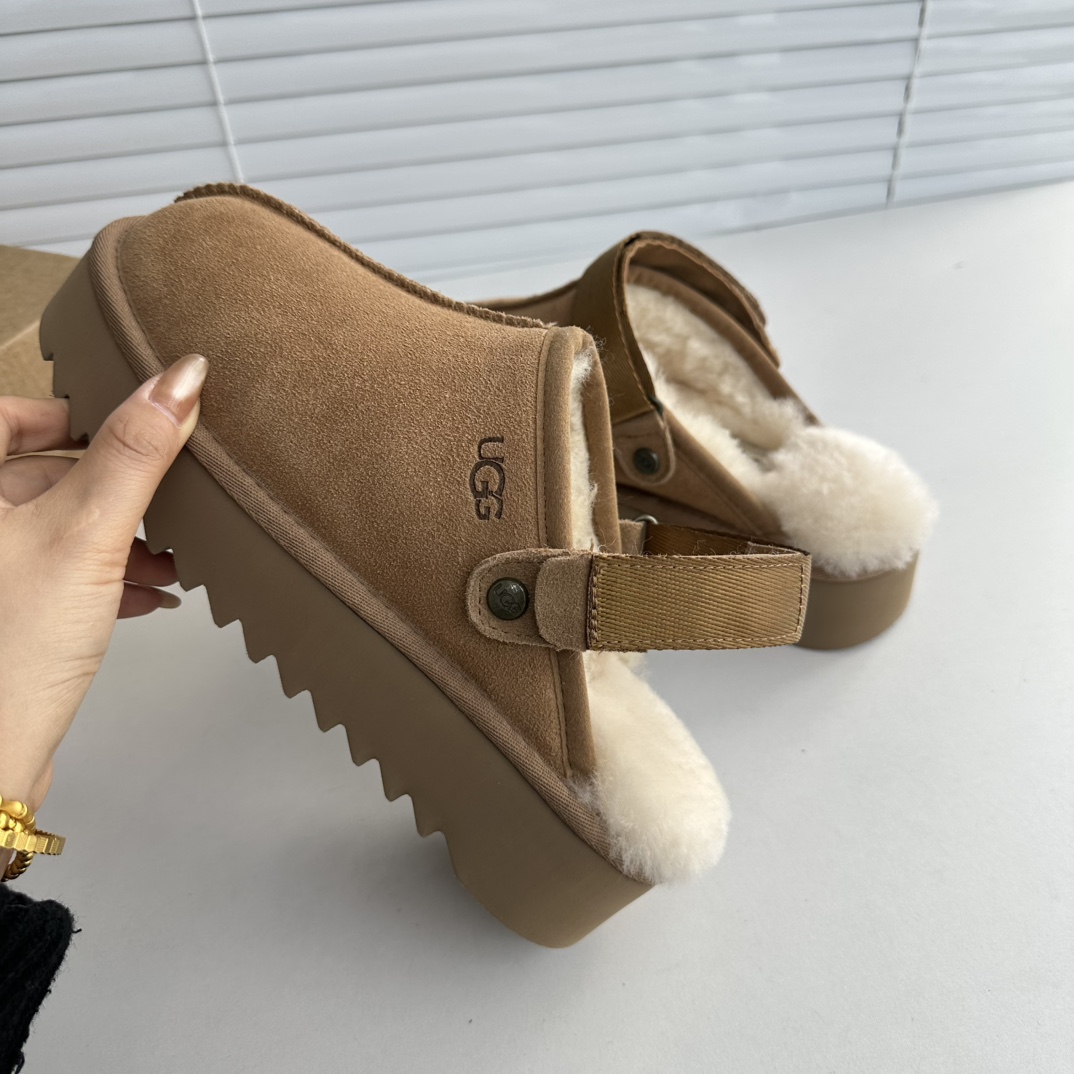 鞋底用料高密度弹力eva,这种鞋底的好处在就在于上脚柔软且不容易凹陷,UG*G的好穿是出了名的,舒适度真的不用在重复提起!!澳洲皮毛一体,纯羊毛🦙毛长足够长和均匀,保暖效果特别棒!