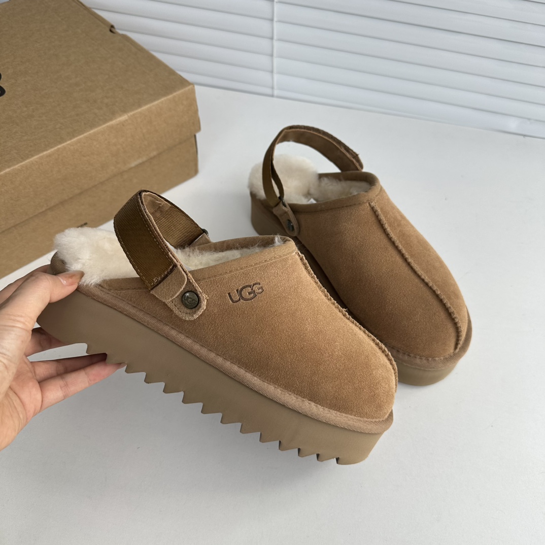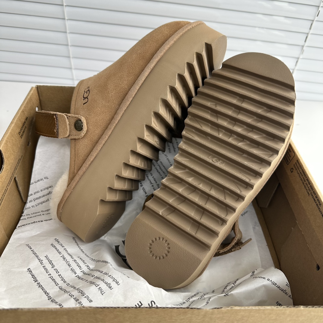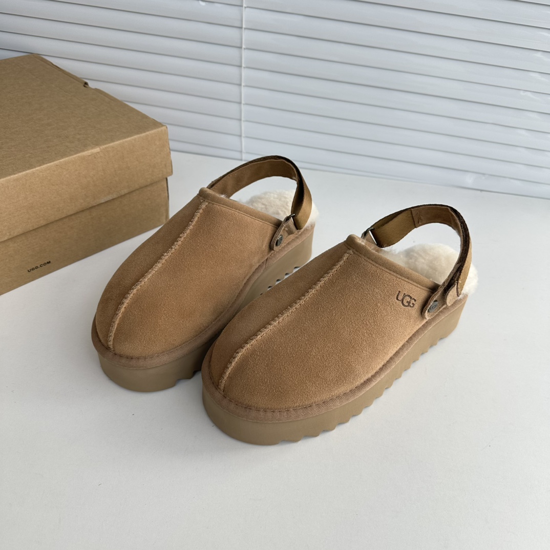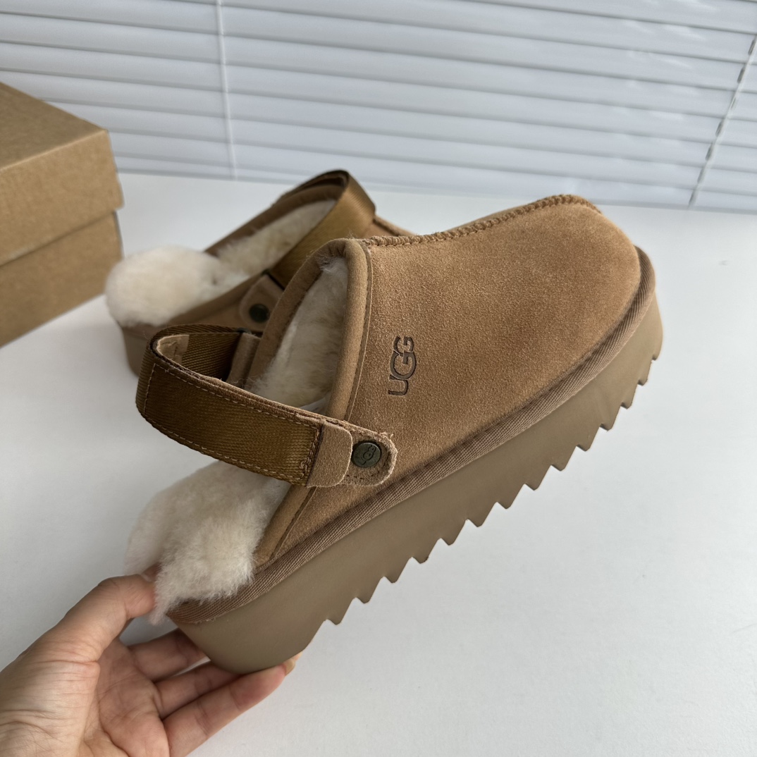 鞋底用料高密度弹力eva,这种鞋底的好处在就在于上脚柔软且不容易凹陷,UG*G的好穿是出了名的,舒适度真的不用在重复提起!!澳洲皮毛一体,纯羊毛🦙毛长足够长和均匀,保暖效果特别棒!