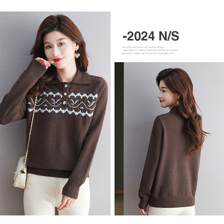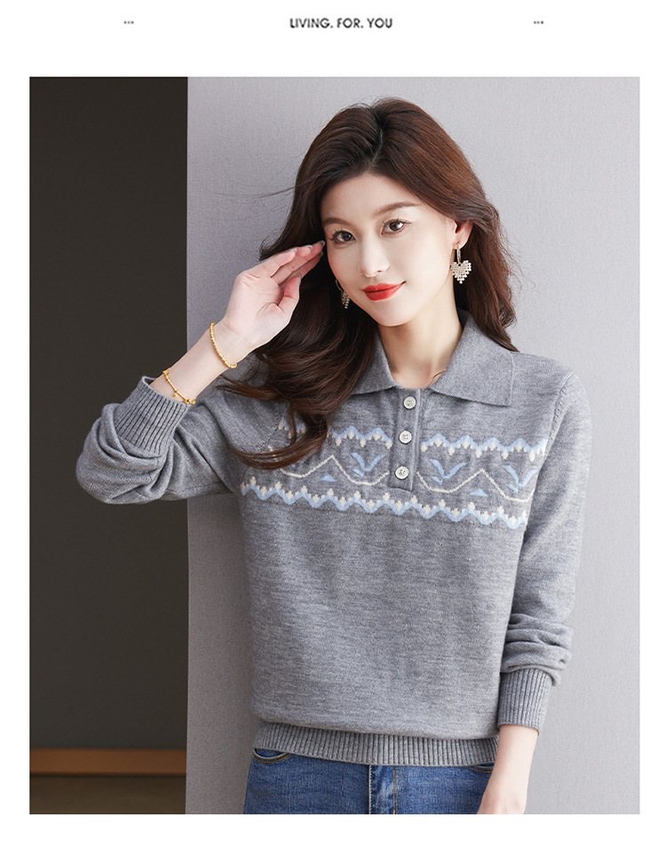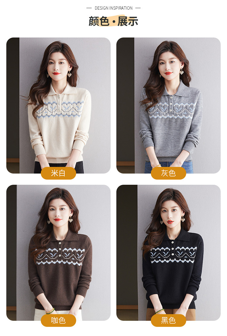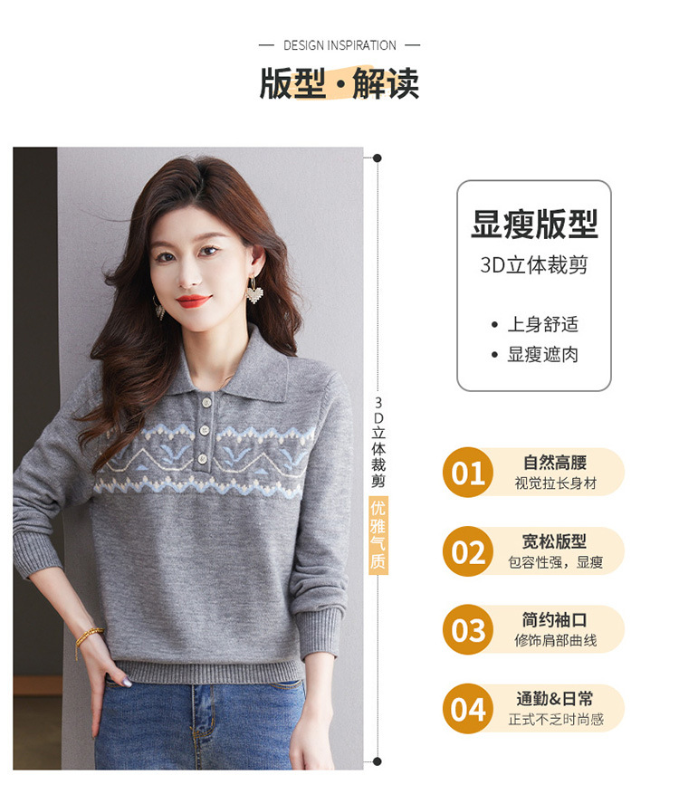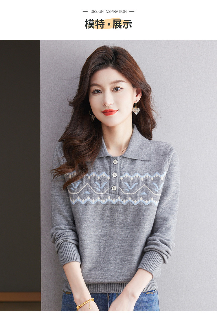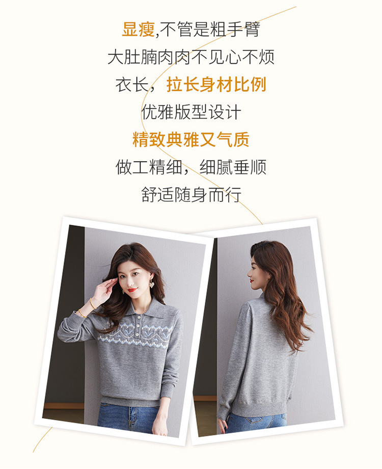 洋气提花针织衫毛衣,休闲polo领别致上衣CC-101-2038