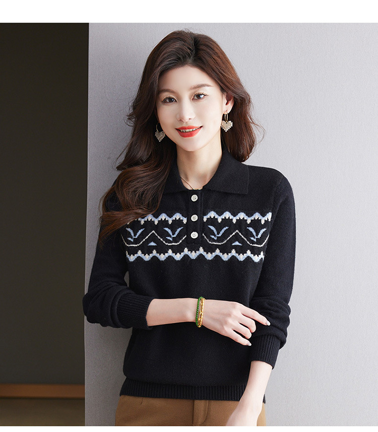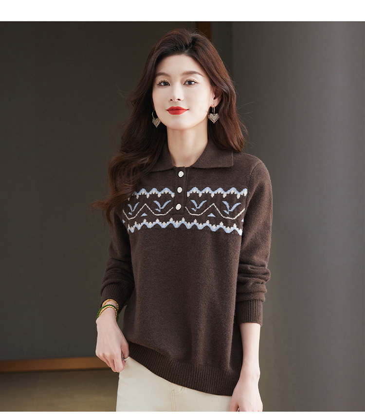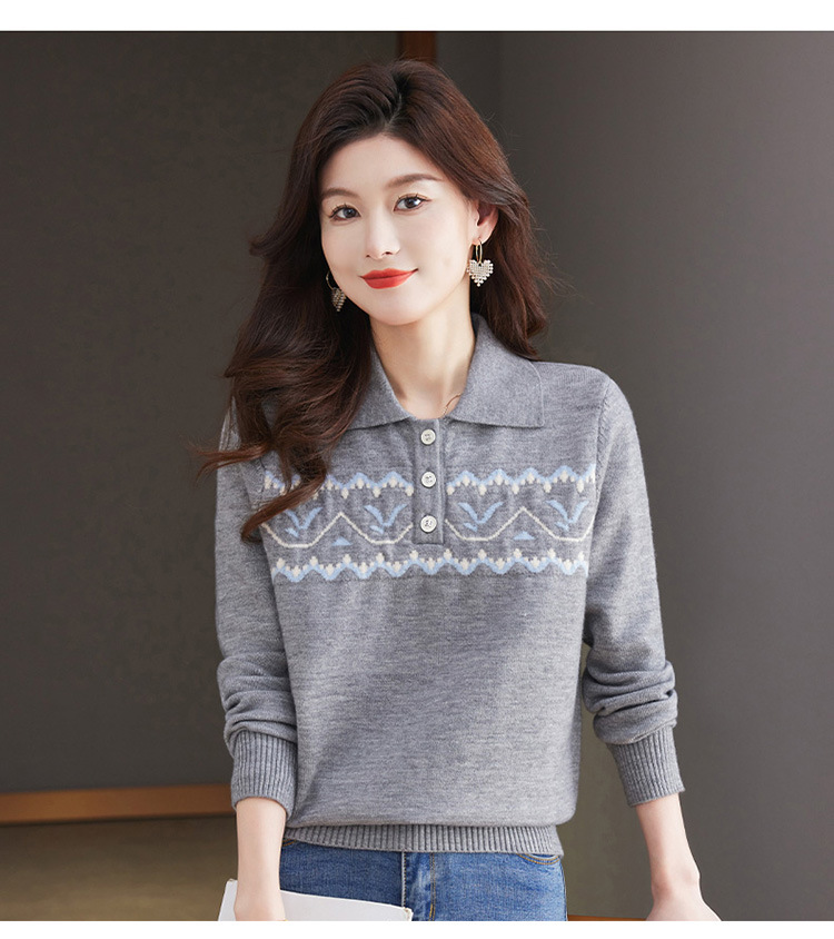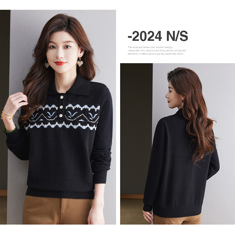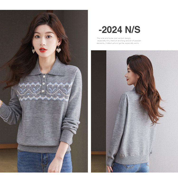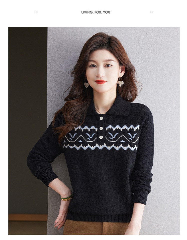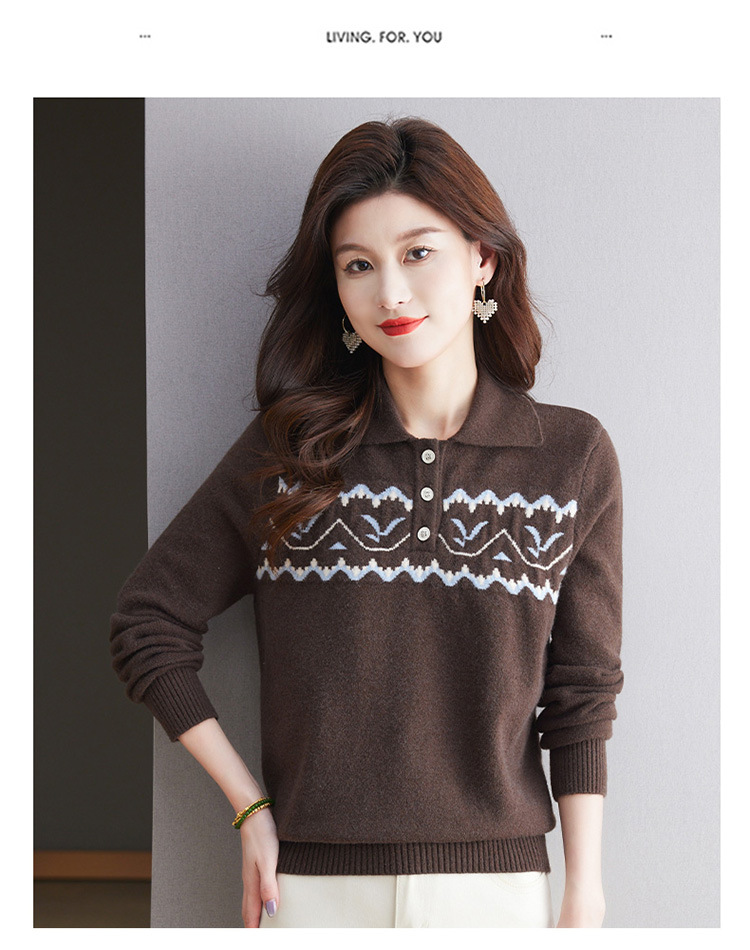 洋气提花针织衫毛衣,休闲polo领别致上衣CC-101-2038