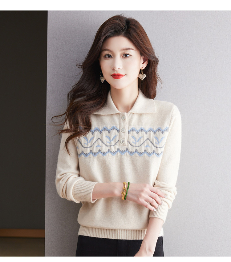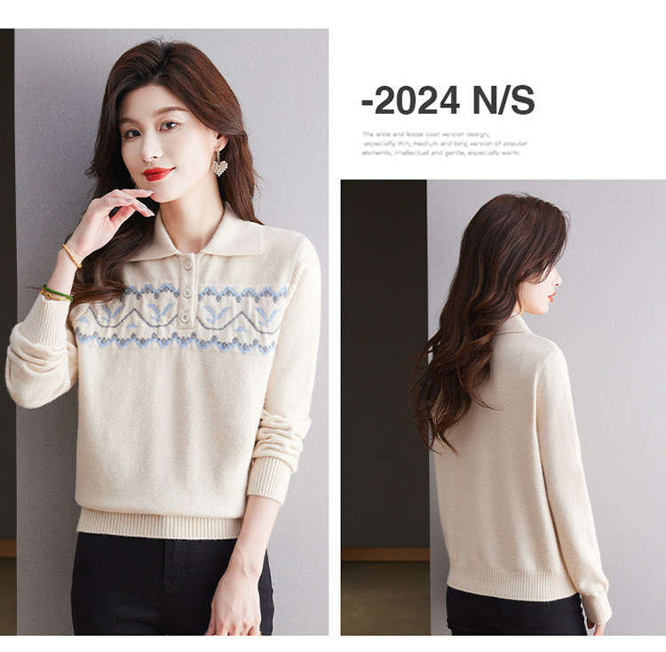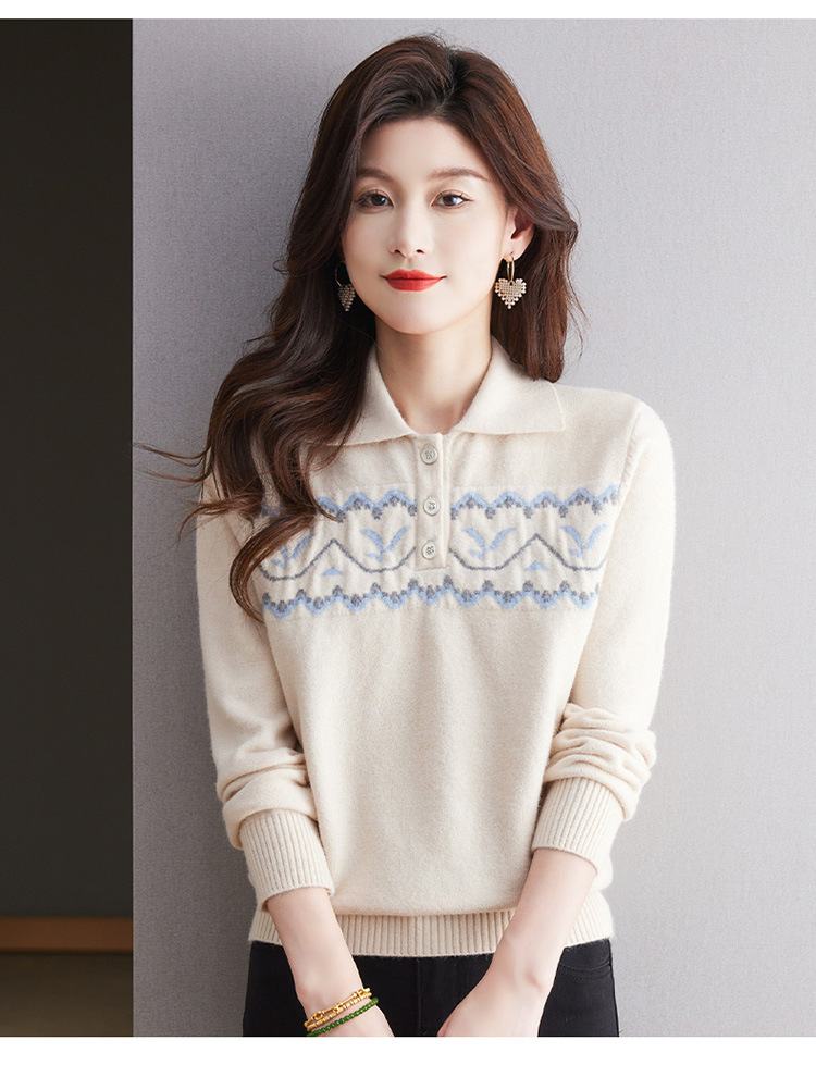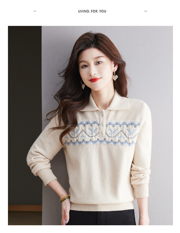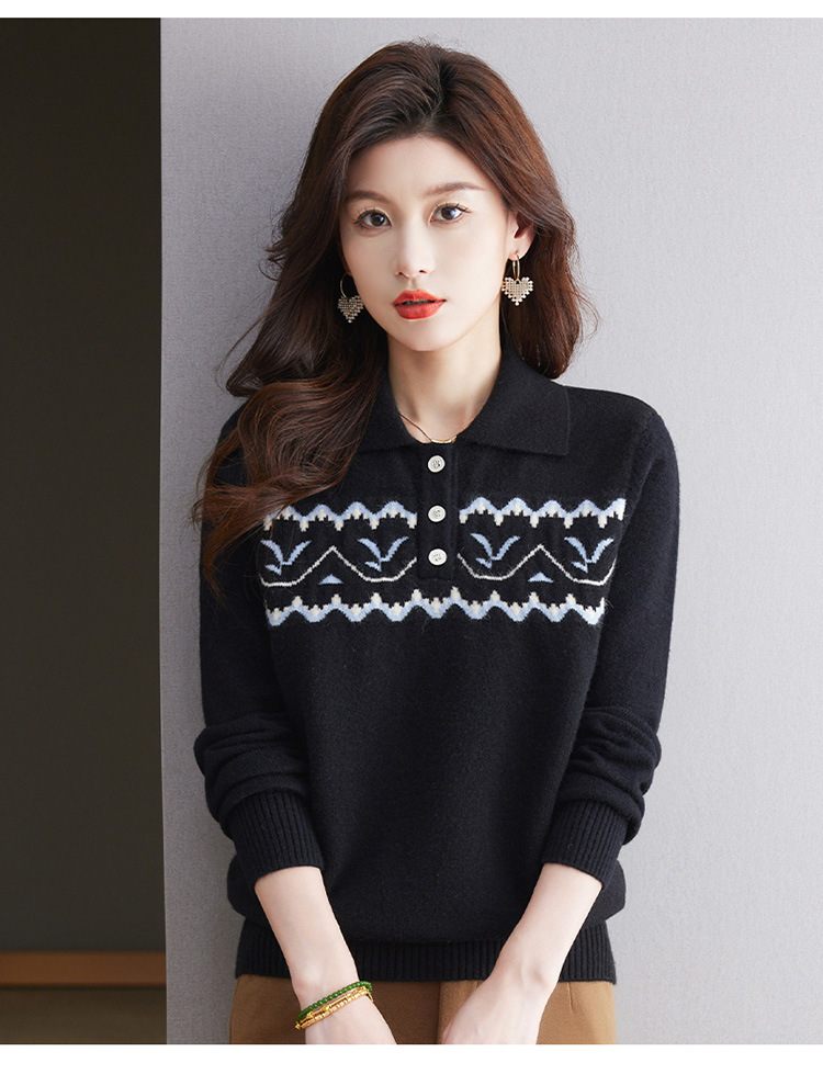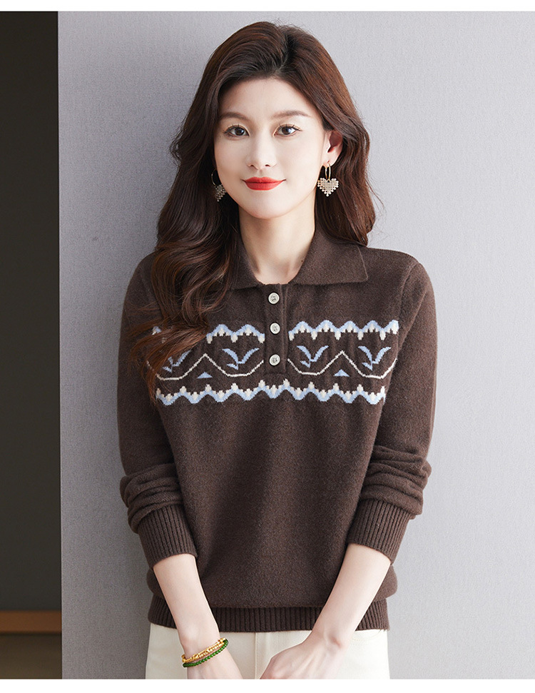 洋气提花针织衫毛衣,休闲polo领别致上衣CC-101-2038