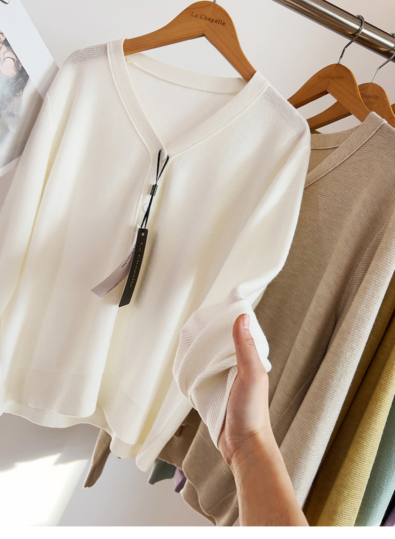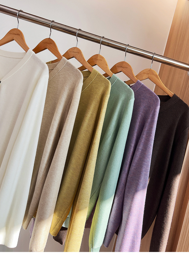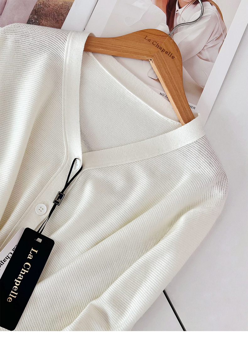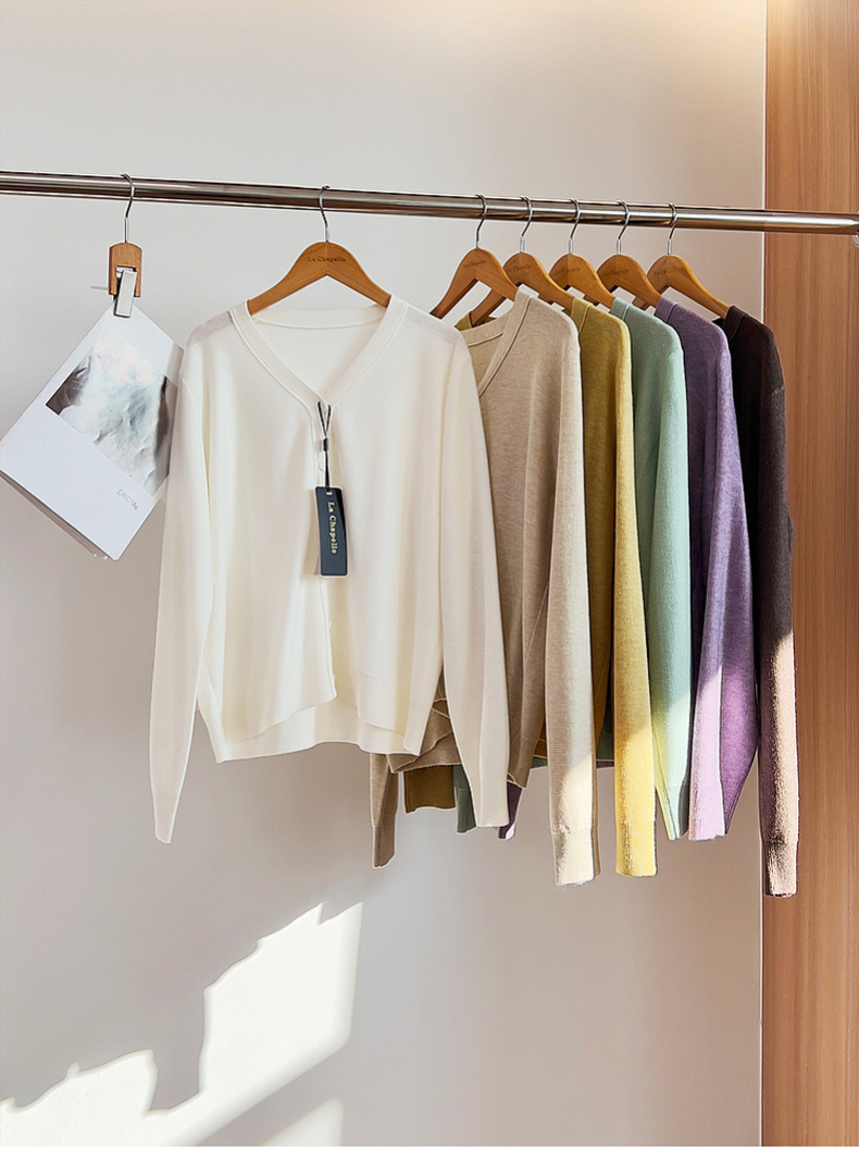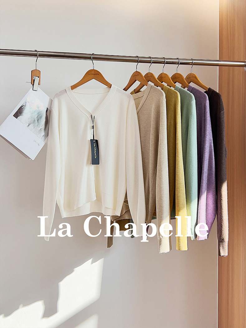 专柜实拍【绵羊毛~舒适柔软】拉夏贝尔/La Chapelle温柔松弛感!气质V领单排扣极简开衫百搭针织上衣