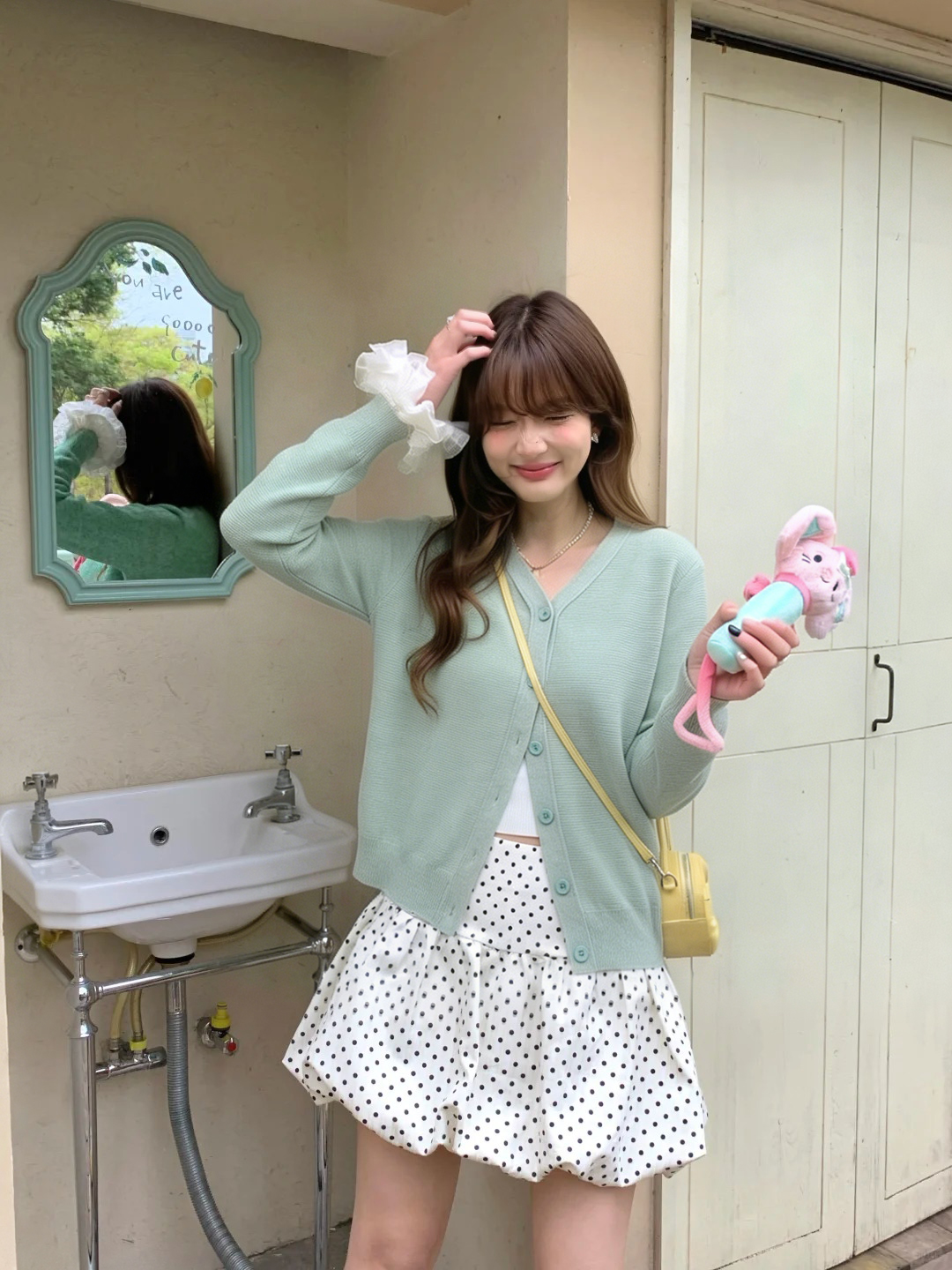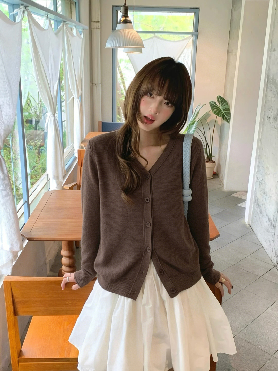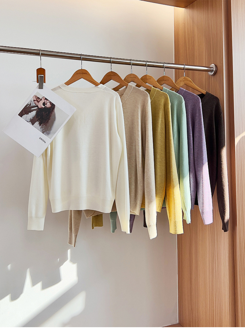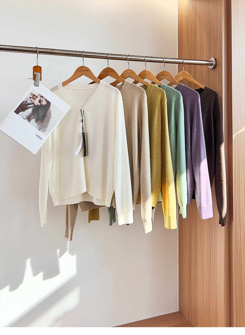 专柜实拍【绵羊毛~舒适柔软】拉夏贝尔/La Chapelle温柔松弛感!气质V领单排扣极简开衫百搭针织上衣