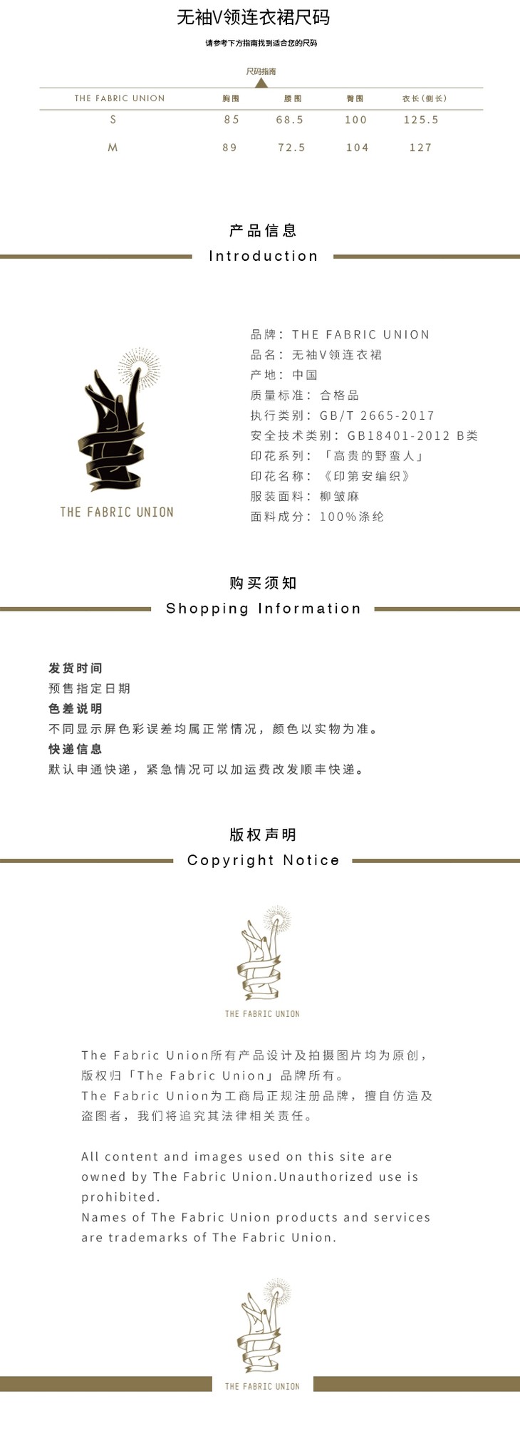 THE FABRIC UNION「高贵的野蛮人」系列服装 ⽆袖V领连⾐裙 现货