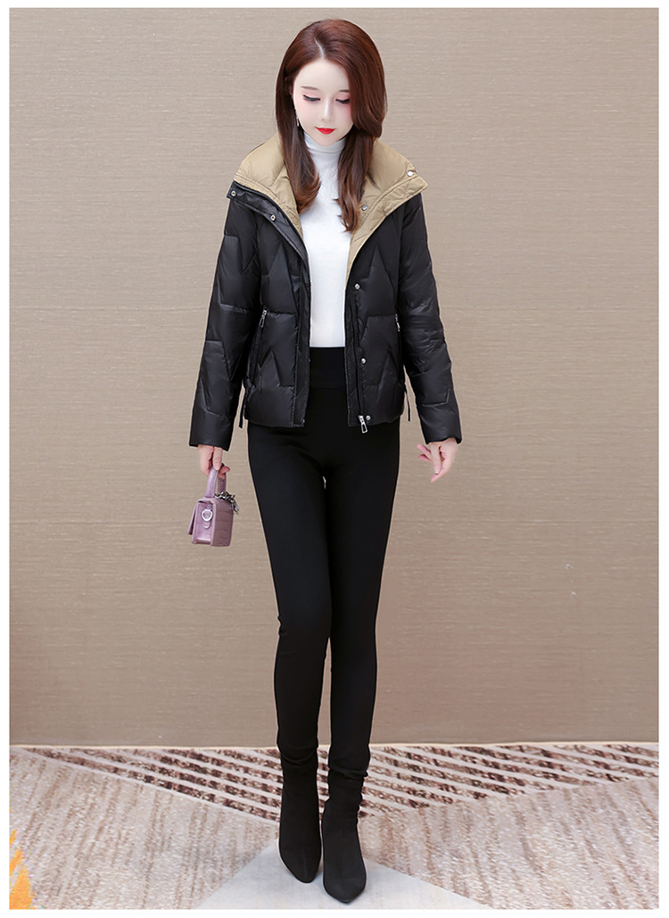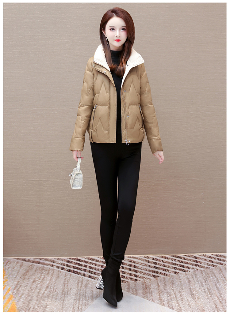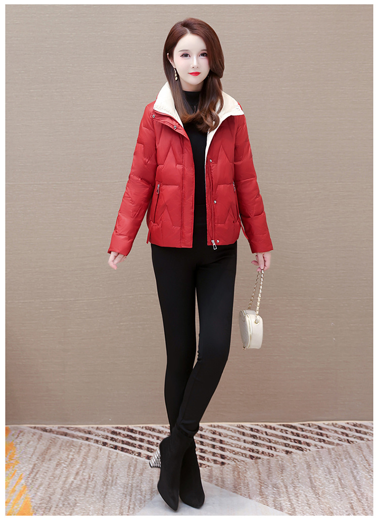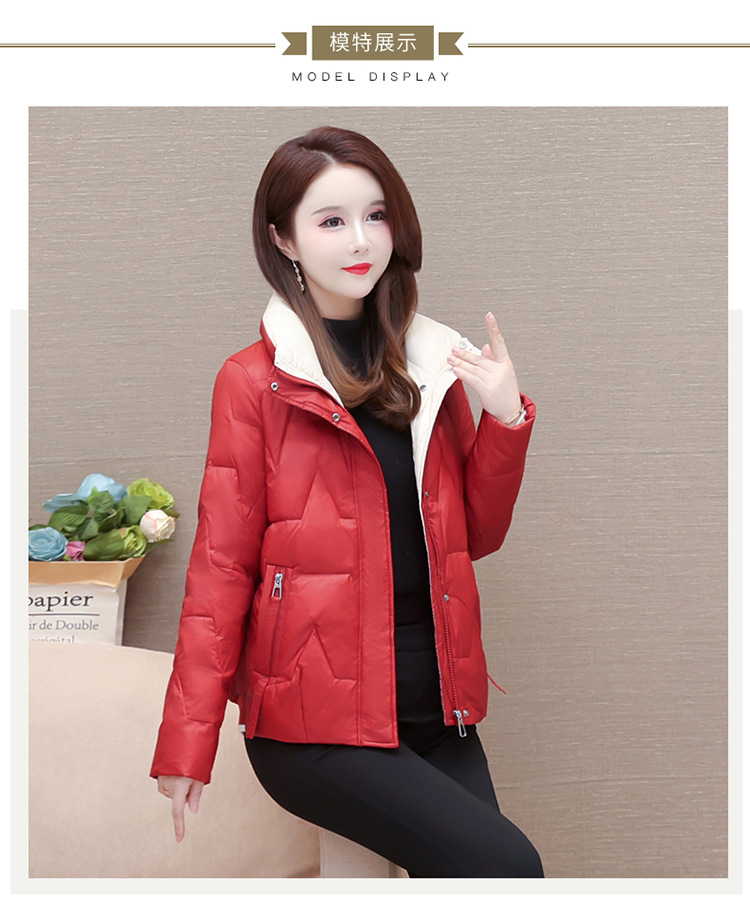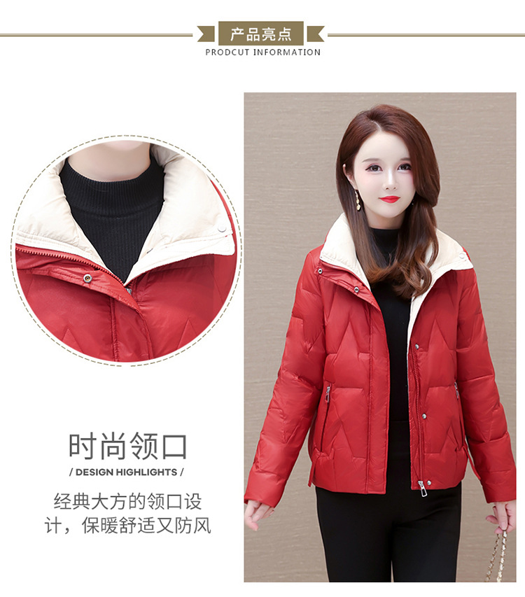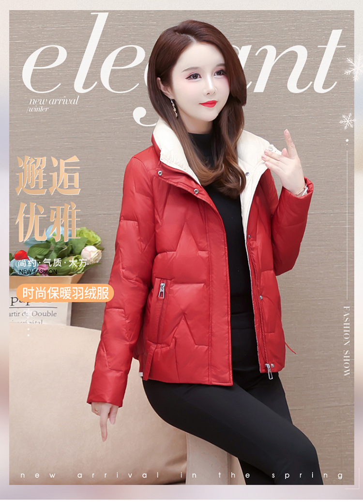 短款拼色时尚羽绒服,冬款小个子修身保暖长袖大码鸭绒外套QYM-CR-FY542-L