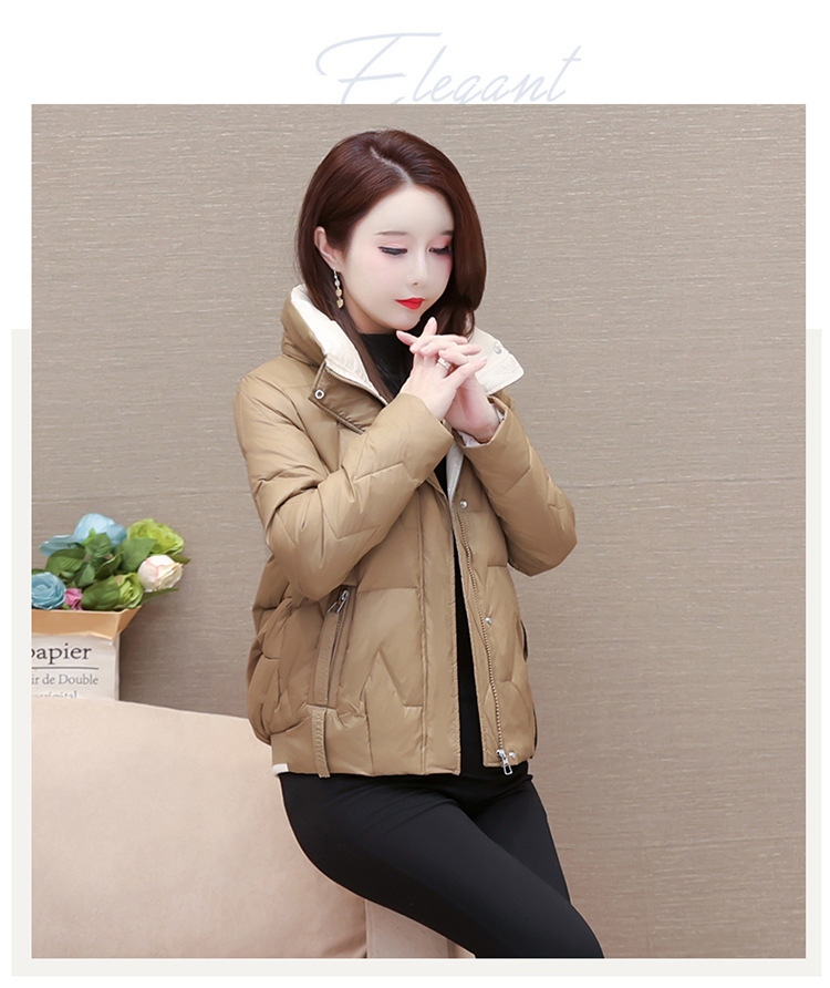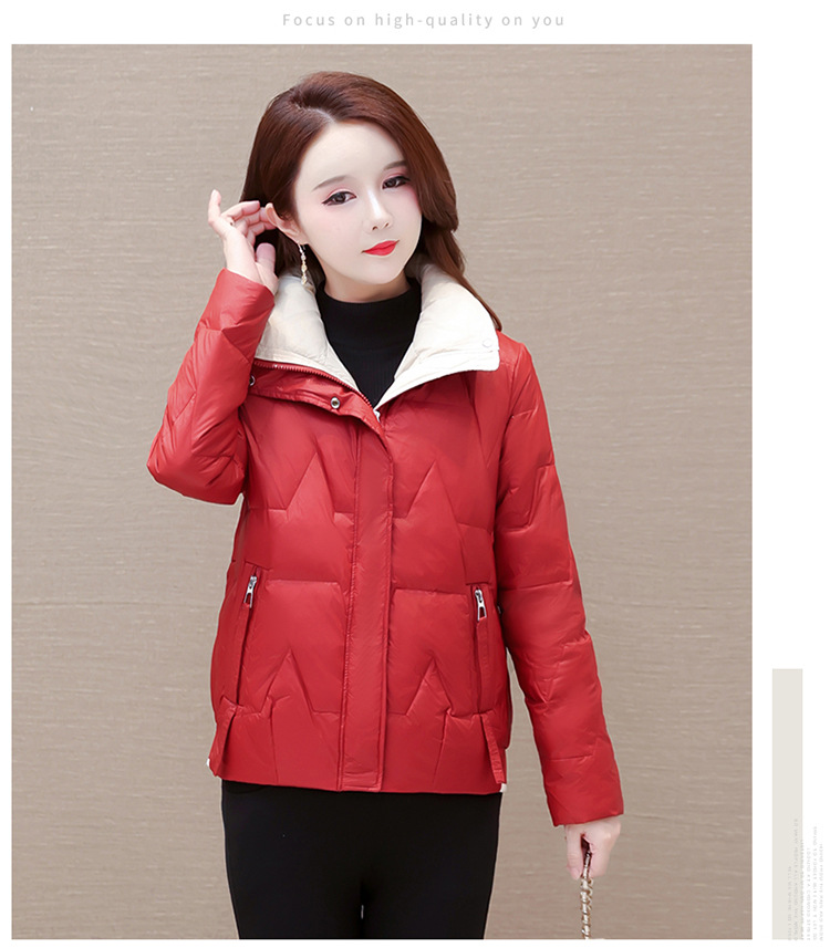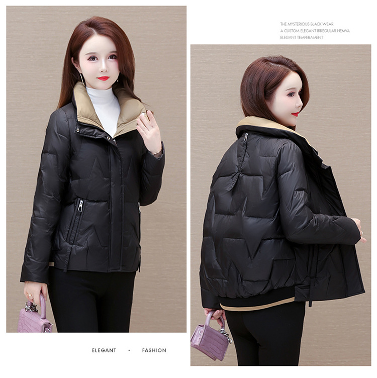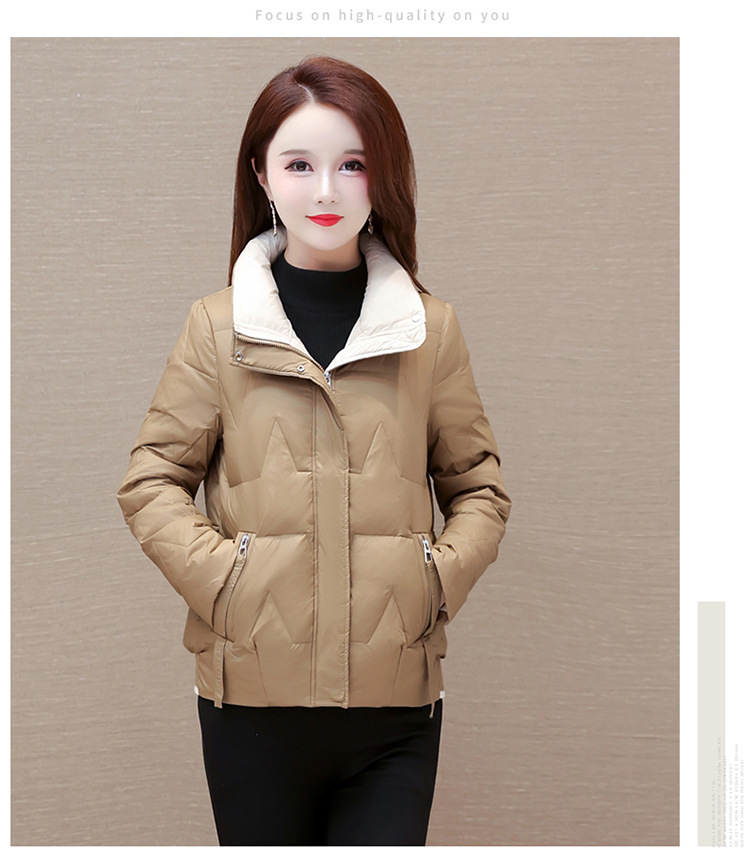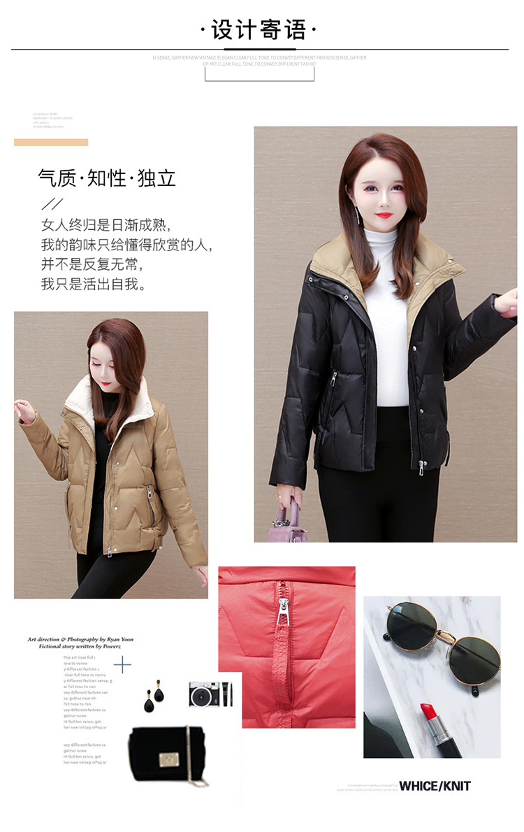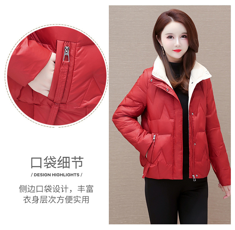 短款拼色时尚羽绒服,冬款小个子修身保暖长袖大码鸭绒外套QYM-CR-FY542-L