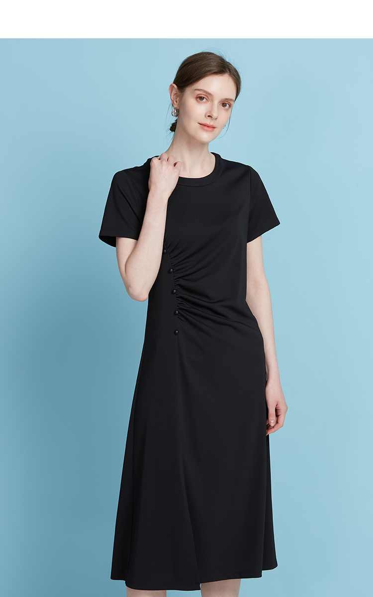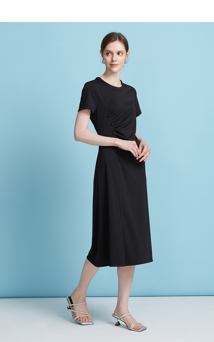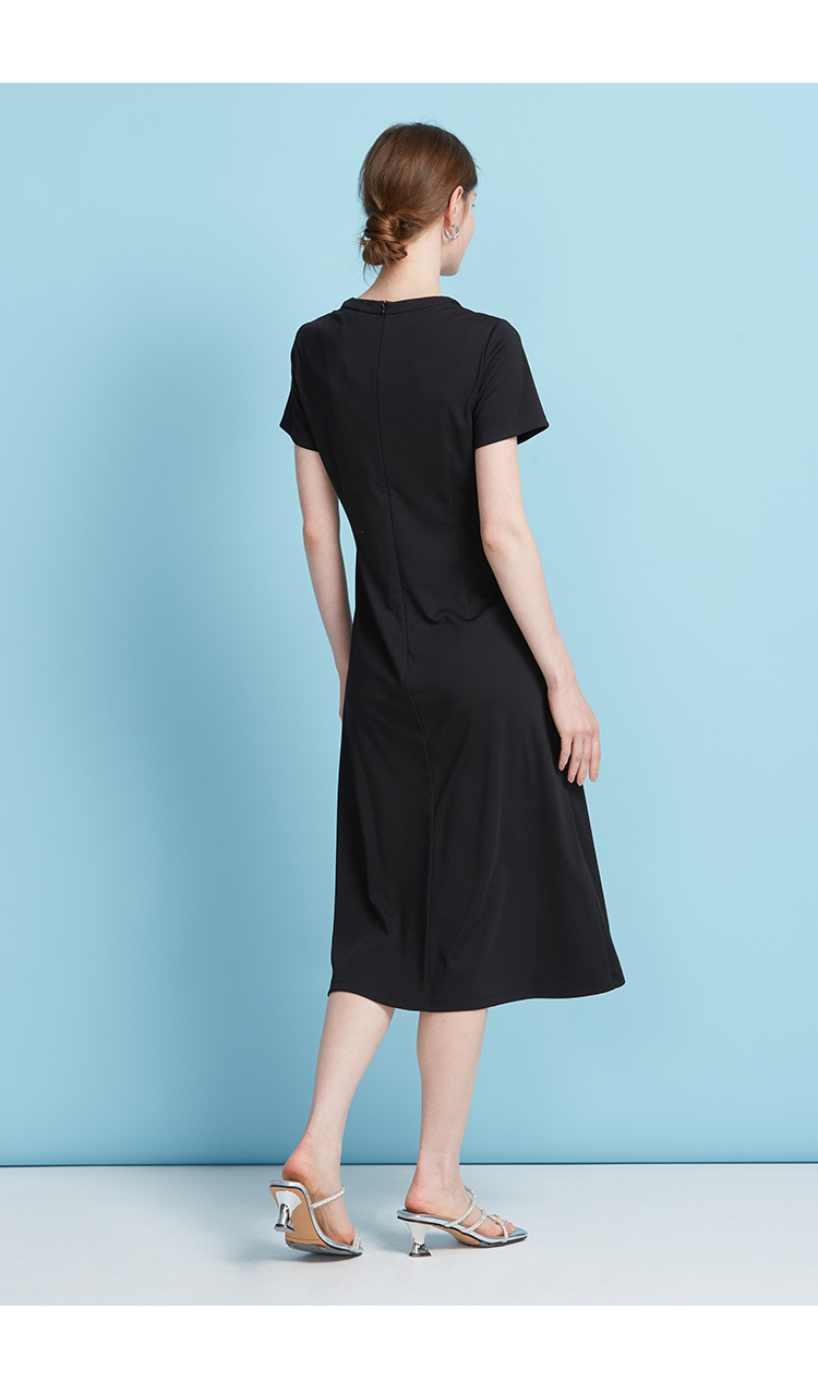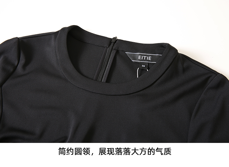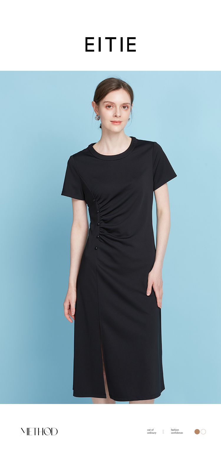 EITIE爱特爱夏季时尚纯色气质捏褶收腰显瘦法式优雅连衣裙7807578