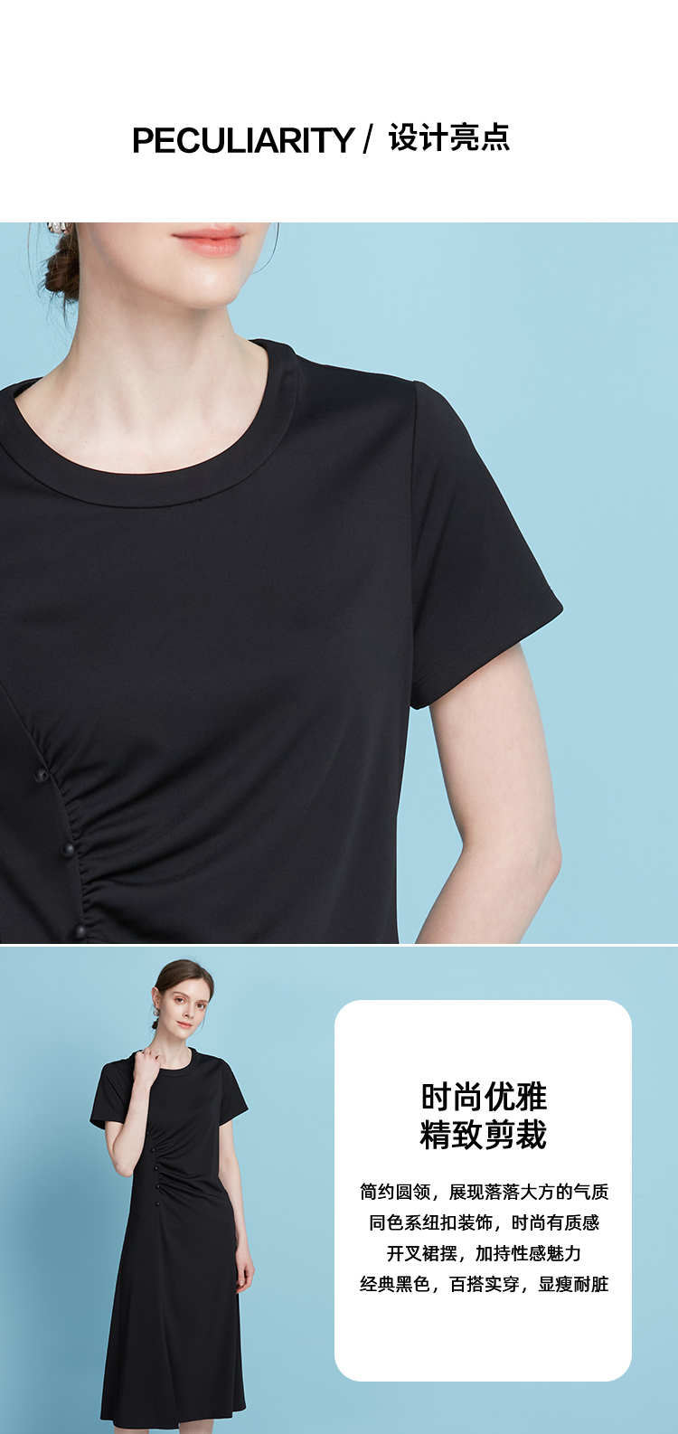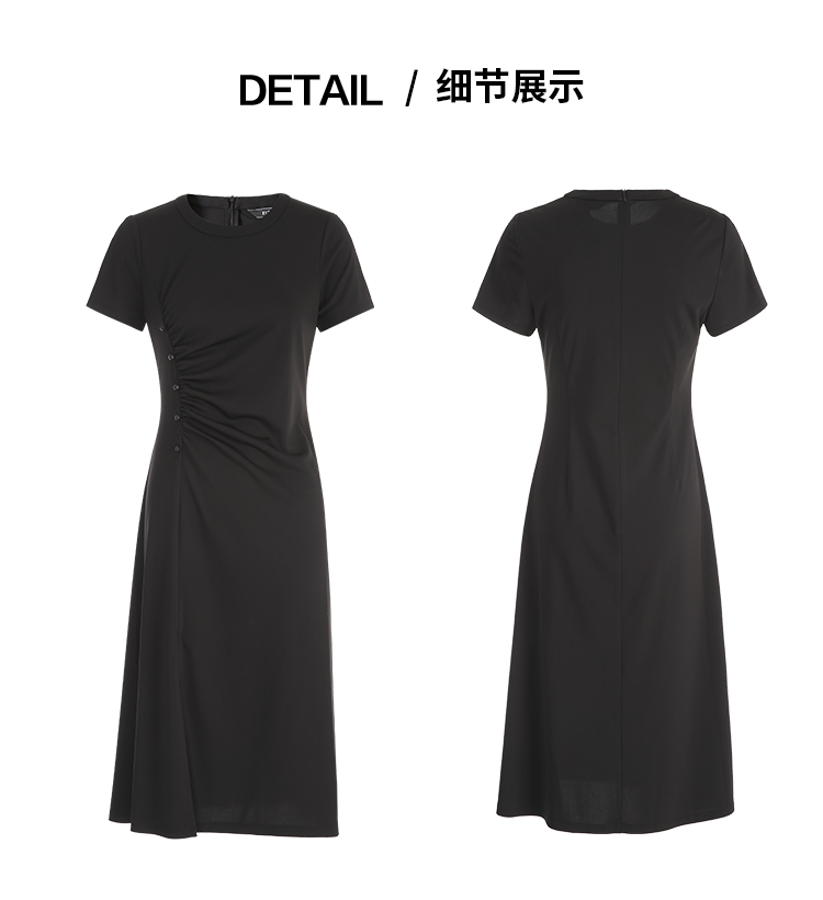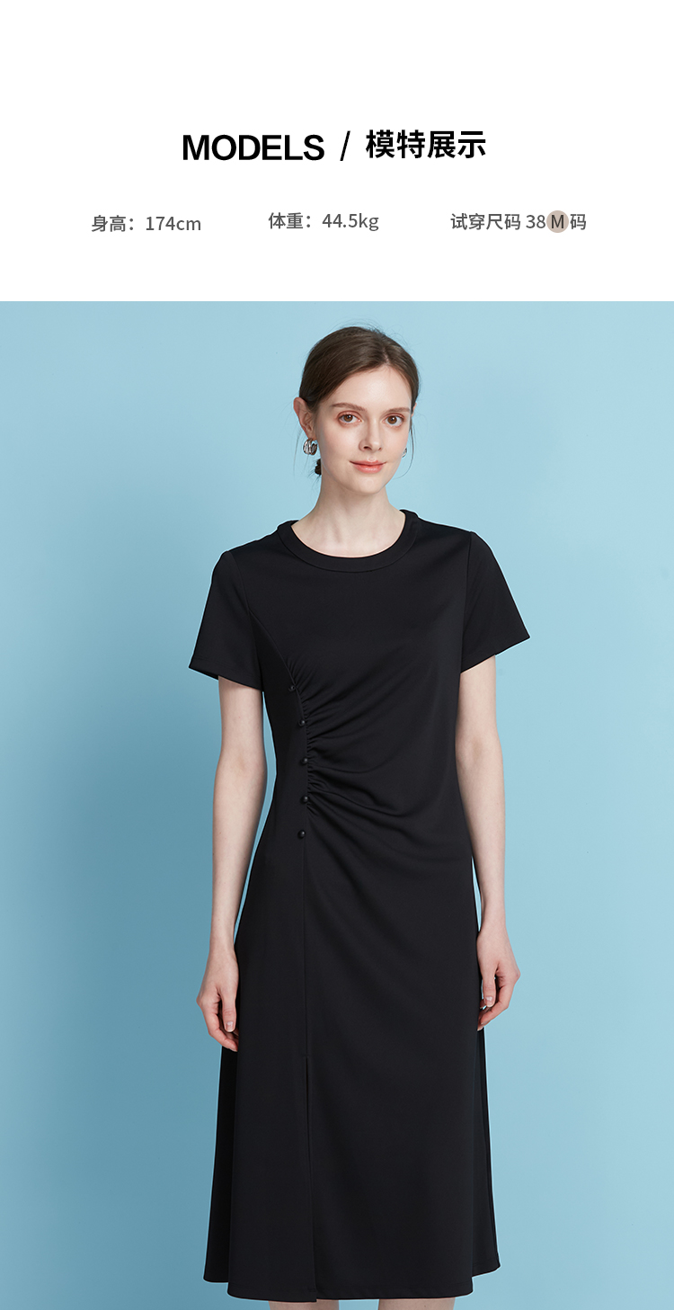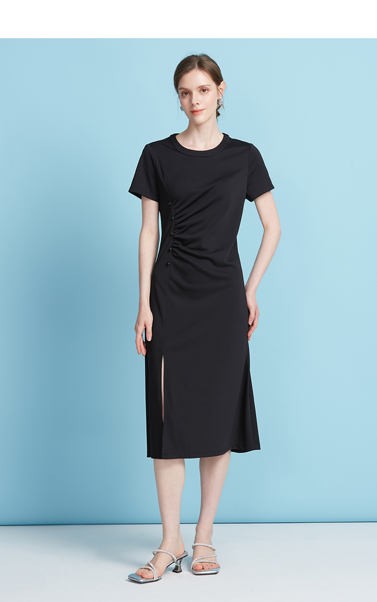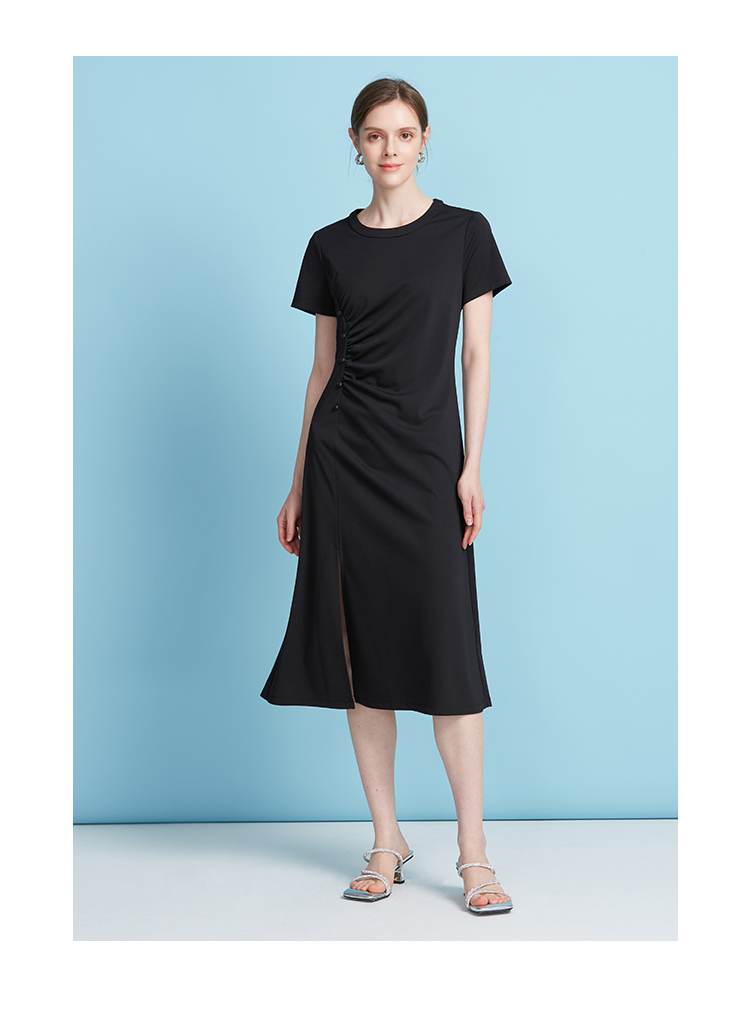EITIE爱特爱夏季时尚纯色气质捏褶收腰显瘦法式优雅连衣裙7807578