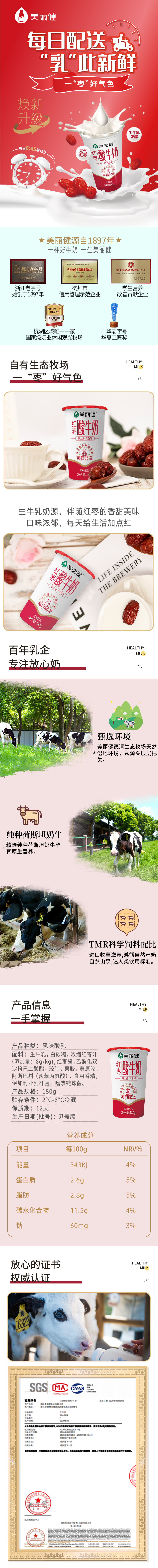 【限时9折】美丽健纸杯红枣酸牛奶180g/30天
