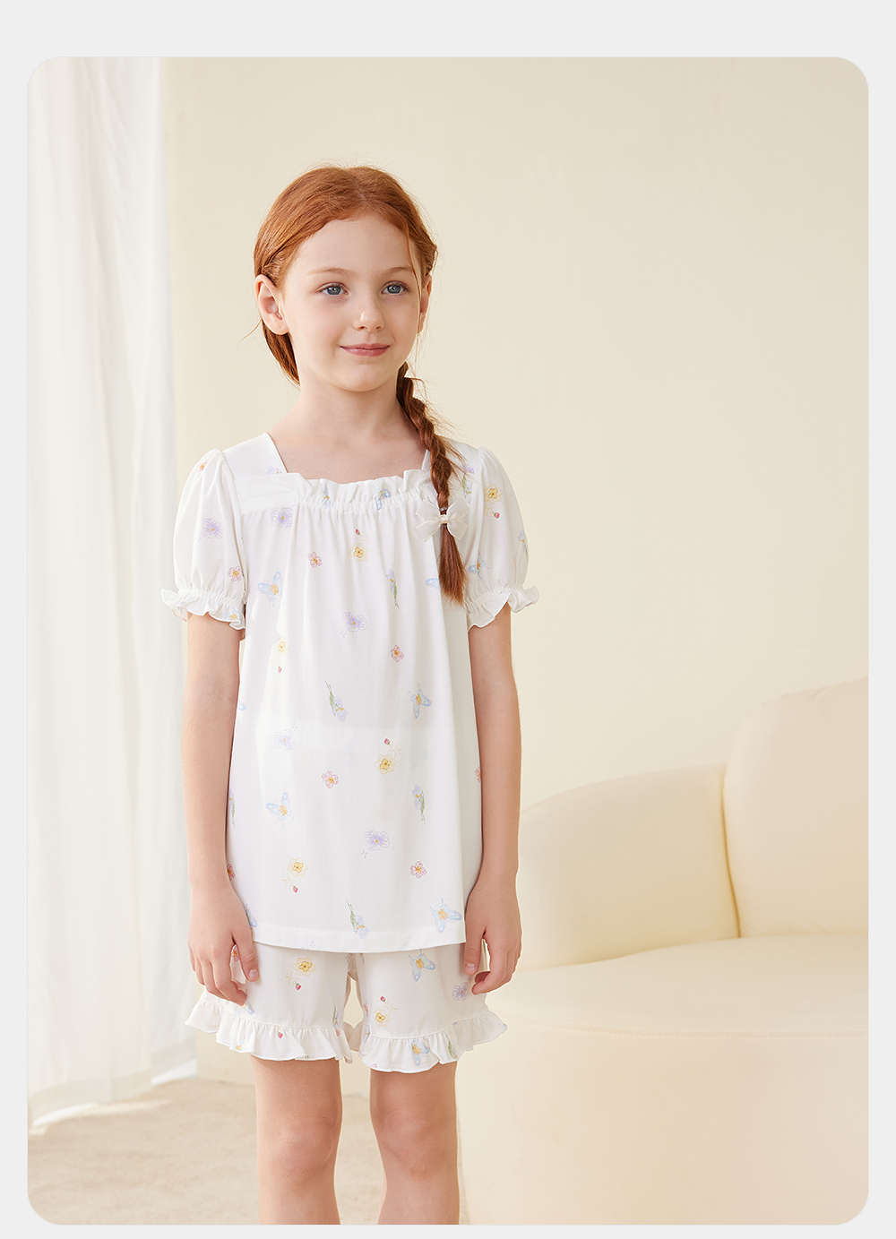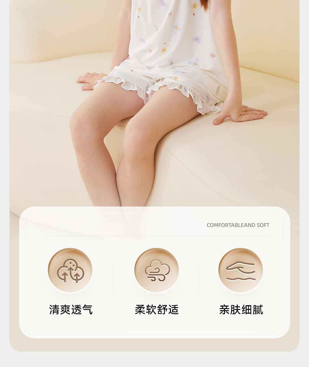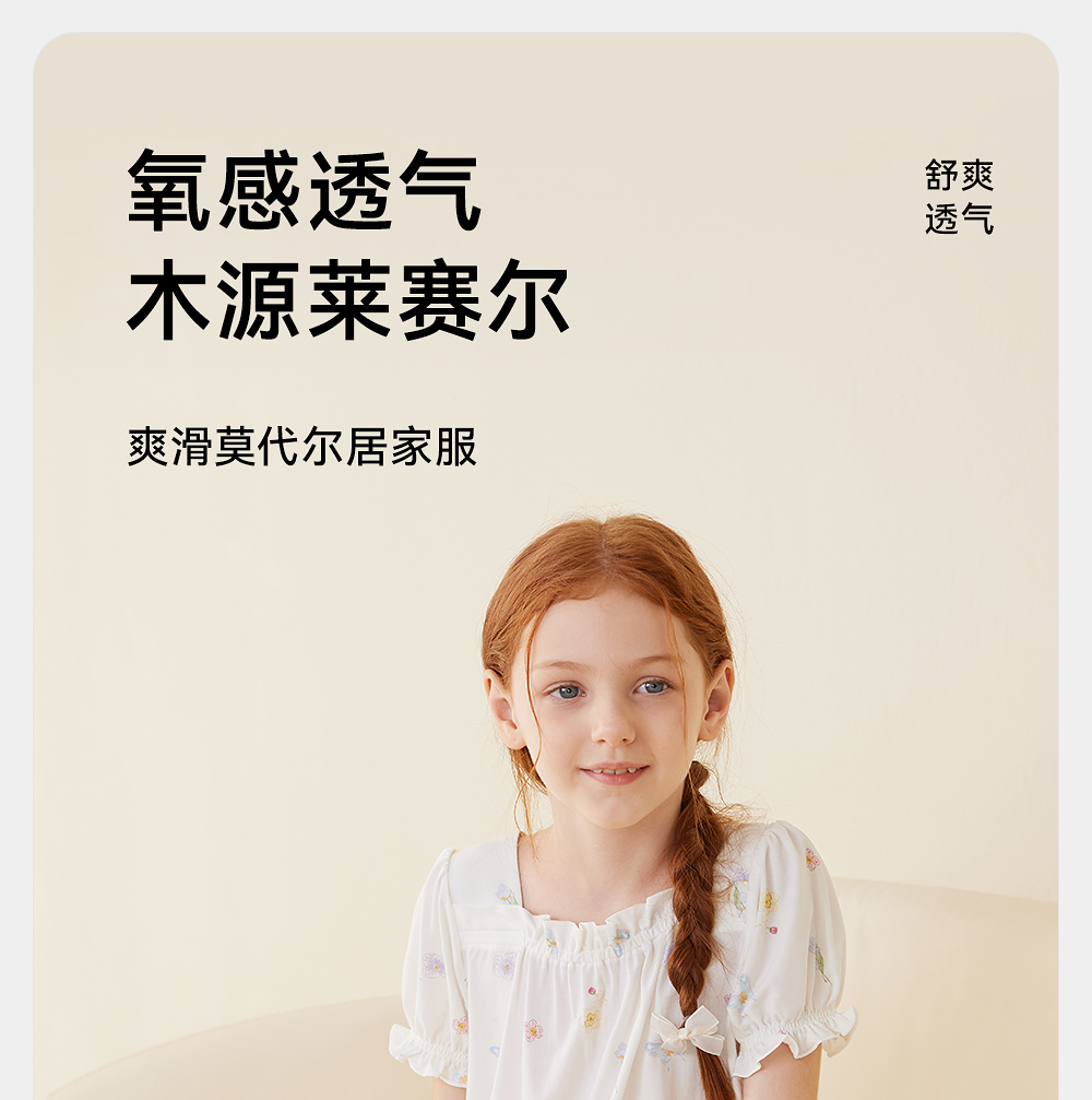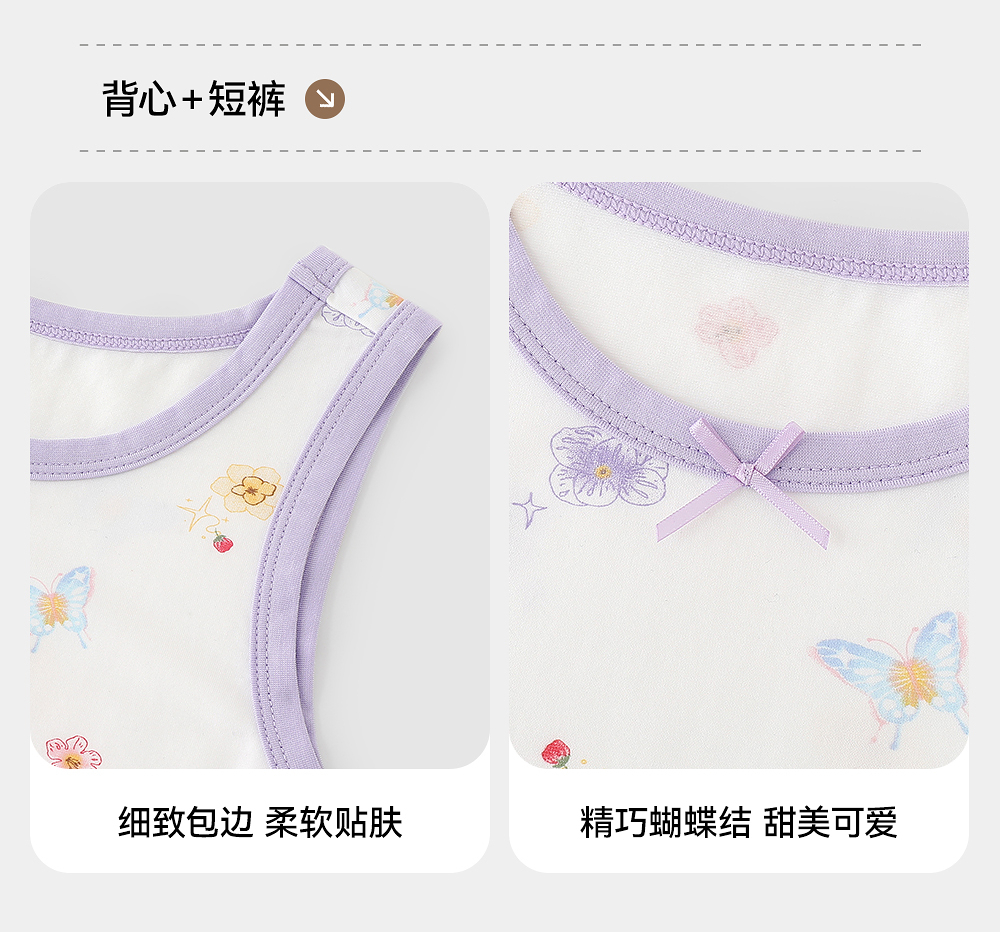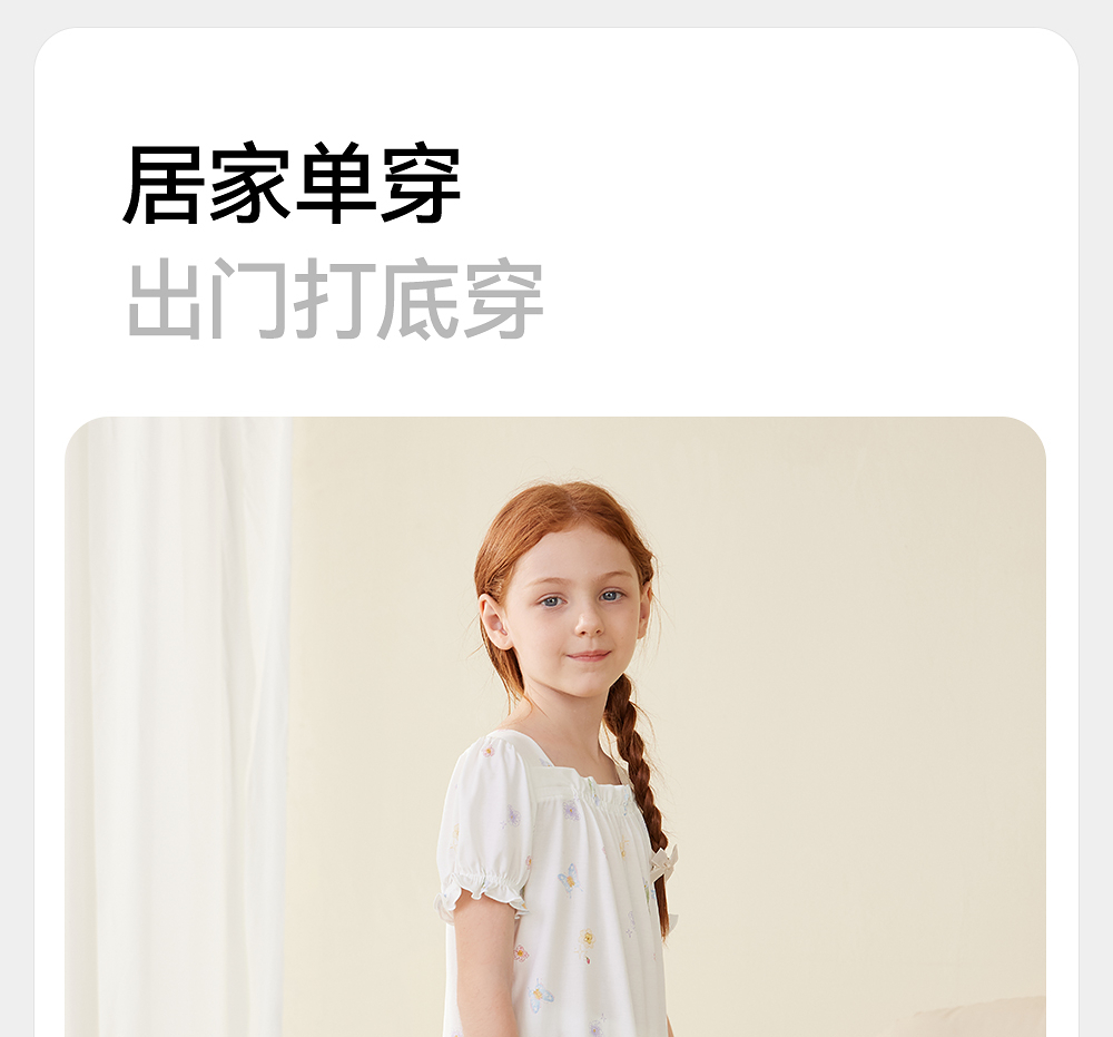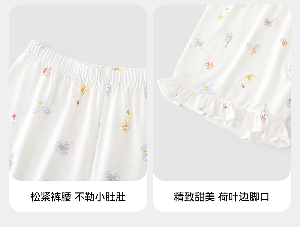 英氏儿童居家服夏季凉感透气女童睡衣中大童抗菌背心短裤睡衣套装