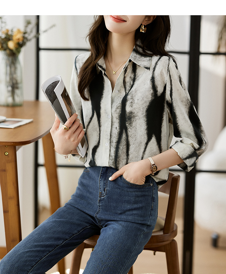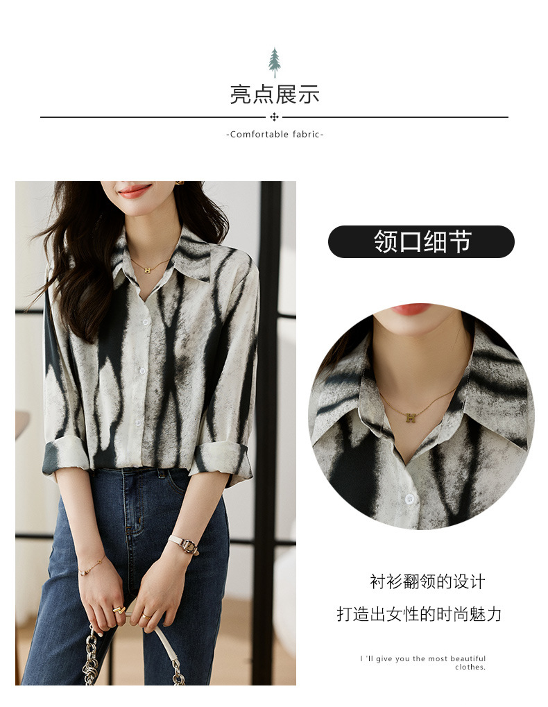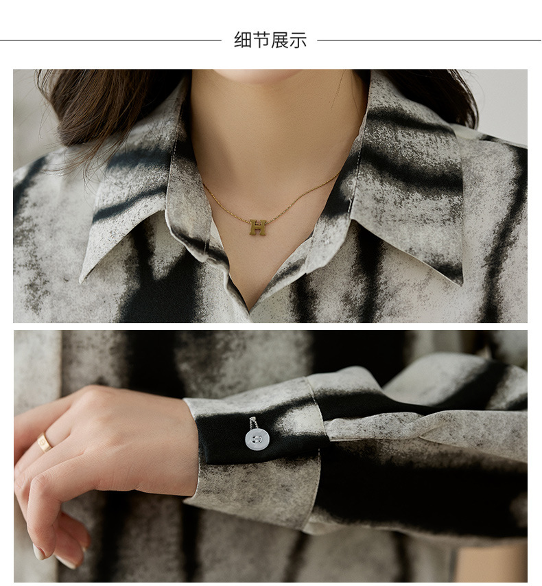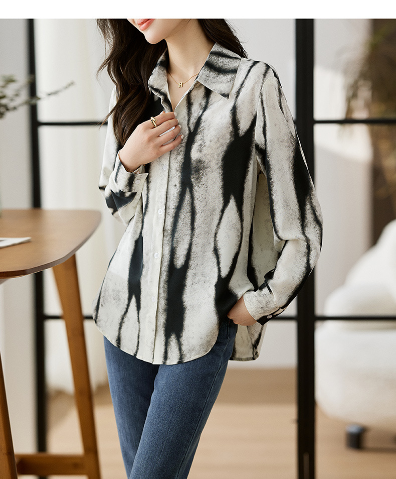 雀说混染印花衬衫新款时尚气质翻领设计感简约休闲减龄上衣AL256
