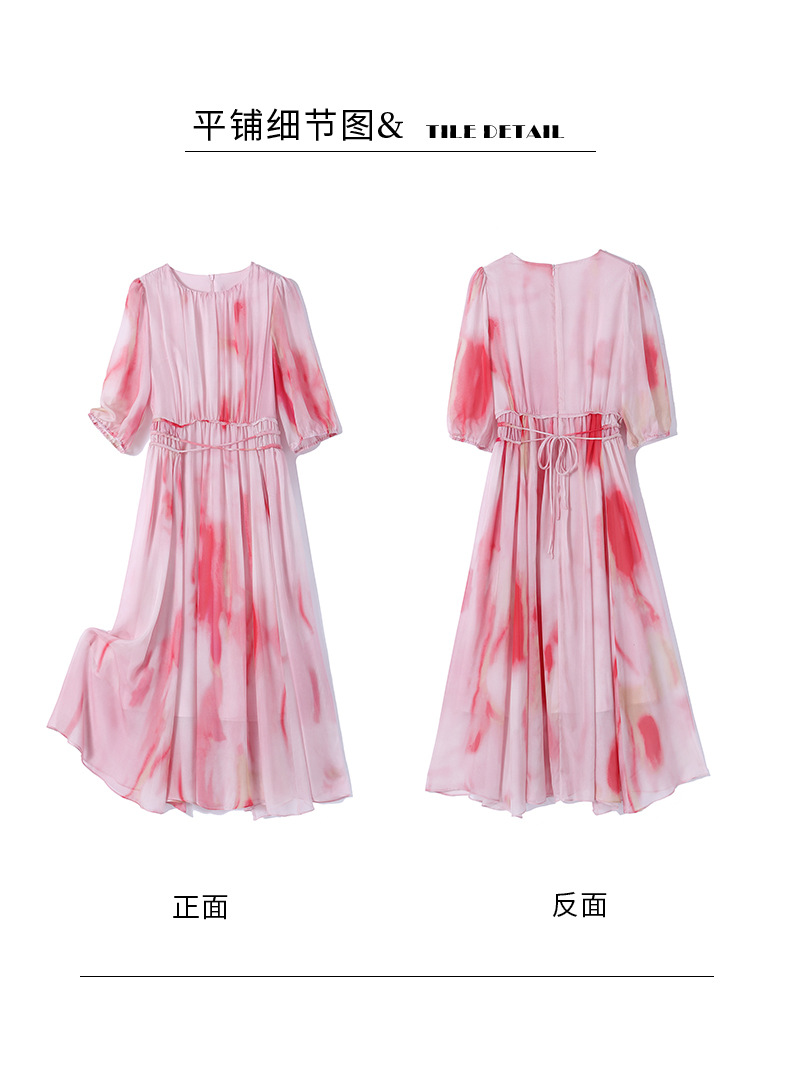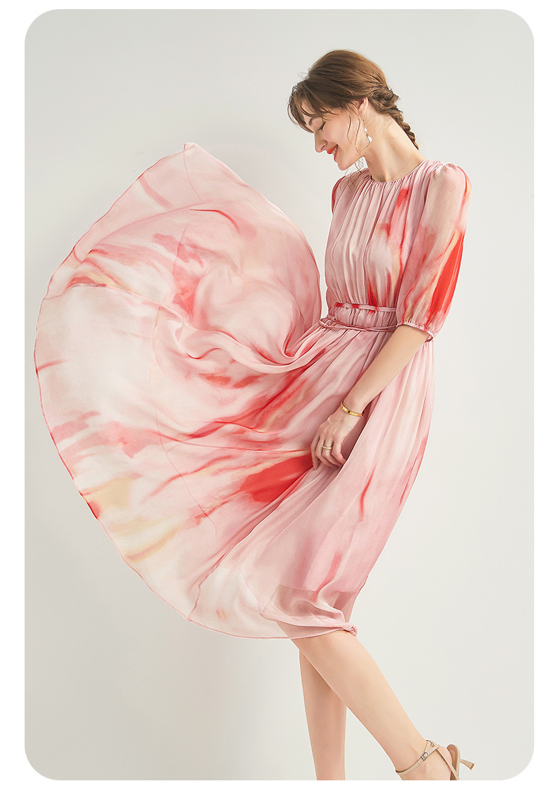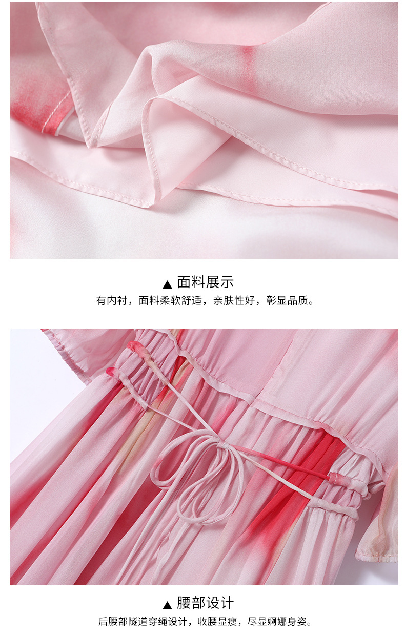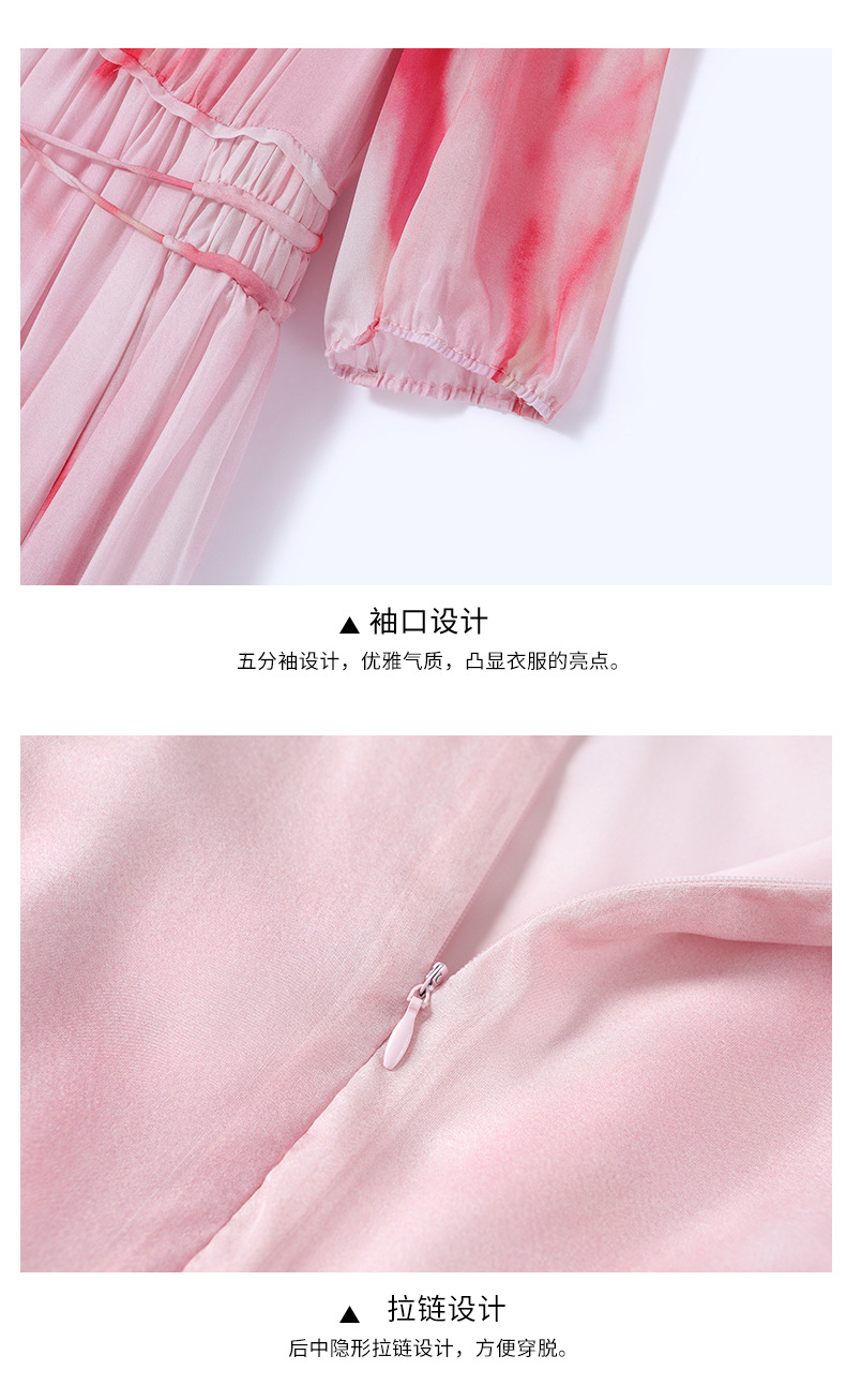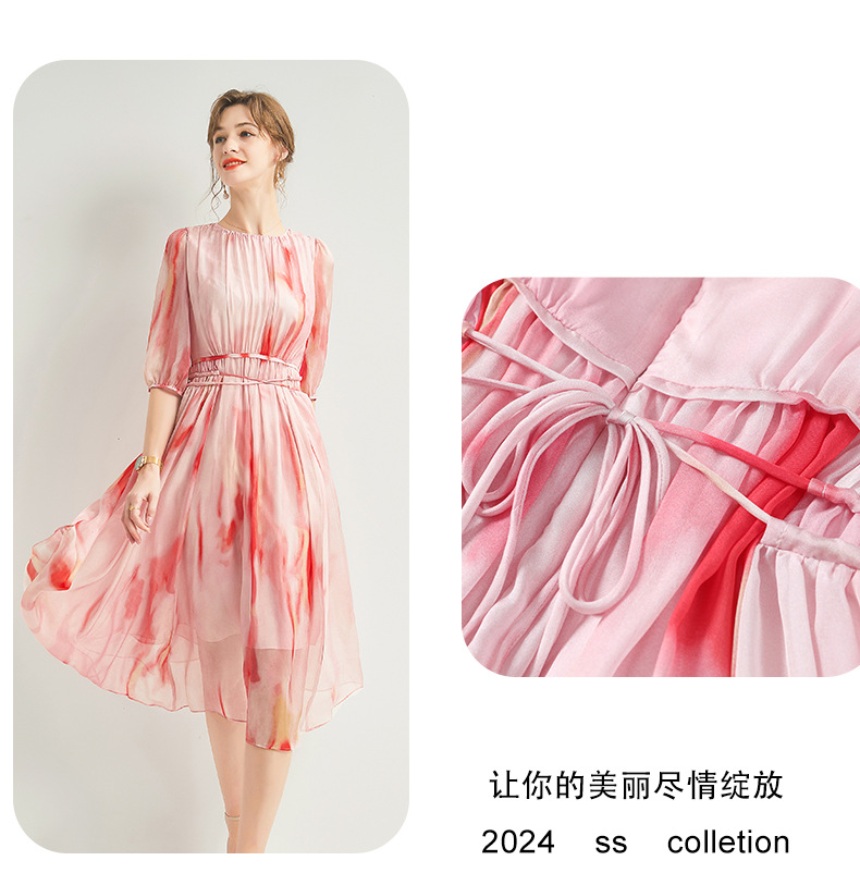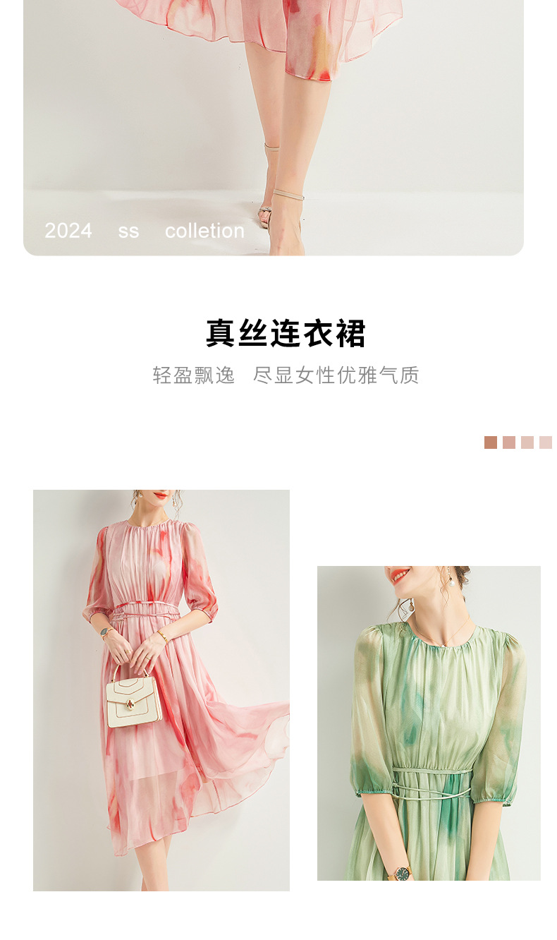 丁摩 真丝连衣裙优雅夏季女装高级感新款收腰气质时尚桑蚕丝女长裙5ZF-065