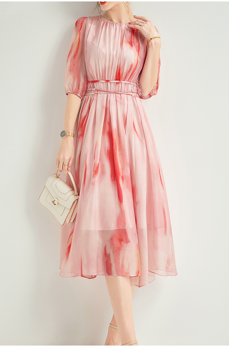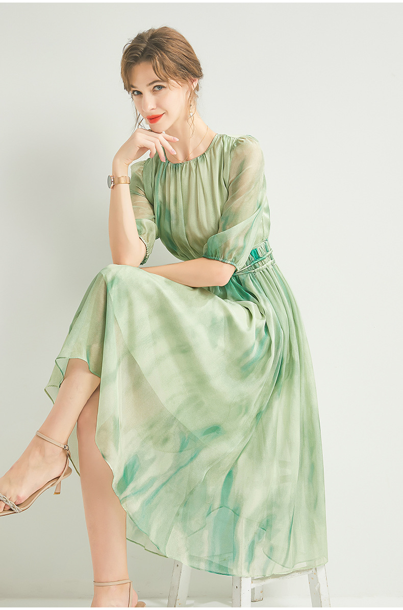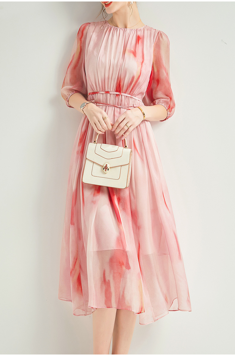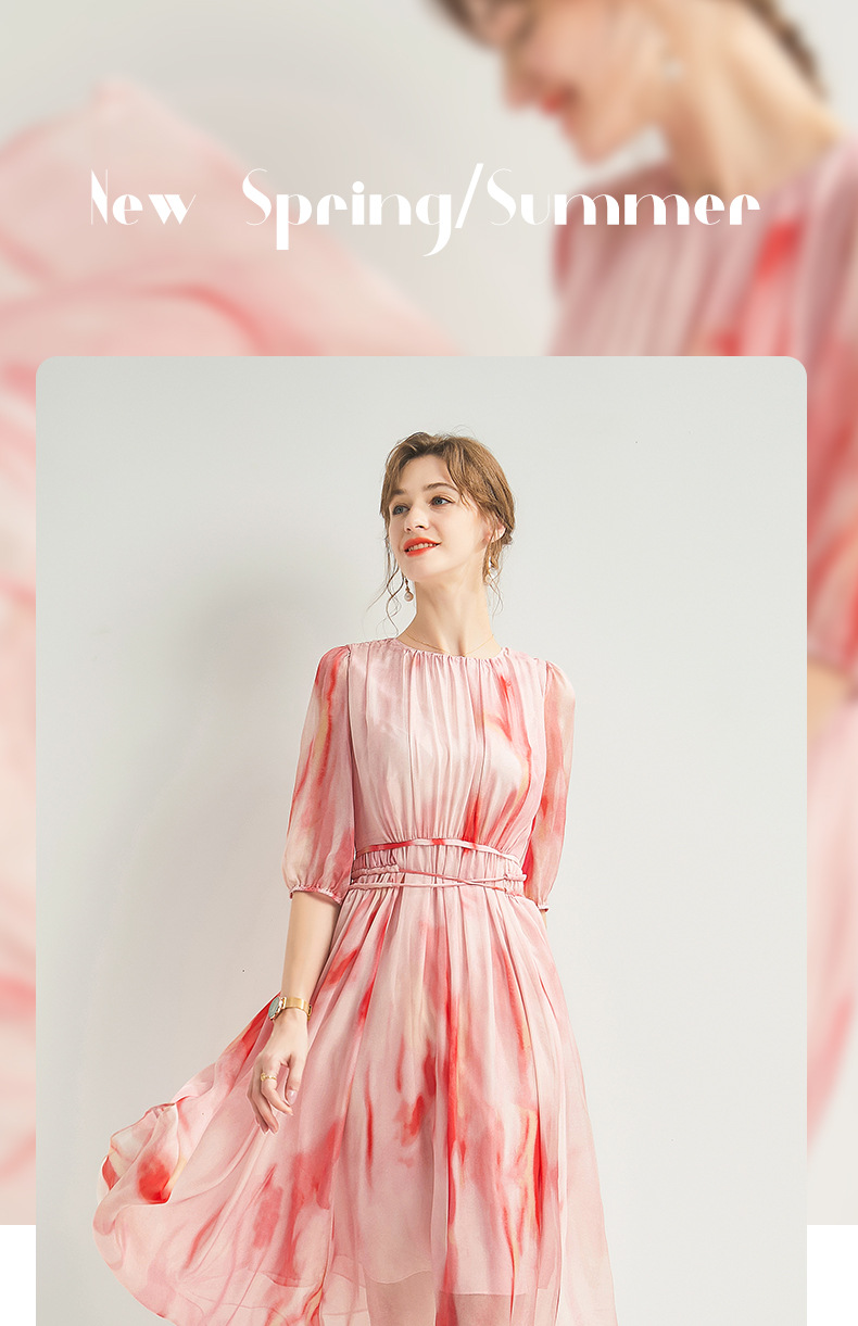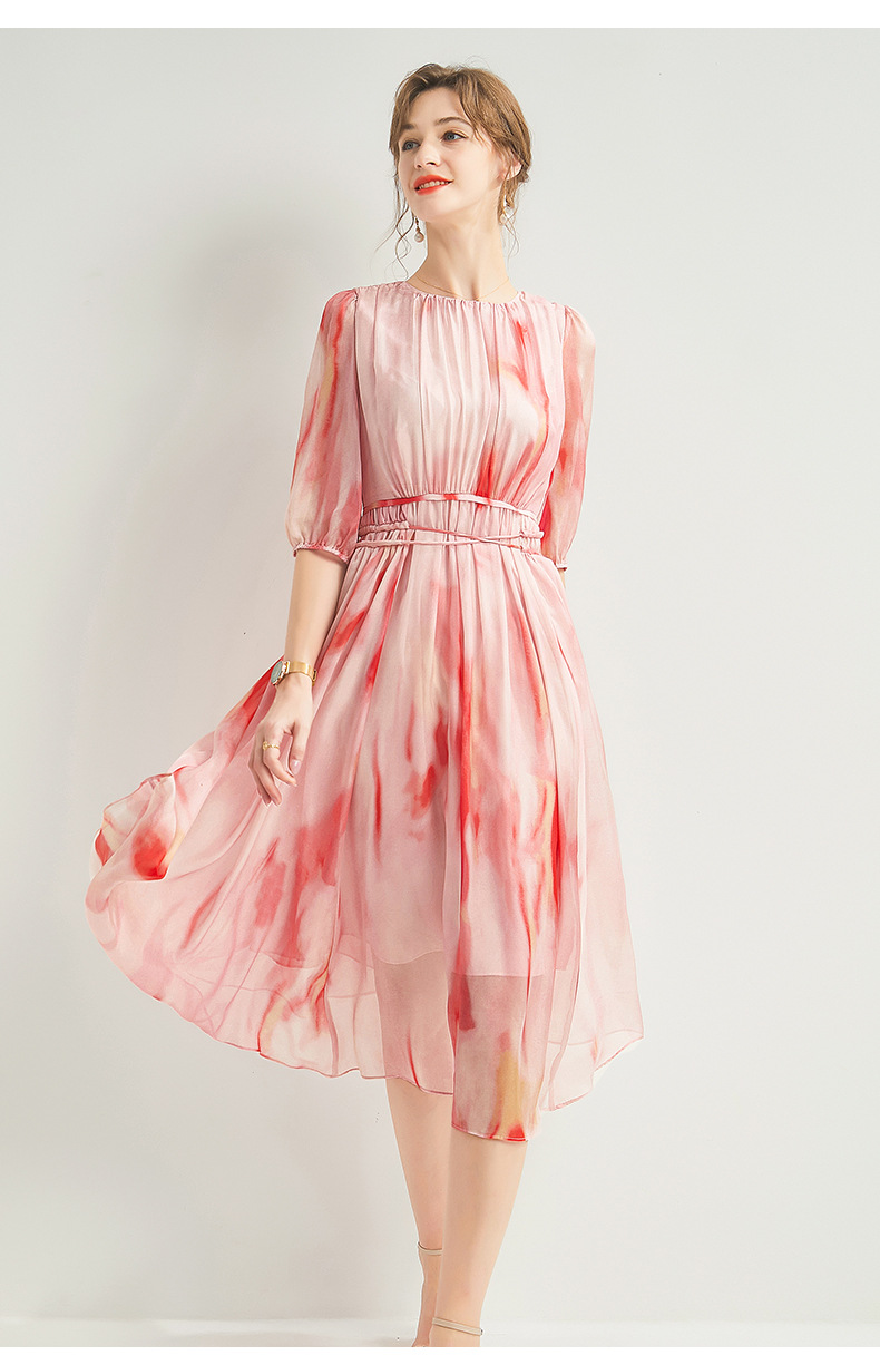 丁摩 真丝连衣裙优雅夏季女装高级感新款收腰气质时尚桑蚕丝女长裙5ZF-065