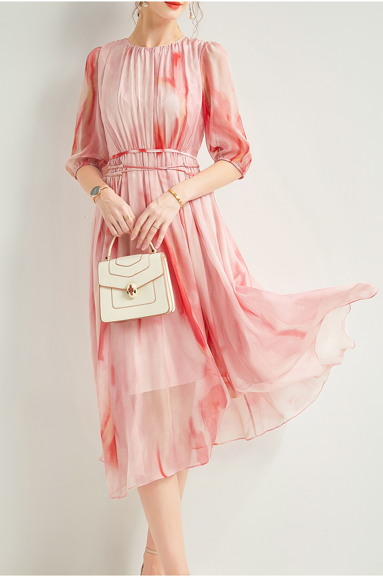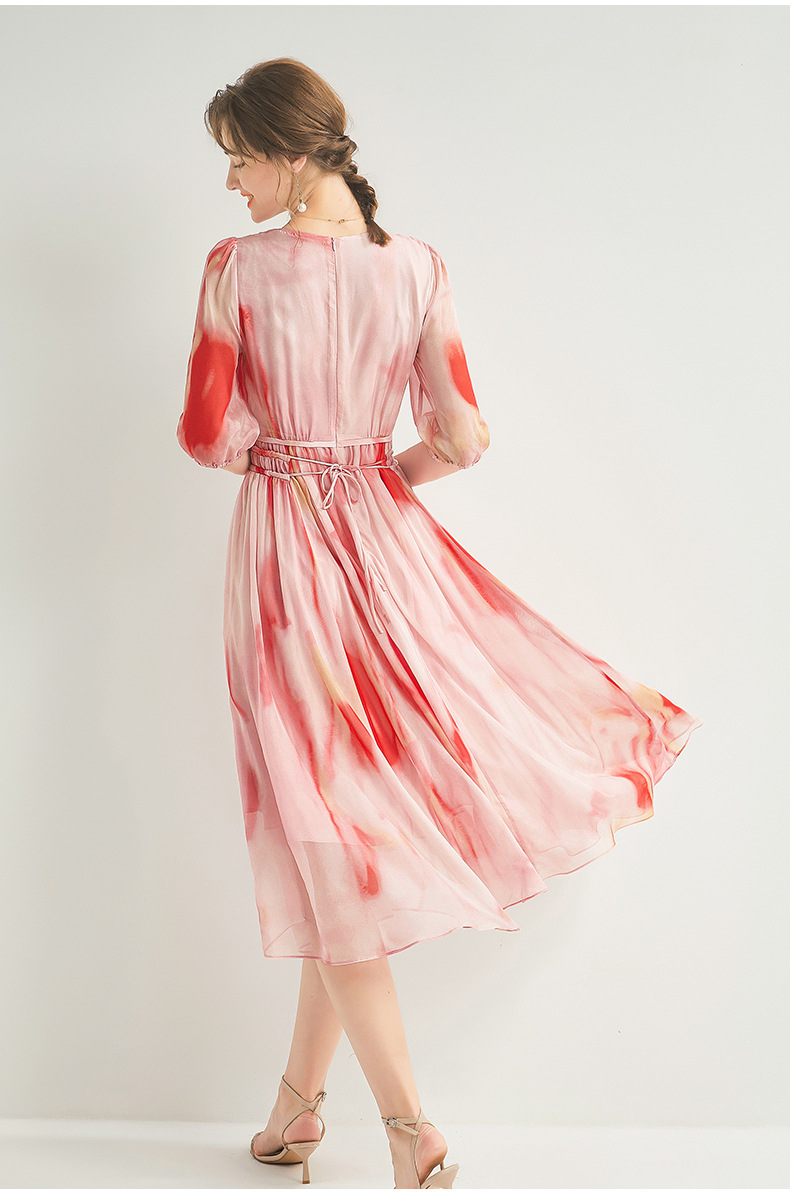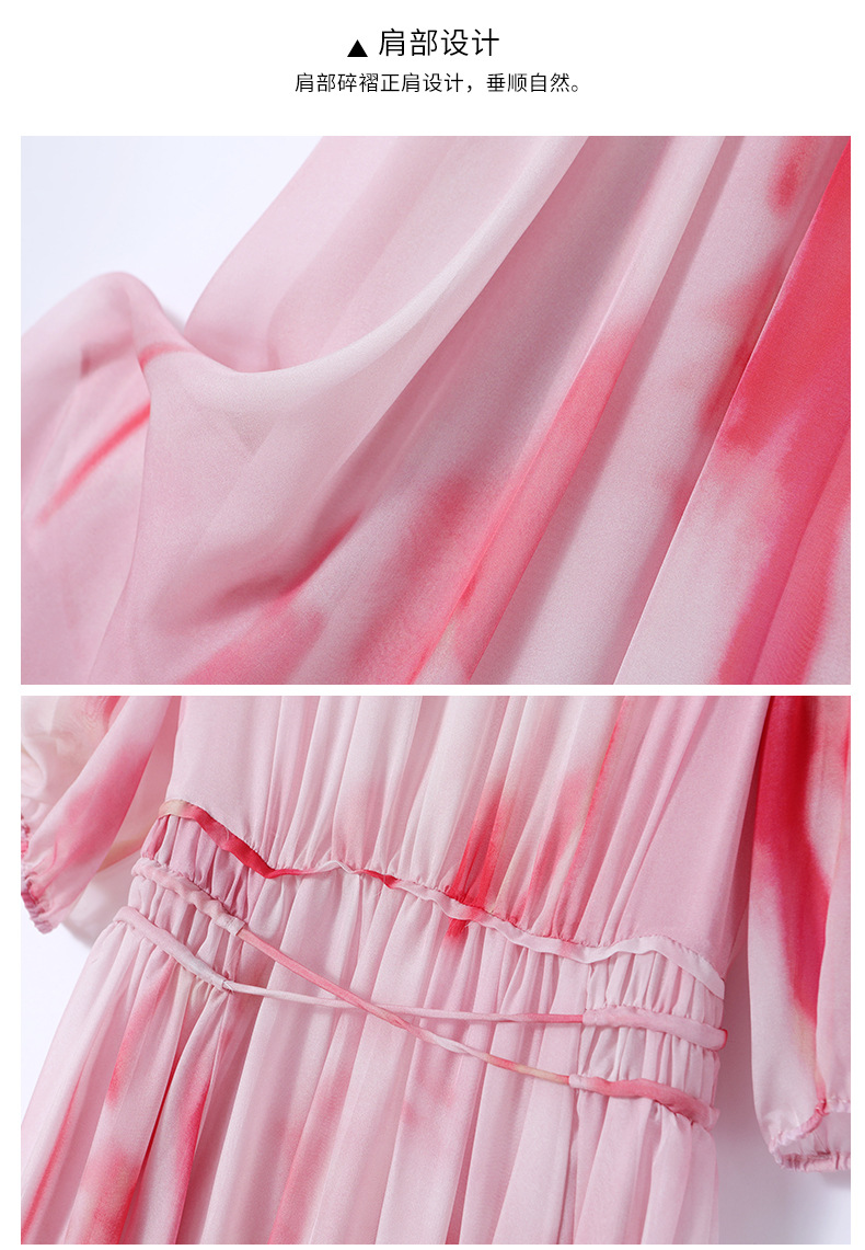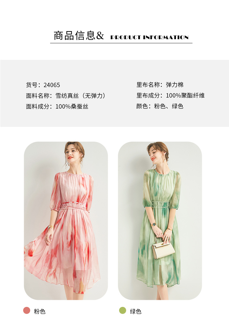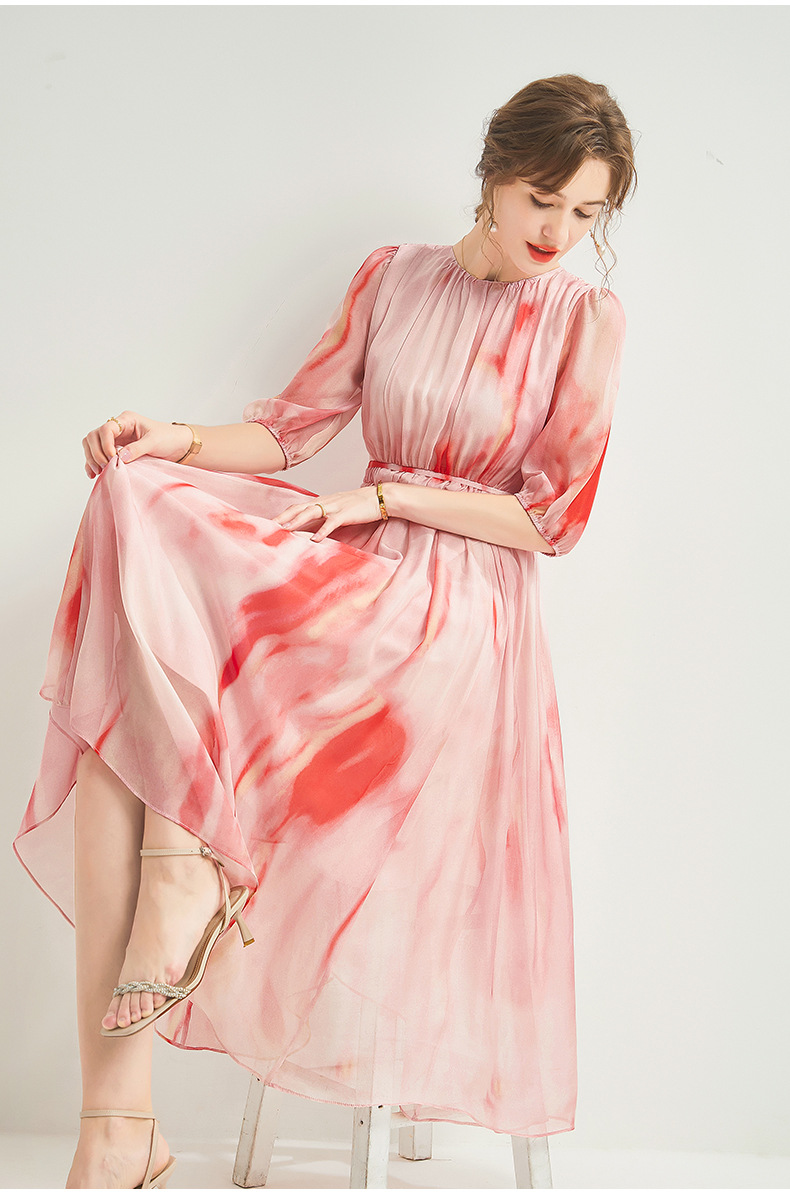 丁摩 真丝连衣裙优雅夏季女装高级感新款收腰气质时尚桑蚕丝女长裙5ZF-065