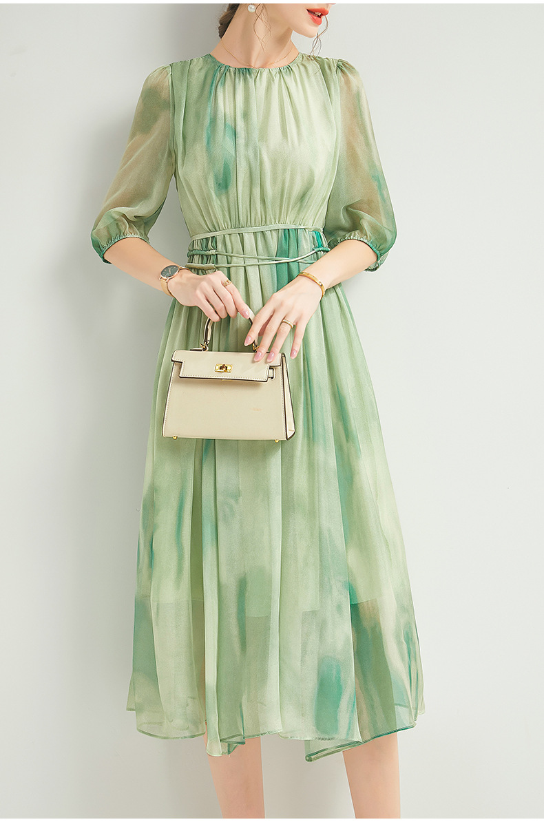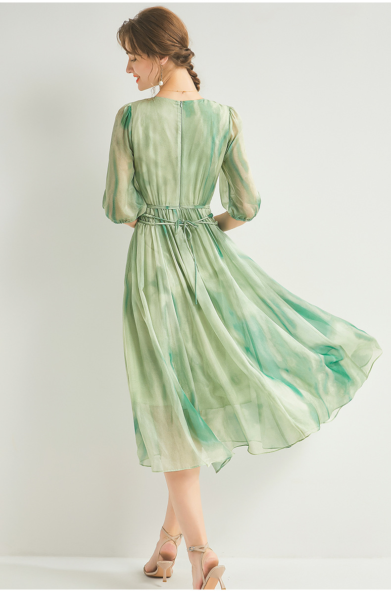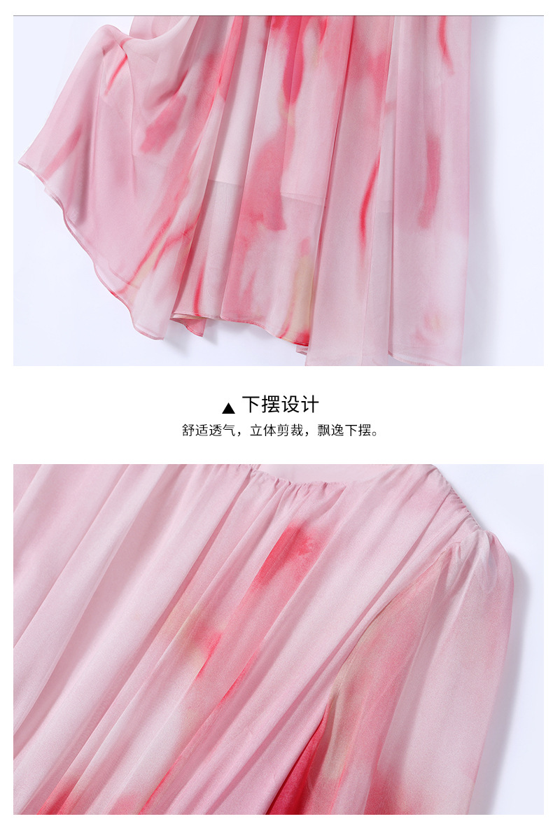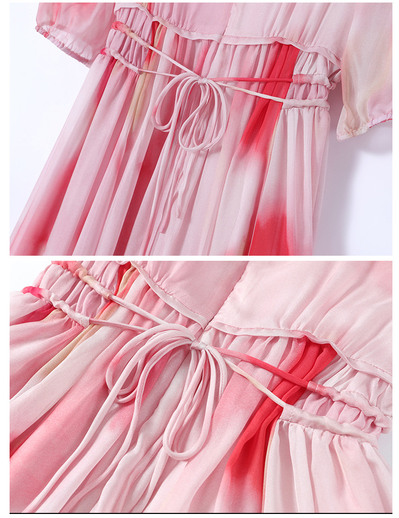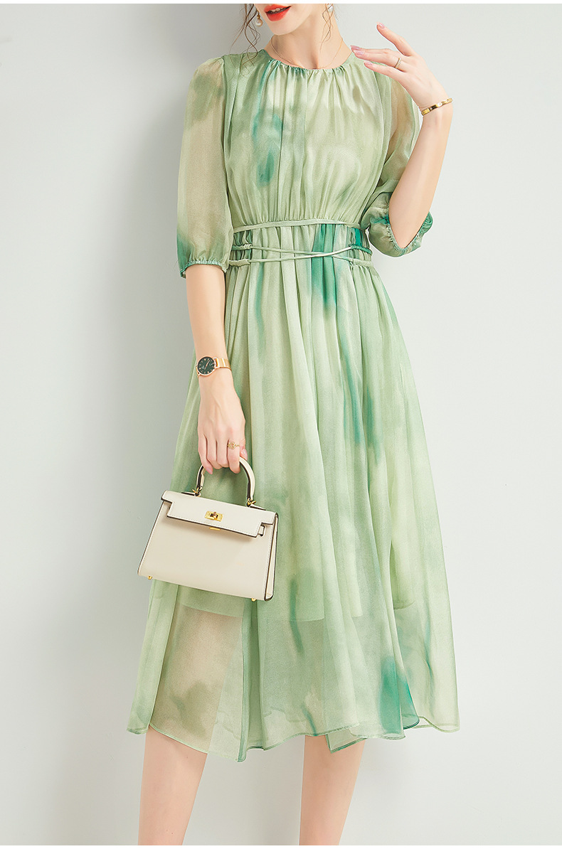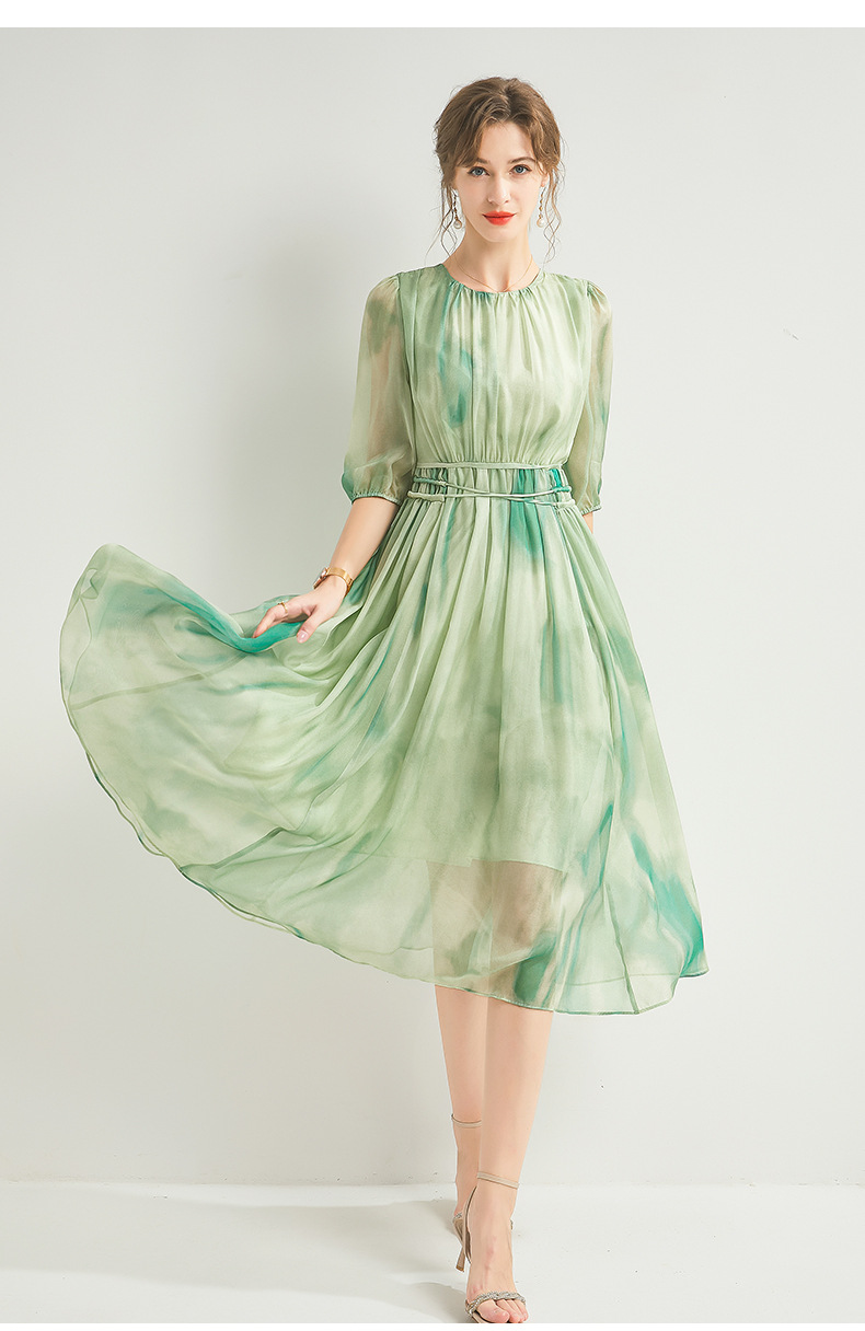 丁摩 真丝连衣裙优雅夏季女装高级感新款收腰气质时尚桑蚕丝女长裙5ZF-065