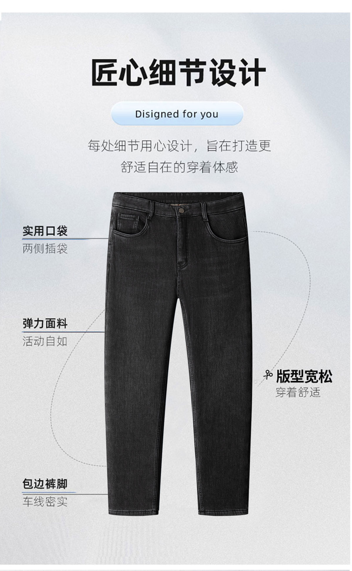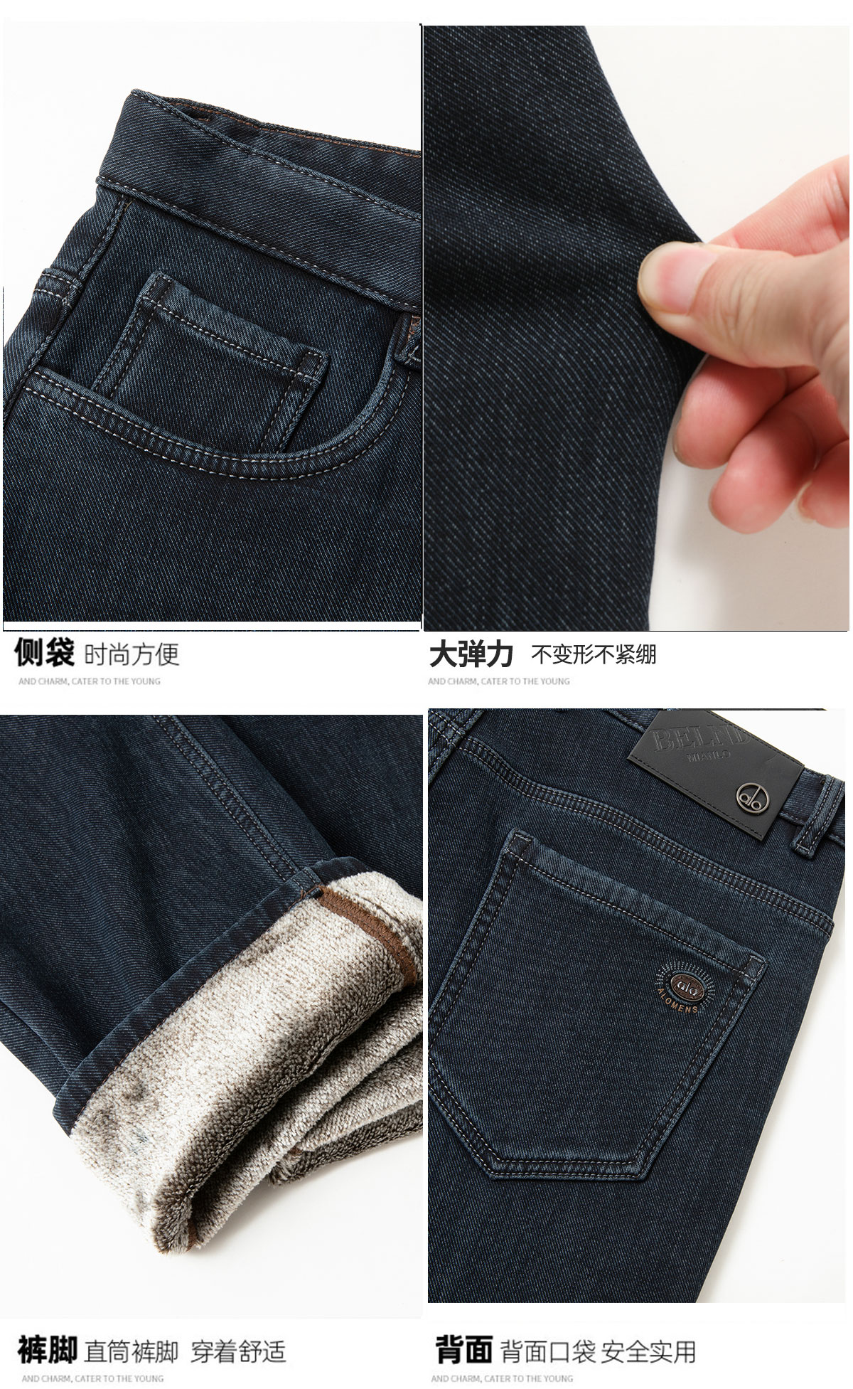 【DPS】大依优型大码男装冬季加绒牛仔裤美式复古弹力宽松直筒棉质长裤