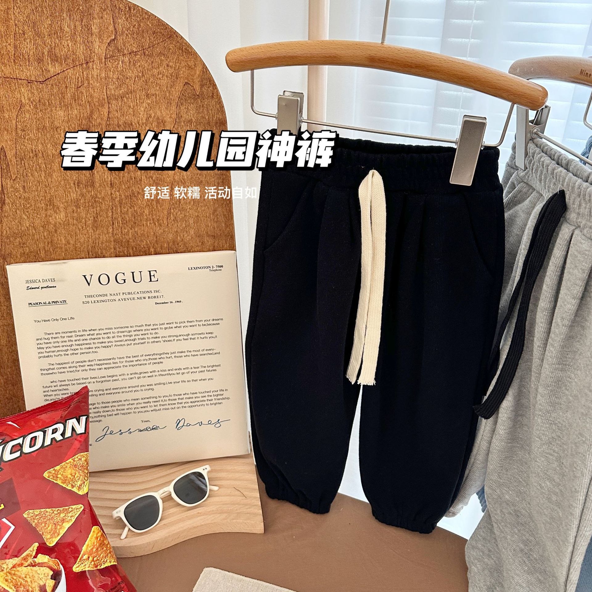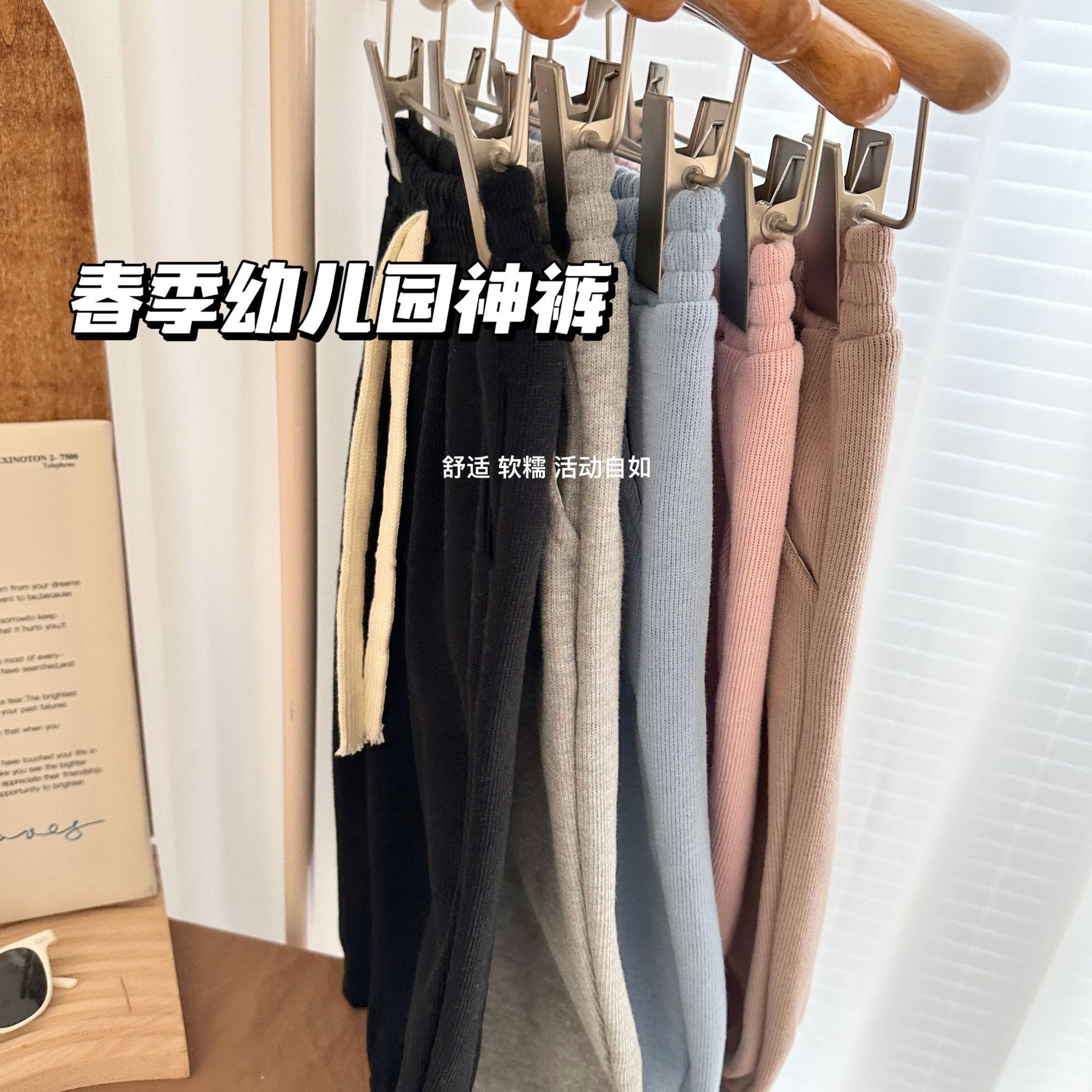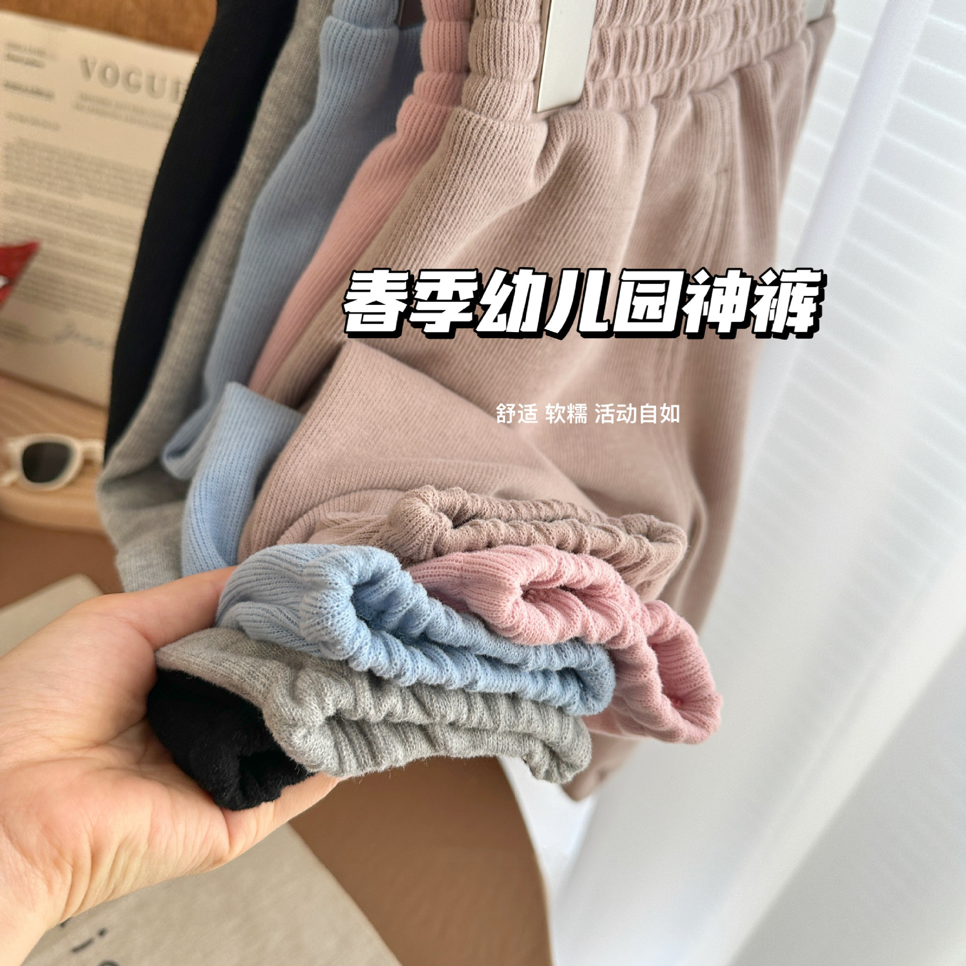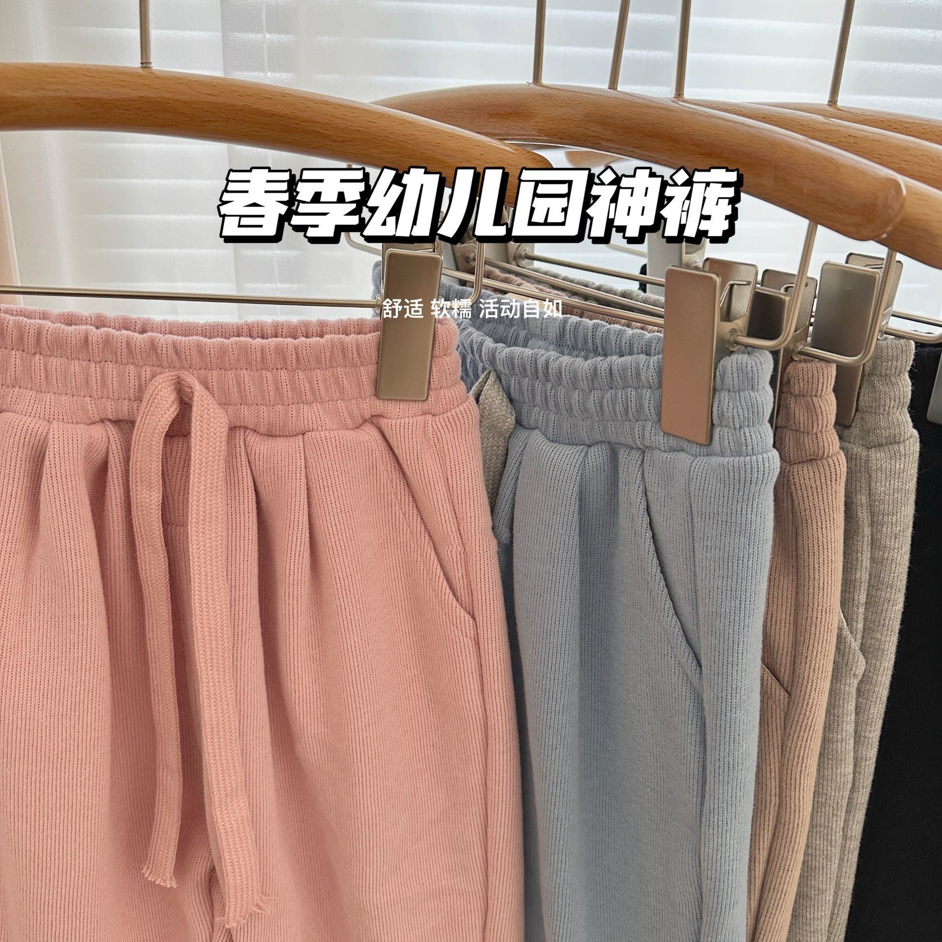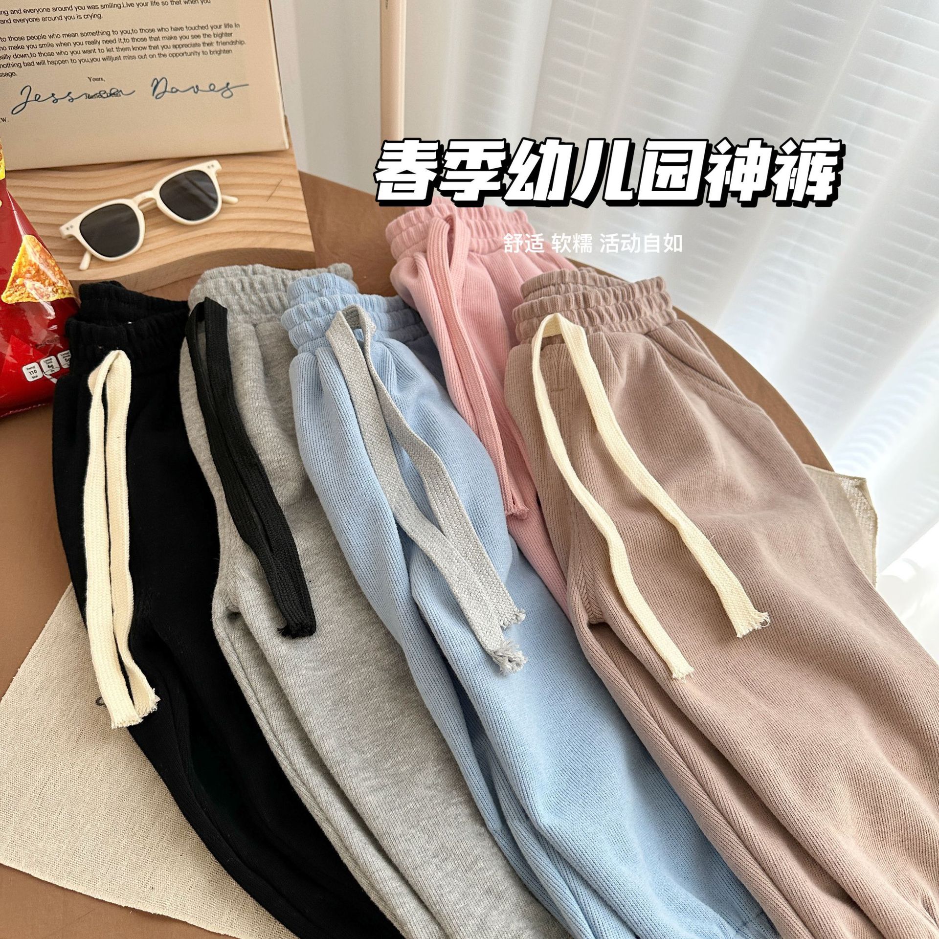 【春季幼儿园神裤!纯色云朵绒休闲裤】儿童裤子2023春季纯色韩版云朵绒休闲裤柔软宝宝外传裤子男女童裤