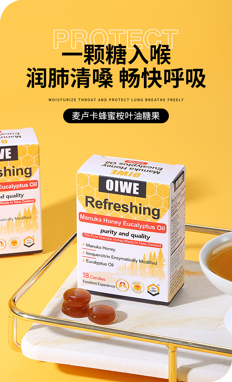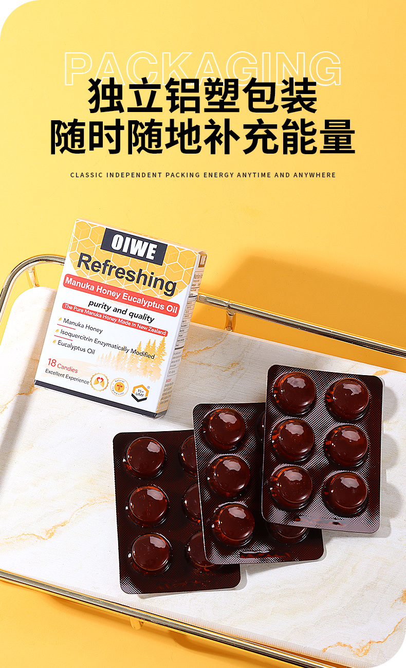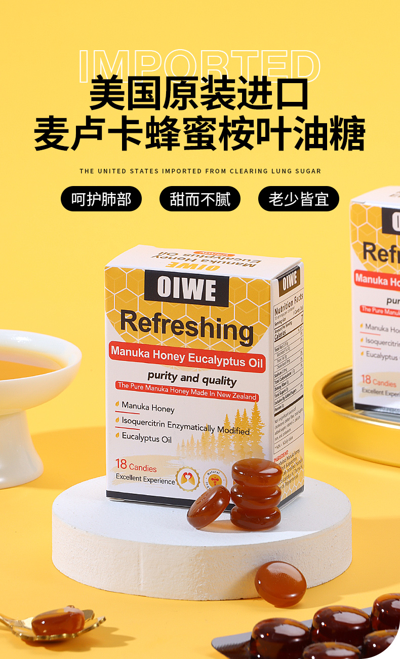 【买4送3】美国OIWE麦卢卡蜂蜜桉叶油糖果多重植物精华呵护肺健康36g/盒