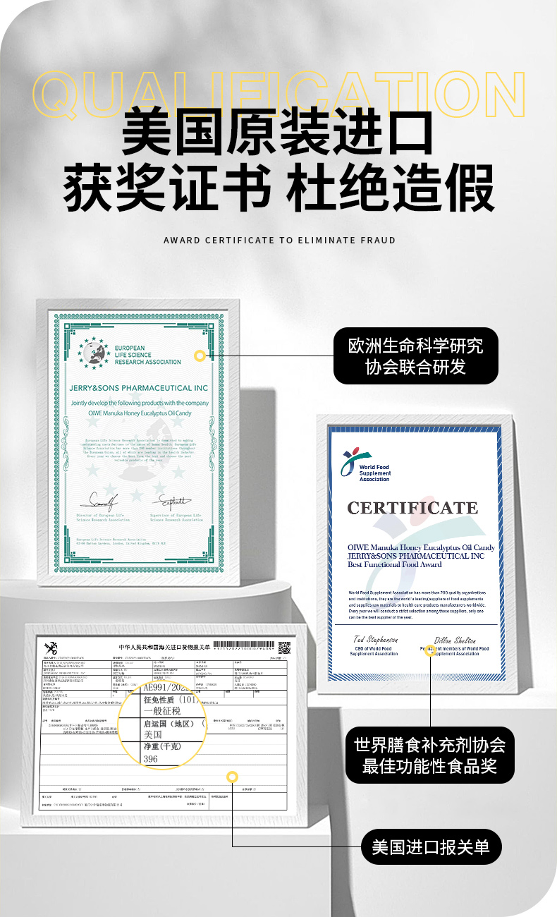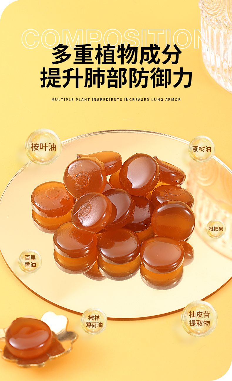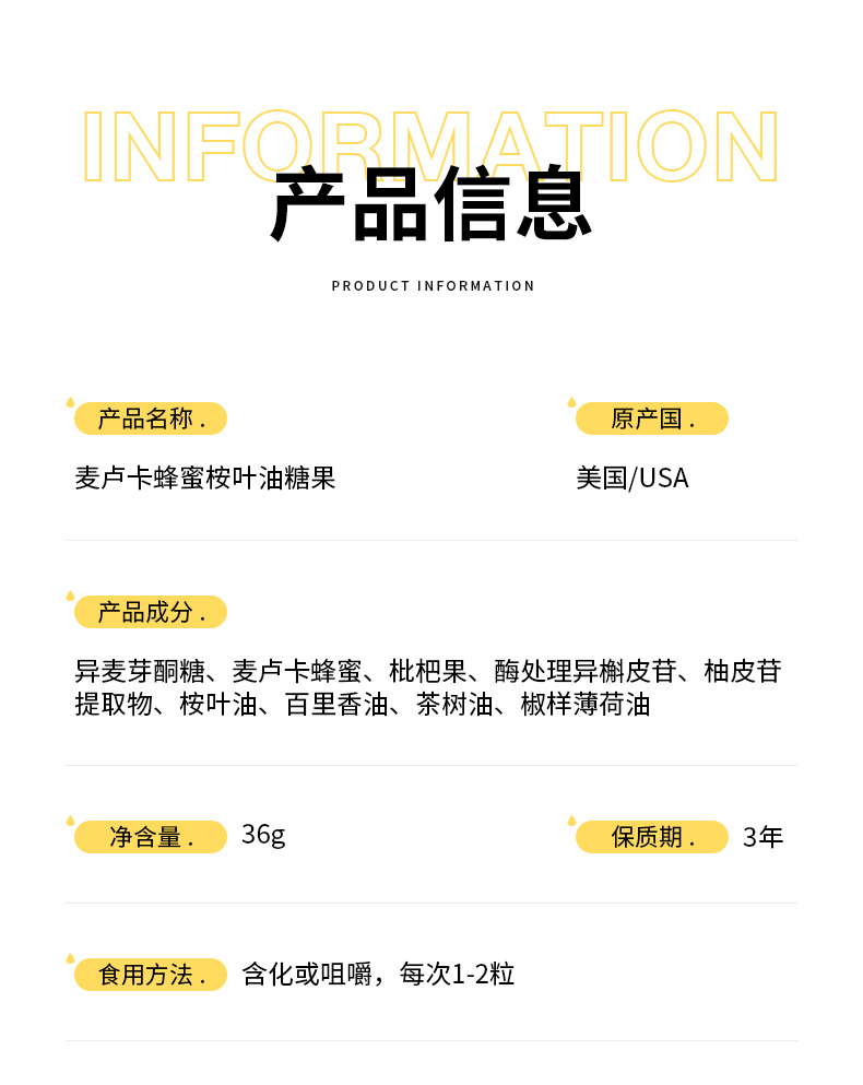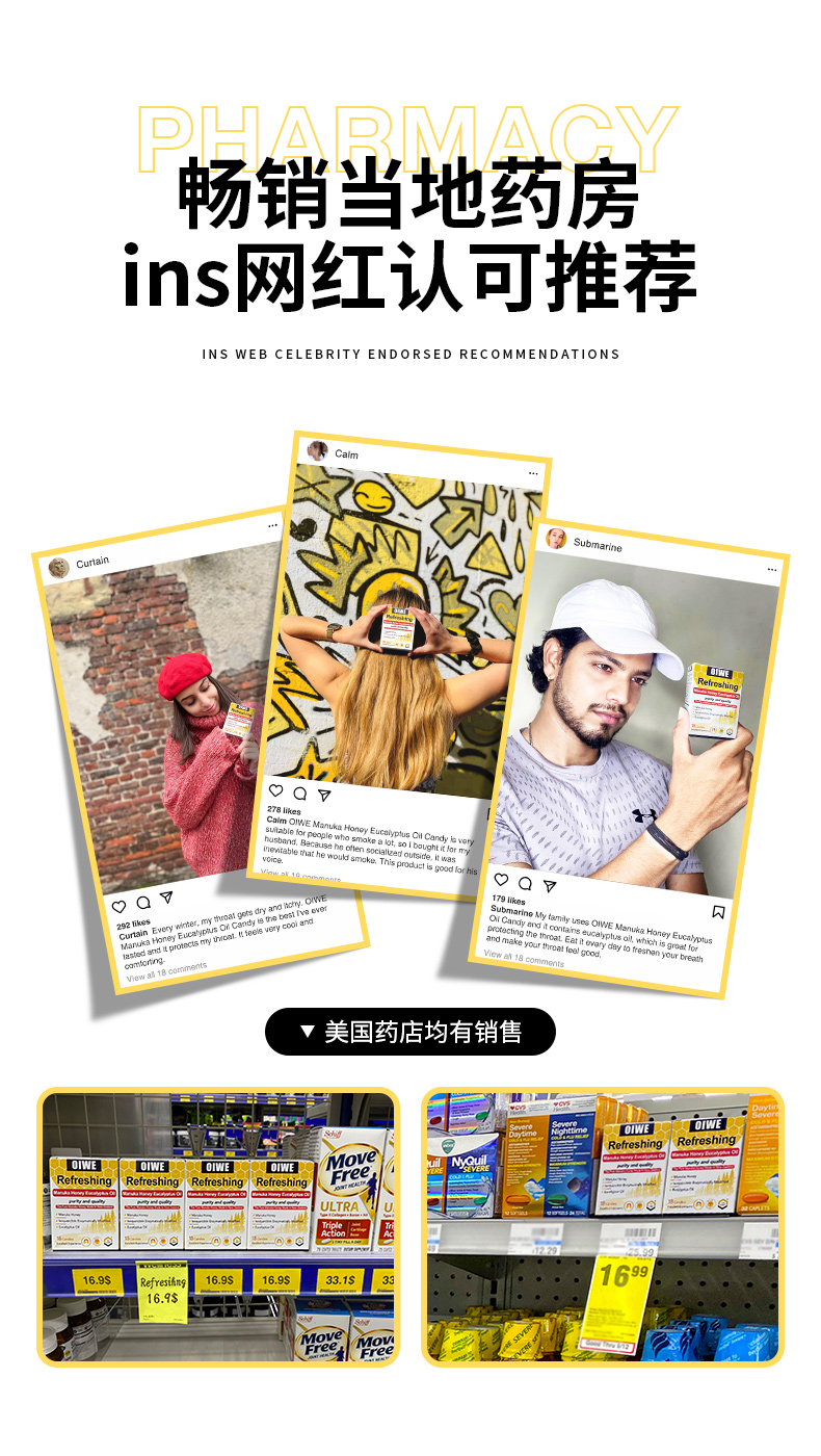 【买4送3】美国OIWE麦卢卡蜂蜜桉叶油糖果多重植物精华呵护肺健康36g/盒