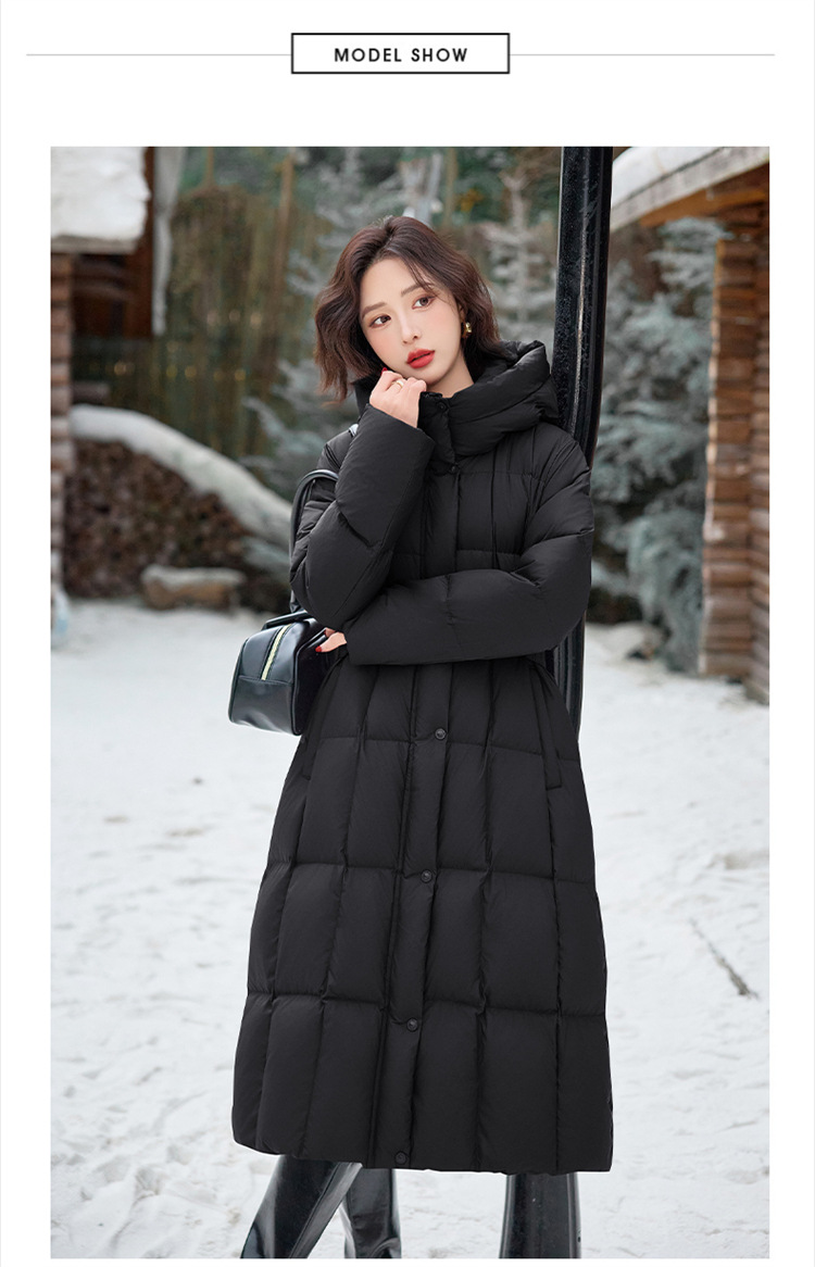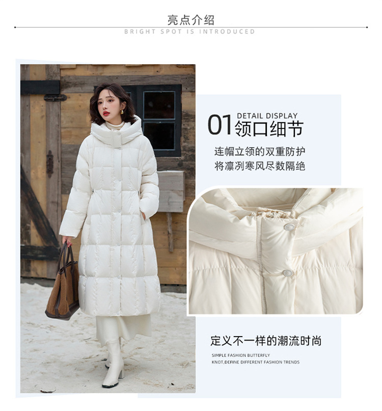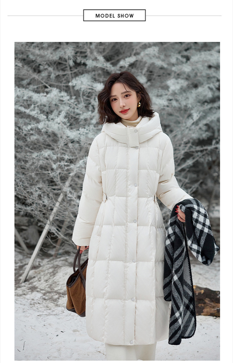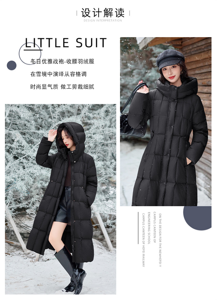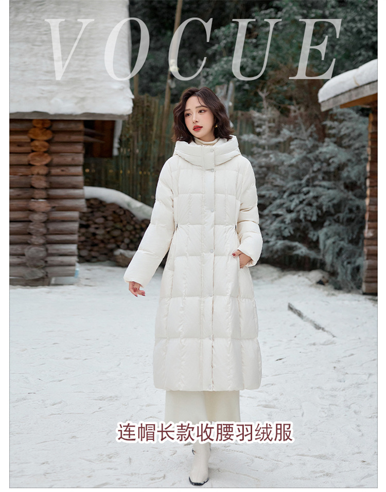HR SYY2517知性风长款羽绒服连帽加厚气质羽绒外套收腰松紧可调 商品图1