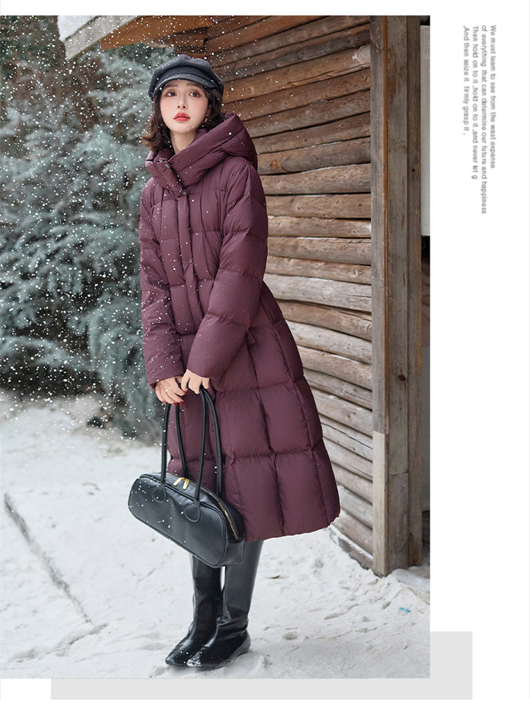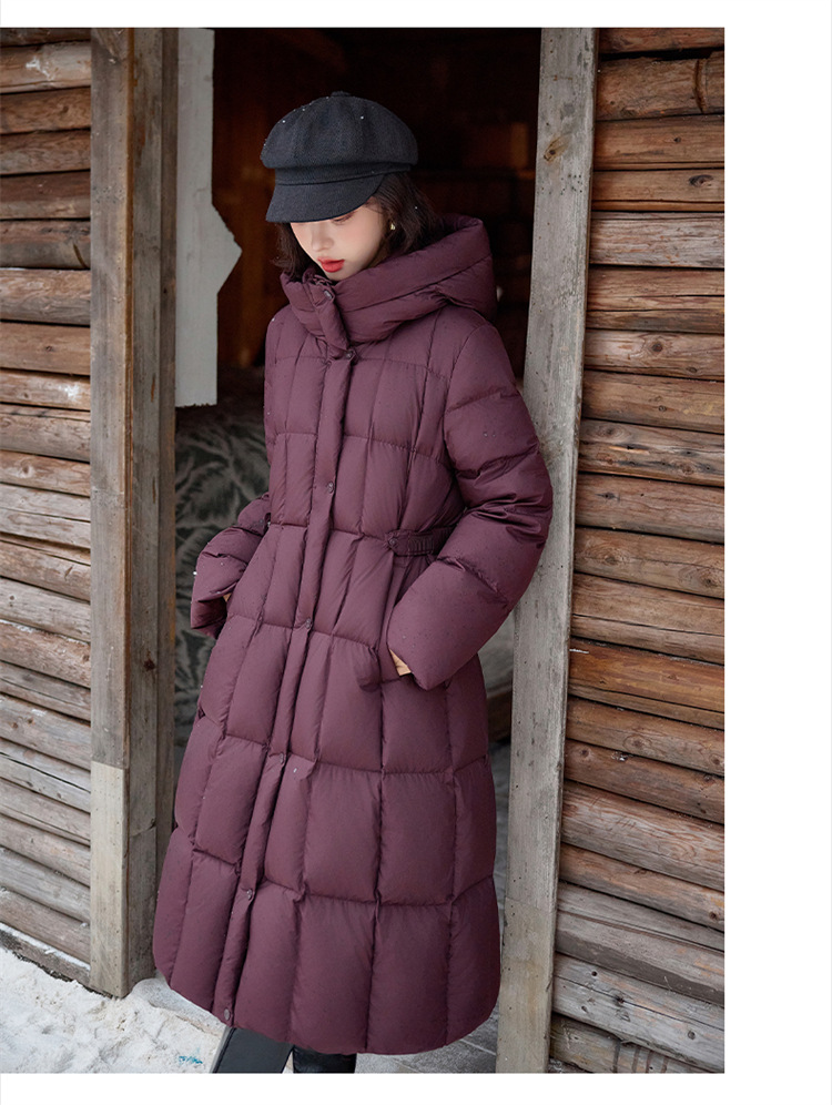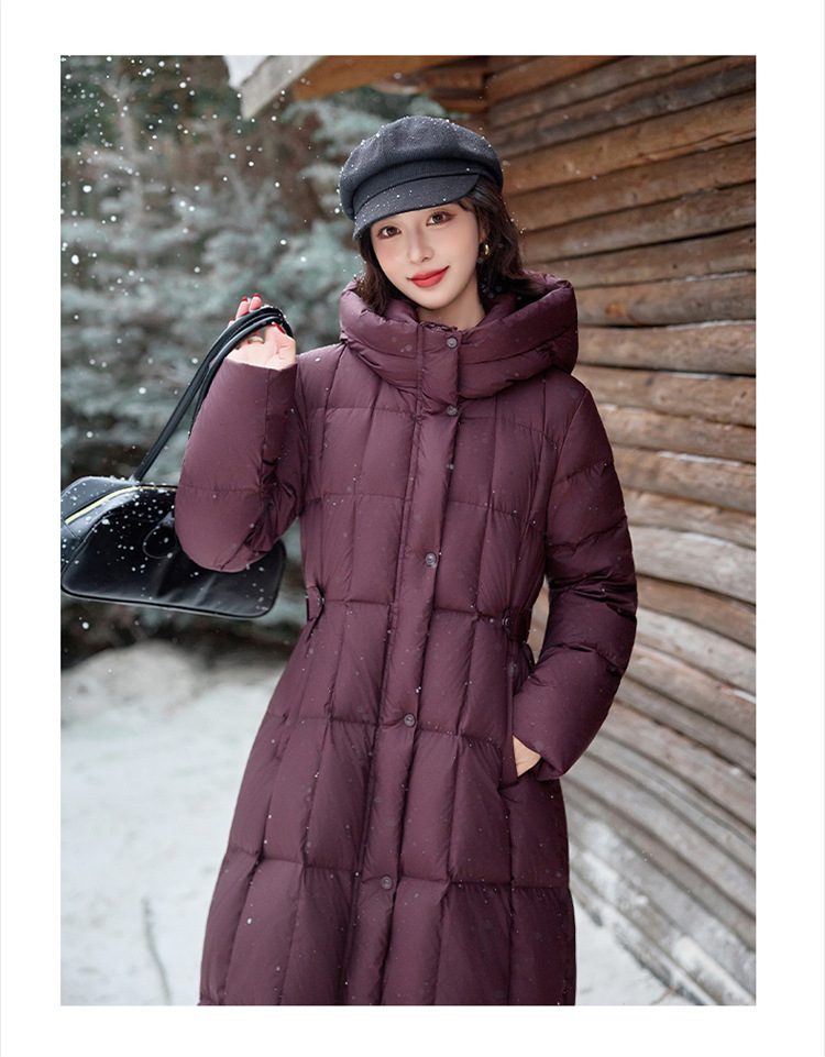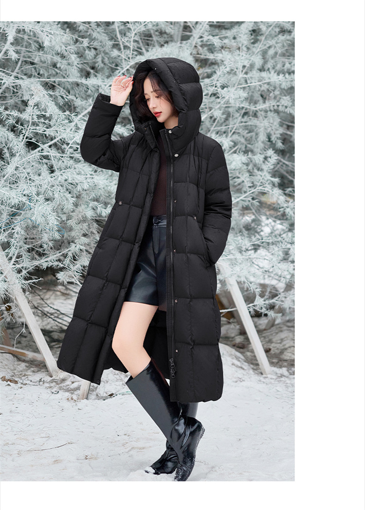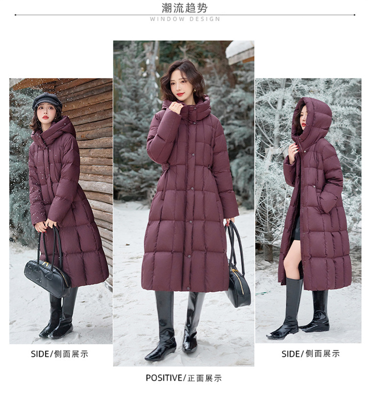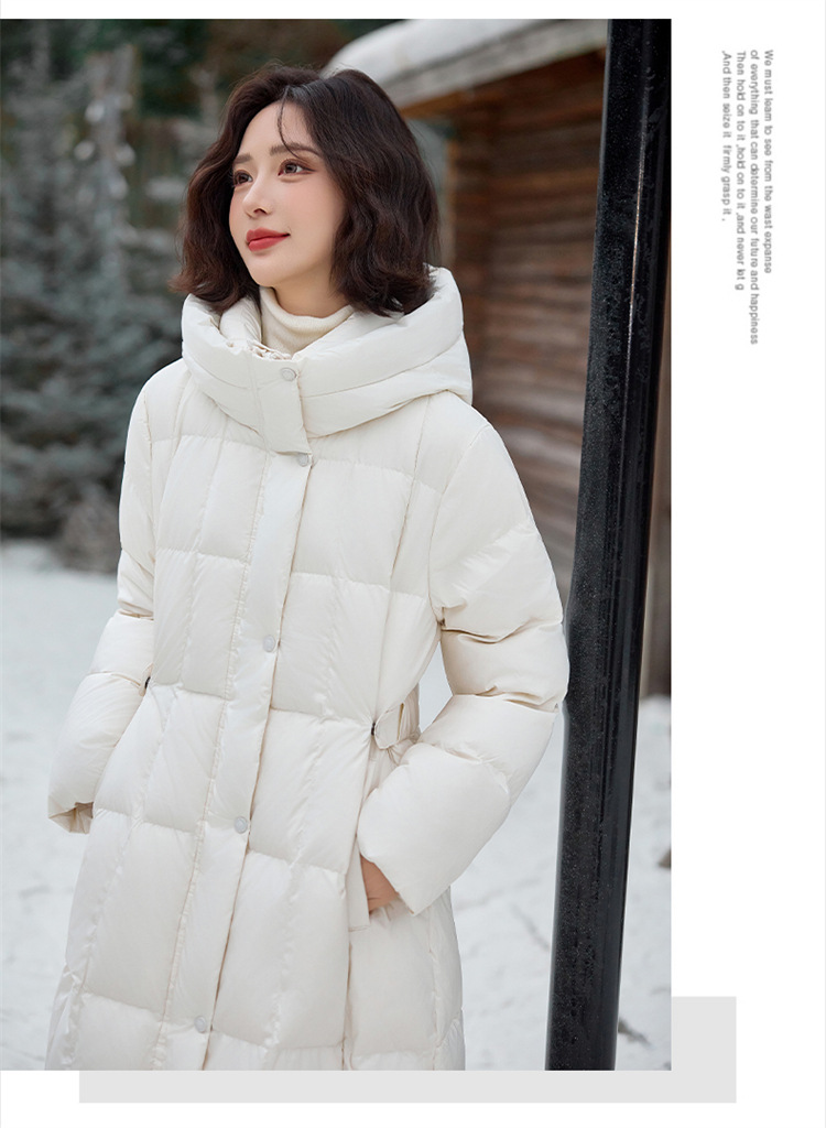 HR SYY2517知性风长款羽绒服连帽加厚气质羽绒外套收腰松紧可调 商品图0
