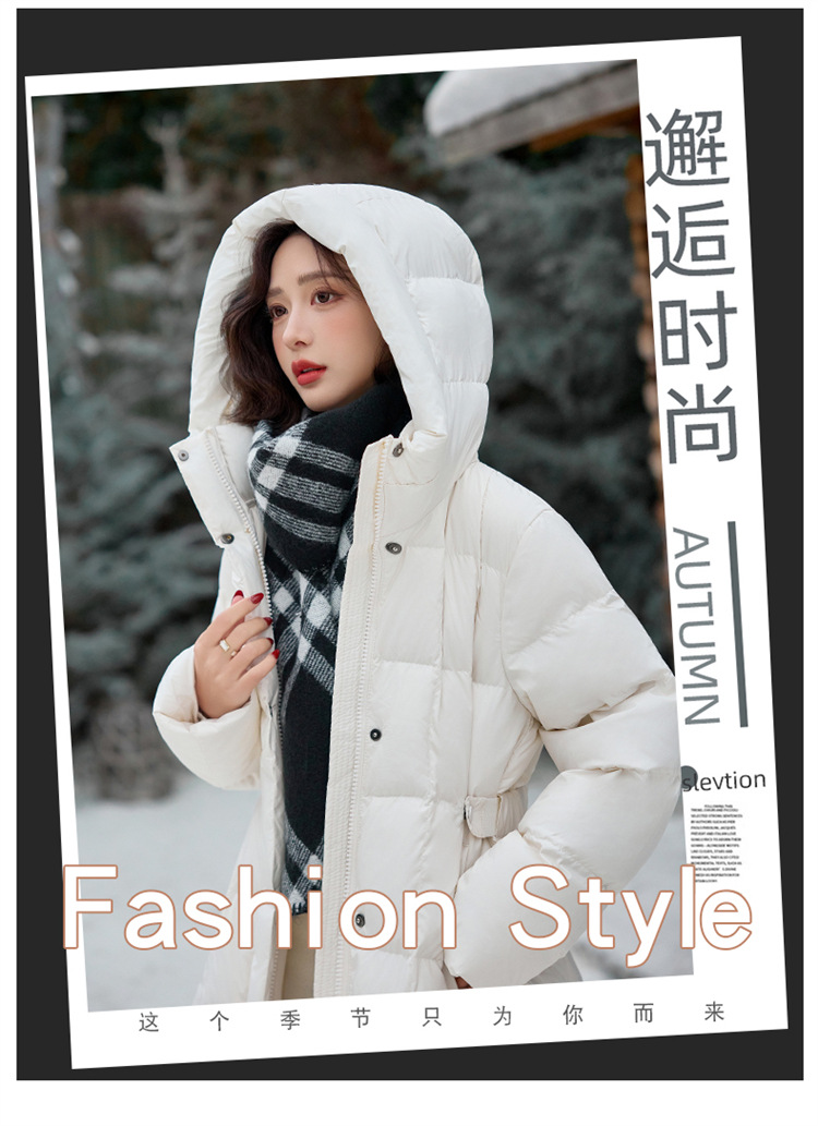 HR SYY2517知性风长款羽绒服连帽加厚气质羽绒外套收腰松紧可调 商品图2