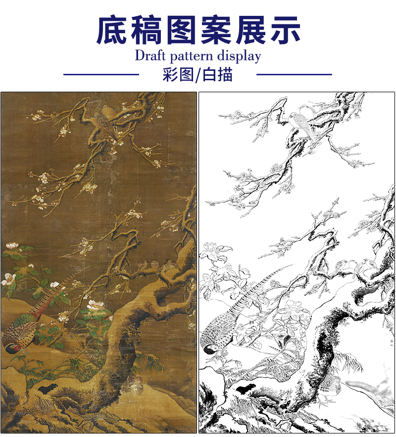 吕纪花鸟工笔画白描底稿《雪梅集禽图》临摹勾线高清打印稿MD16