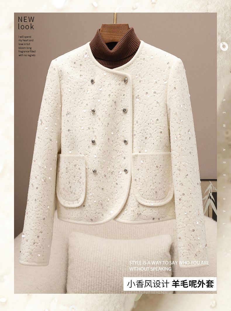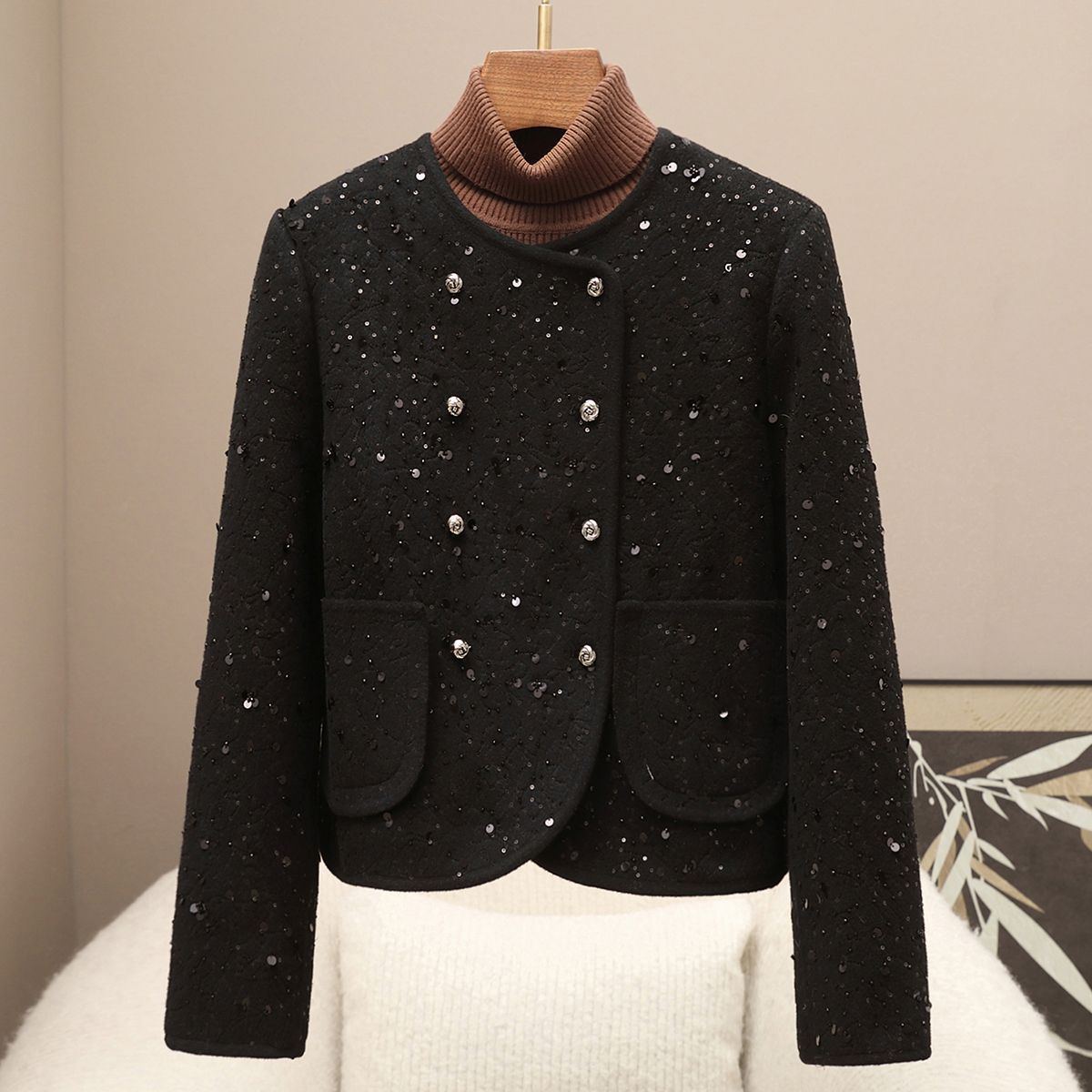 断码清仓价HH 25111310新款81.3%羊毛双面尼外套休闲圆领双排扣上衣