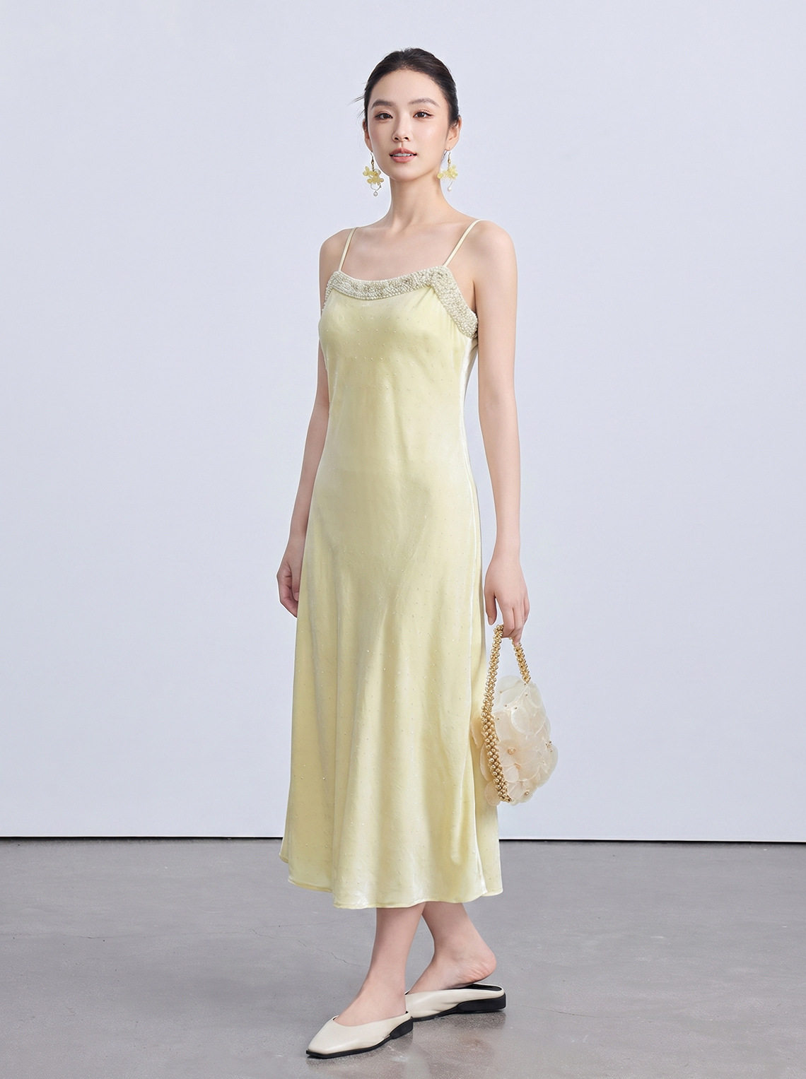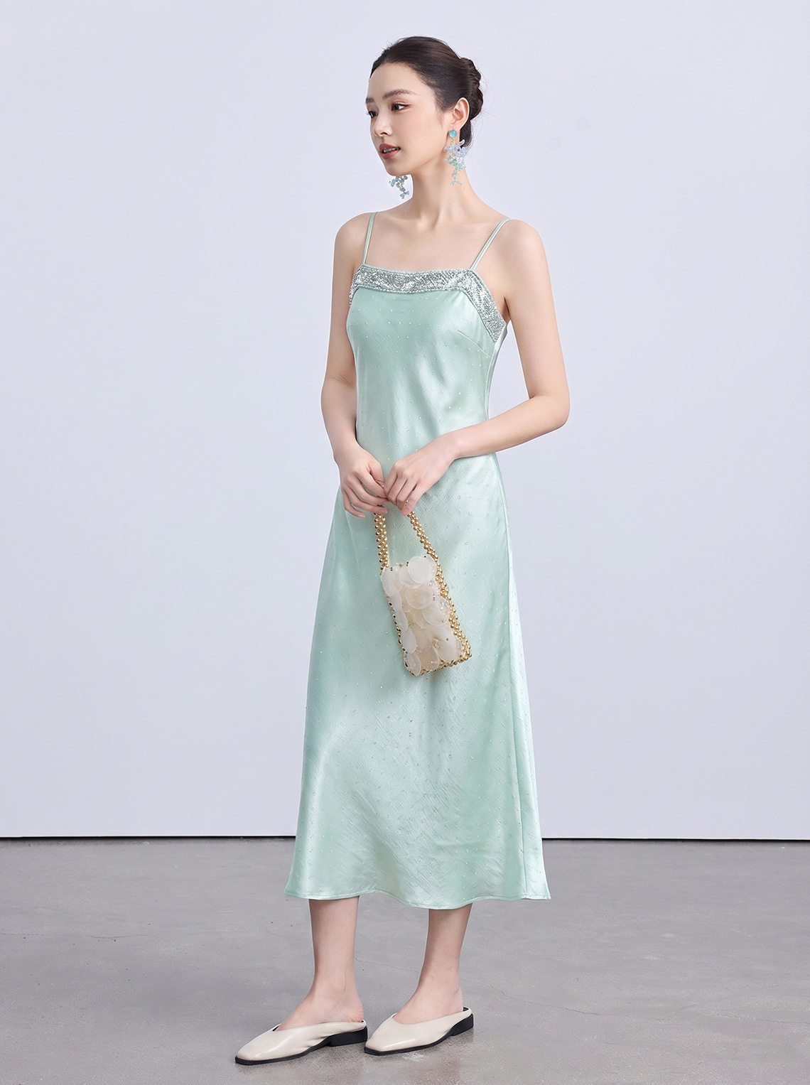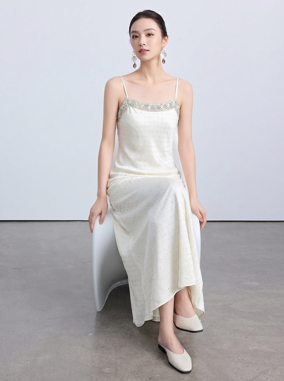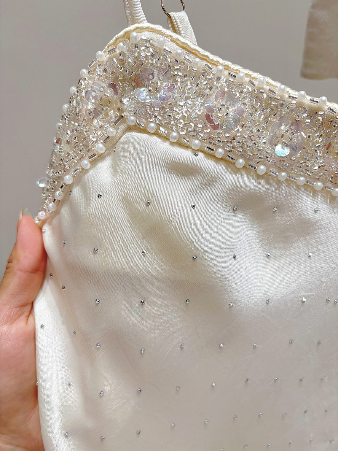 「自」全新升级【铂金会员220/天猫299/差价79】(21110)洛诗琳重工钉珠吊带连衣裙女2026夏季新款烫钻修身显瘦长裙