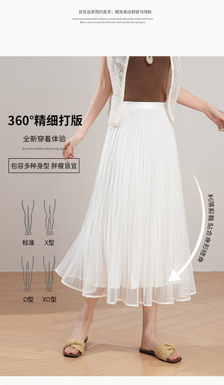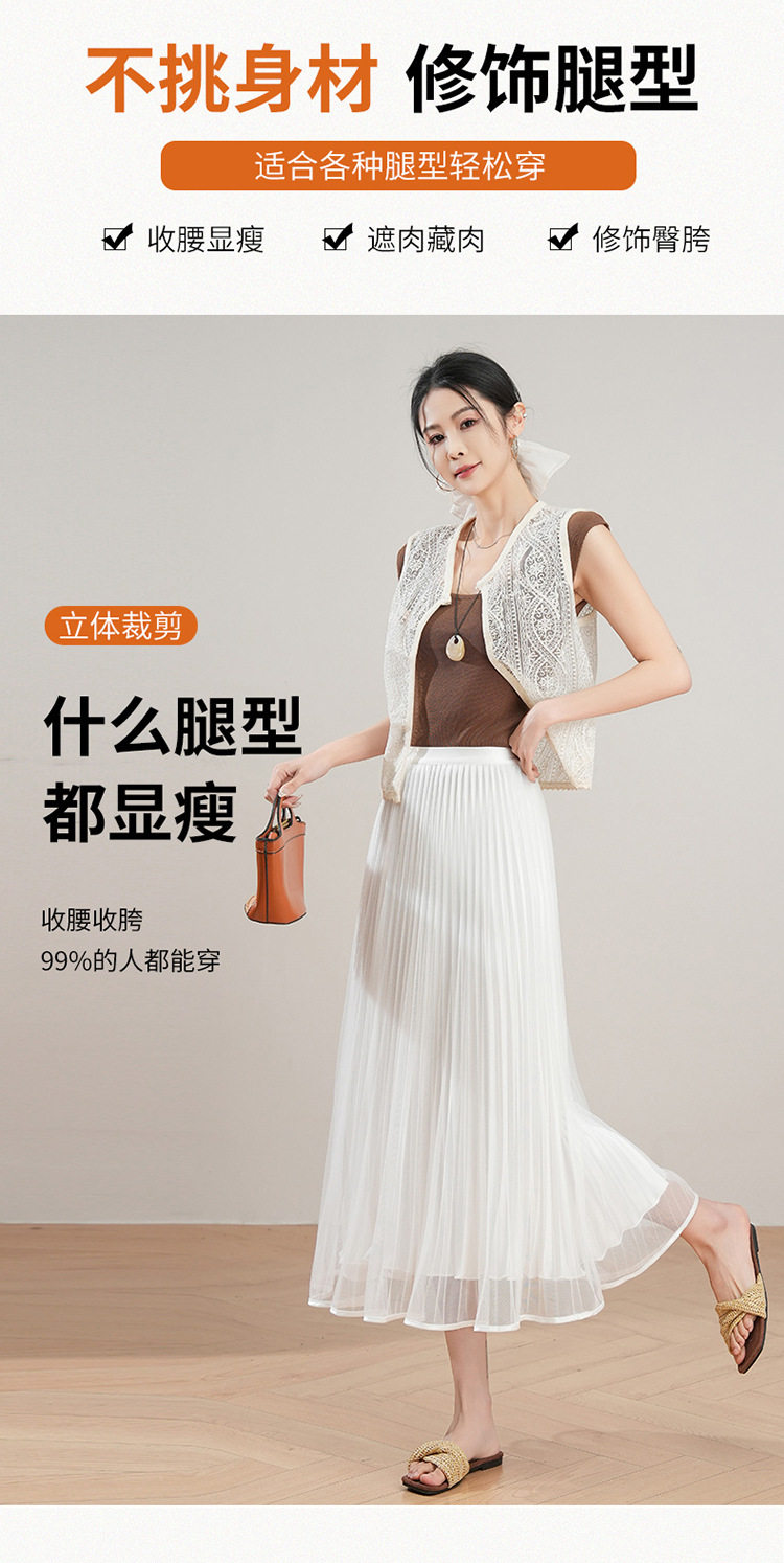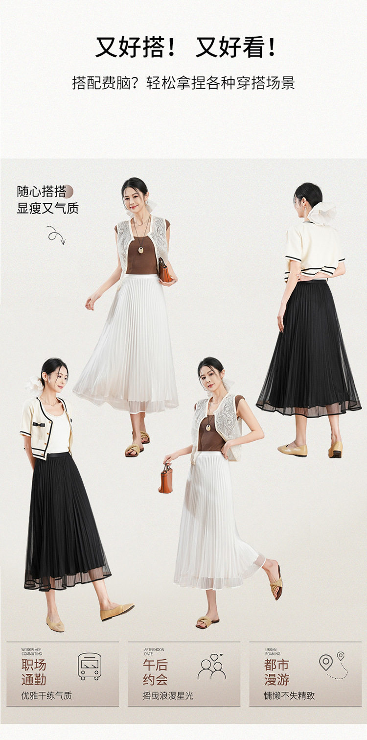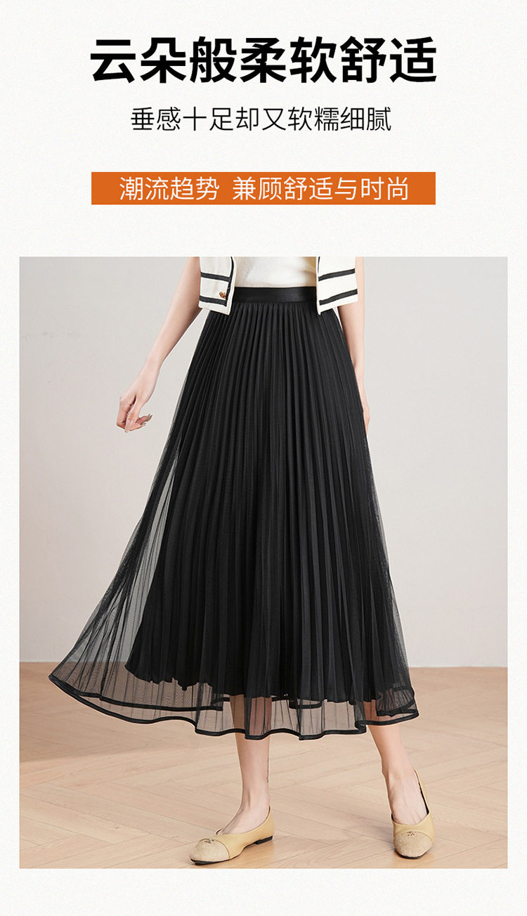 「自」全新升级【铂金会员137/天猫179/差价42】(12059)洛诗琳法式气质网纱半身裙2026夏季新款高腰显瘦中长百褶裙