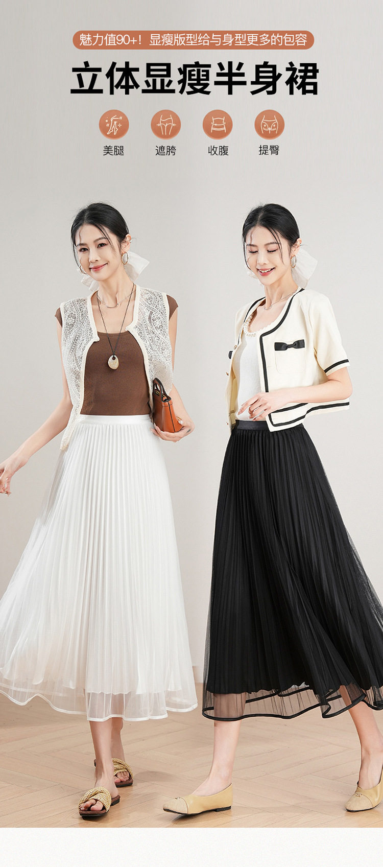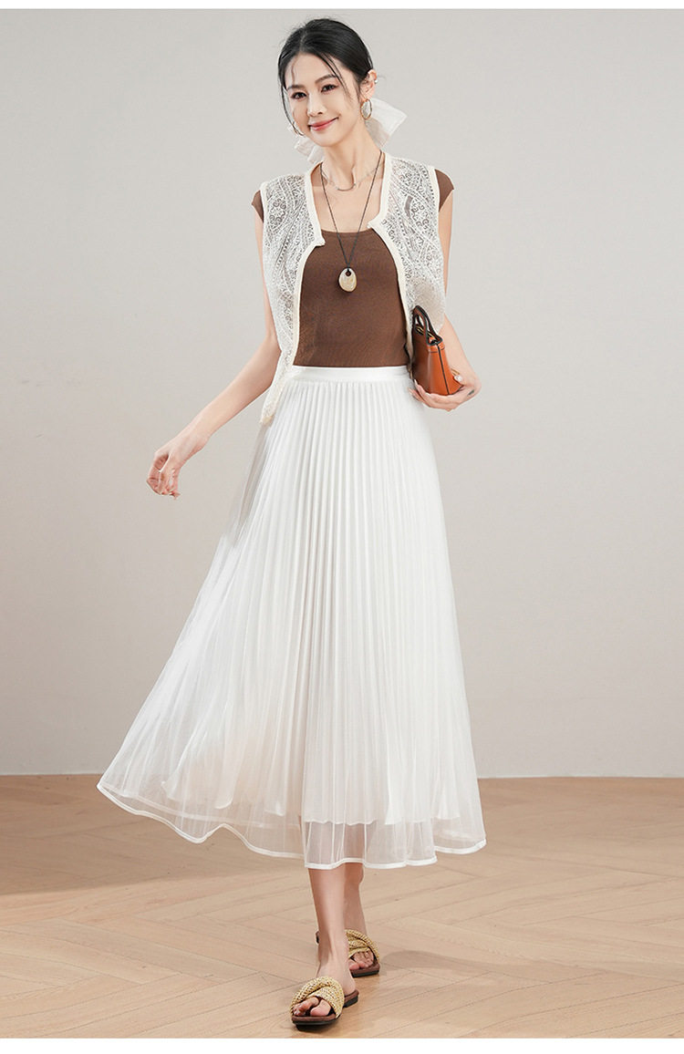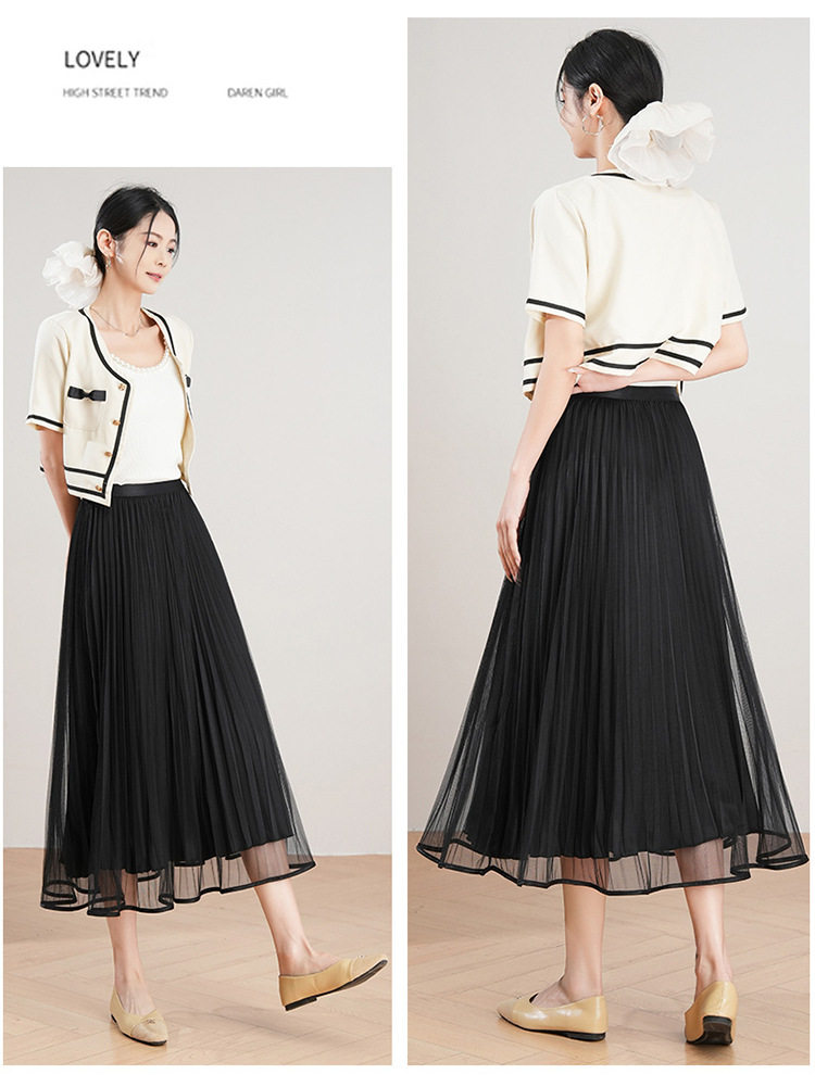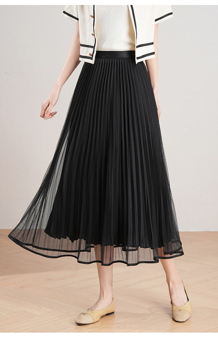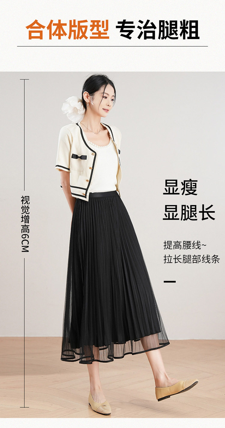 「自」全新升级【铂金会员137/天猫179/差价42】(12059)洛诗琳法式气质网纱半身裙2026夏季新款高腰显瘦中长百褶裙