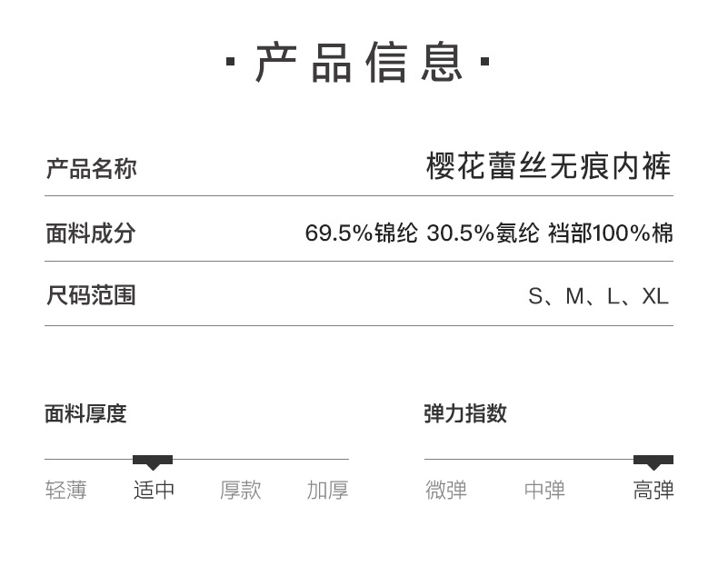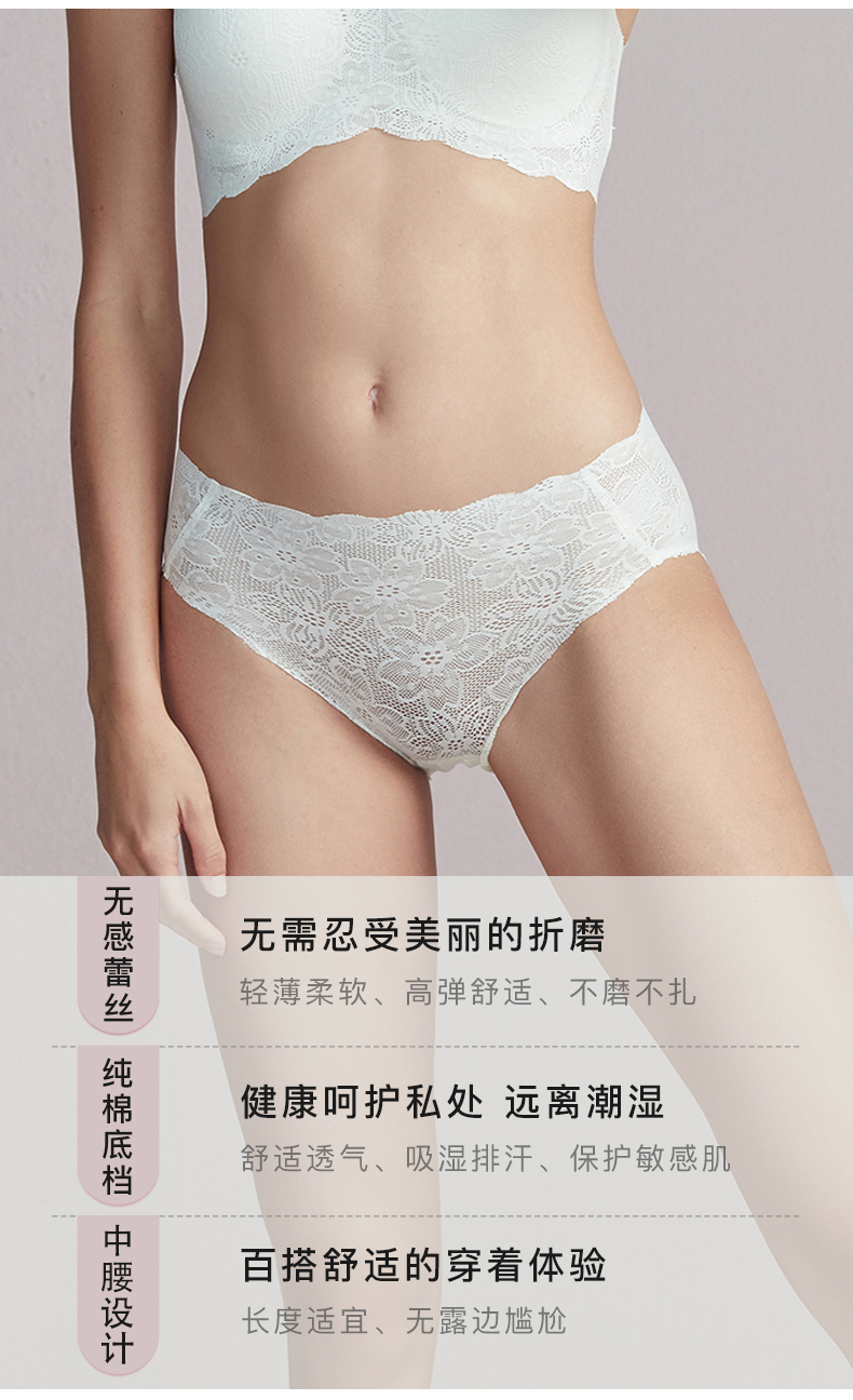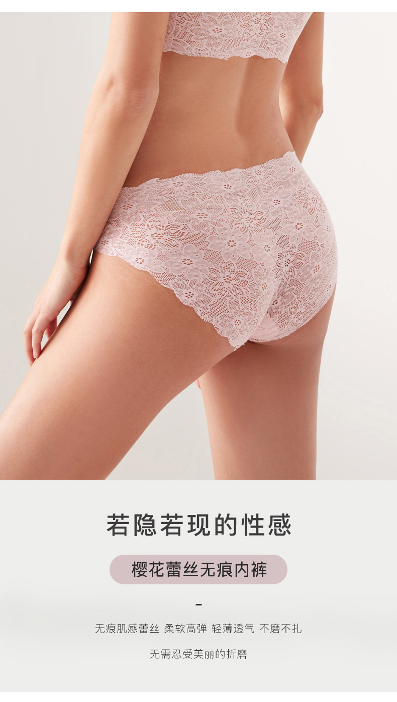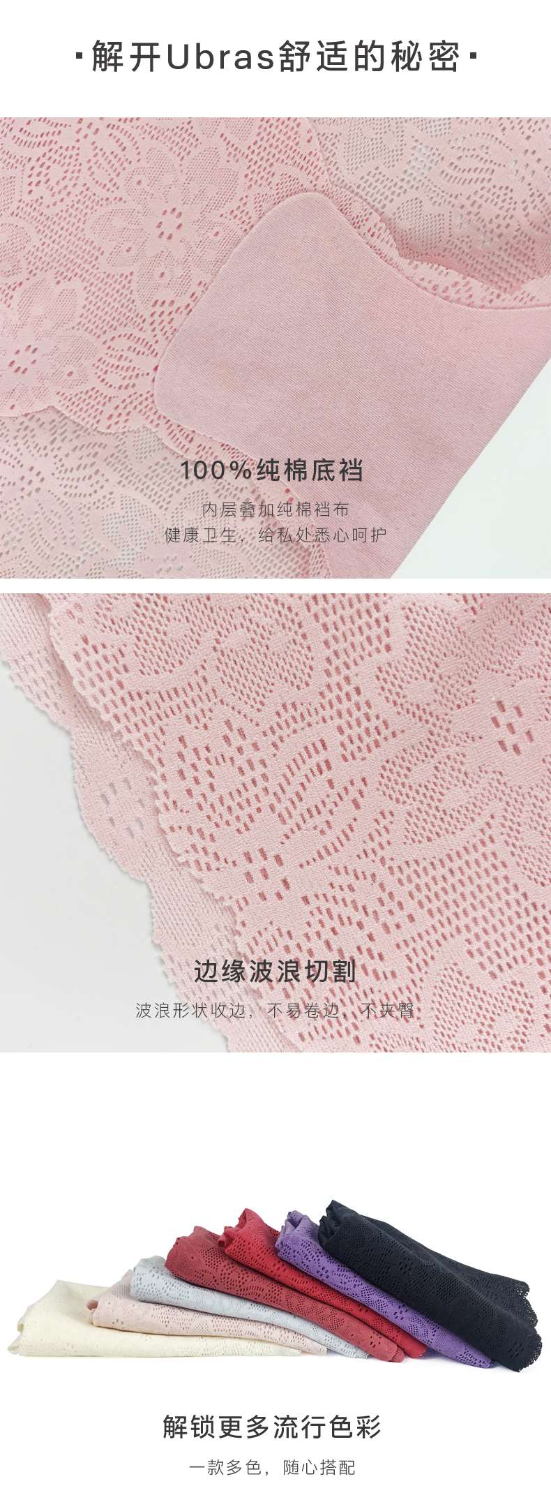 Ubras樱花蕾丝无痕内裤性感三角裤女纯棉底裆中腰透气秋内裤